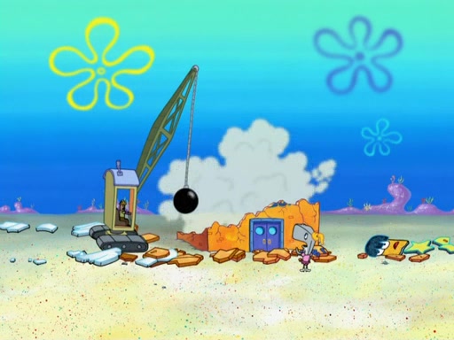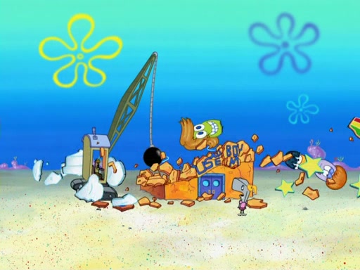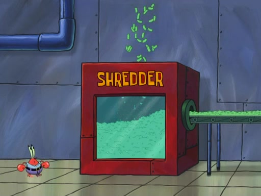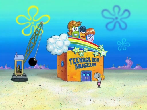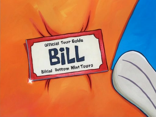 They park right in front of the Teenage Boy Museum and right when Pearl walks up to it, it is demolished by a wrecking ball. Mr. Krabs tries to comfort her, saying that they weren't going there anyways. He then says that they are going to the "Bikini Bottom Mint" to see the money making process, but Pearl says that she would rather search through the rubble of the "Teenage Boy Museum" and proceeds to do so. They go inside and meet the tour guide "Bill" and he is aware of the irony of his job and name. They get to the part where Mr. Krabs sees money being shredded.