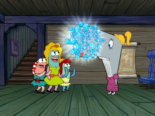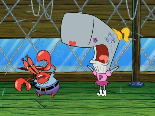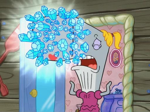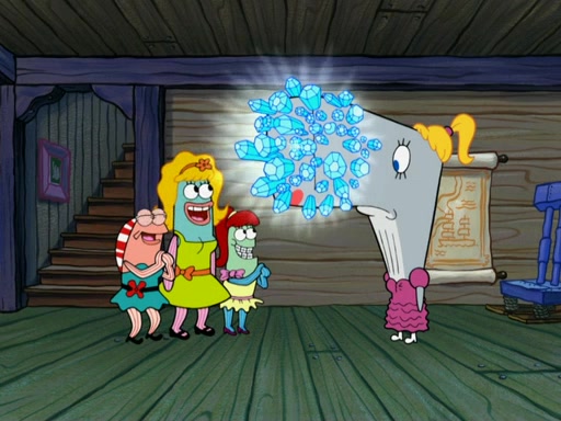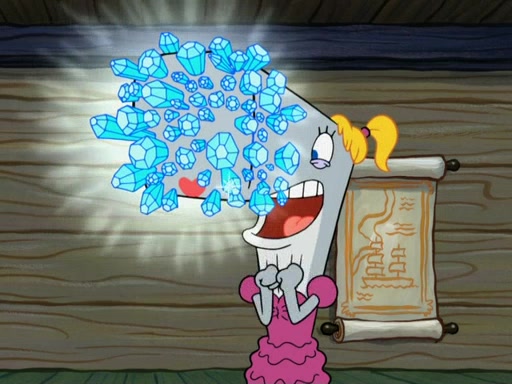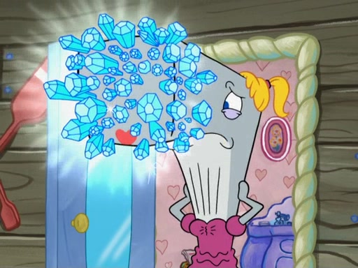 The night before the big school dance, Pearl gets a barnacle on her face. After requesting expensive treatment to get rid of the blemish, Mr. Krabs refuses and asks SpongeBob to help Pearl remove the barnacle. He tries prying the barnacle out with his spatula, then a shovel, then a jackhammer, all to no avail. Then, when Pearl washes her face with soap, more barnacles sprouted up. Thinking all hope is lost, she locks herself in the restroom and cries violently. SpongeBob then decides to simply hide the barnacles under a layer of facial cream, which ends up making Pearl's face look severely deformed and causing her to be unable to talk. Finally, Pearl asks SpongeBob to get her more soap from the basement, where he finds Mr. Krabs producing the house's soap. Mr. Krabs explains to SpongeBob that he make all of his soap out of leftover Krabby Patties. Pearl overhears this and, realizing that she's been washing her face with grease, screams at her father and gives up trying to remove the barnacles. SpongeBob, inspired by something she said, resolves to cover up the barnacles with Mr. Krabs' precious jewels. Pearl's friends are dazzled by her sparkling face, and they happily depart for the school dance. Mr. Krabs, furious that Pearl is wearing his diamonds, desperately sprints after her, as the episode ends.