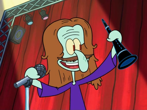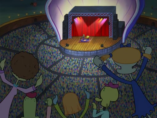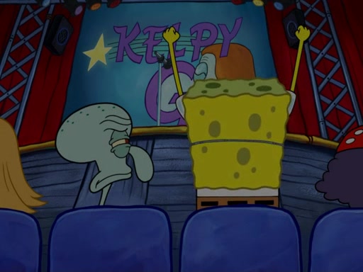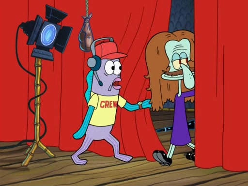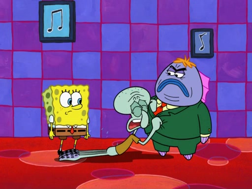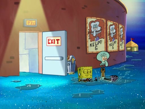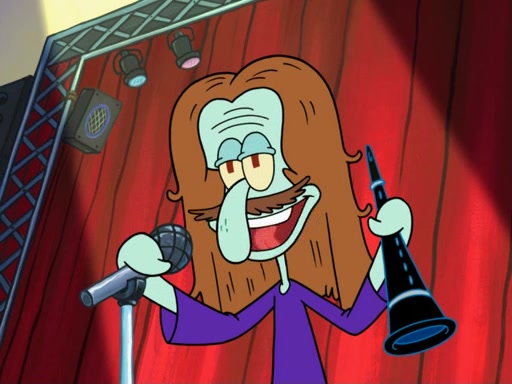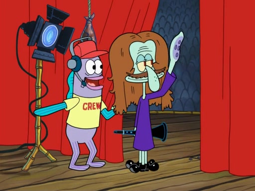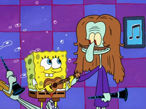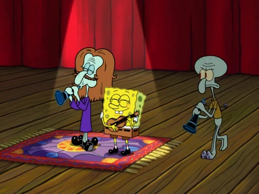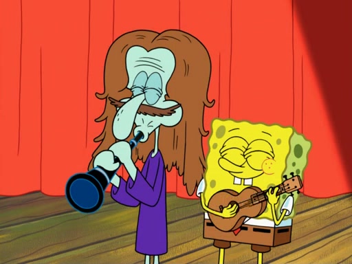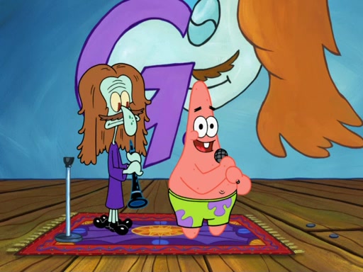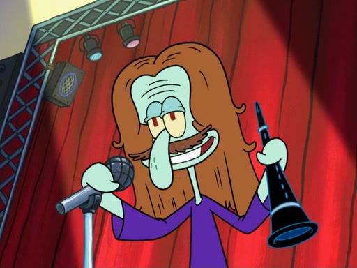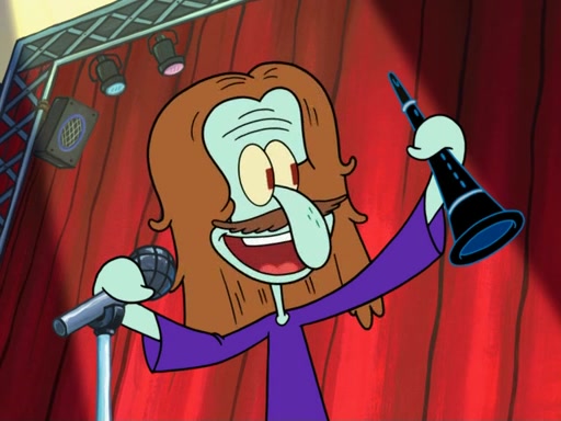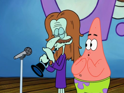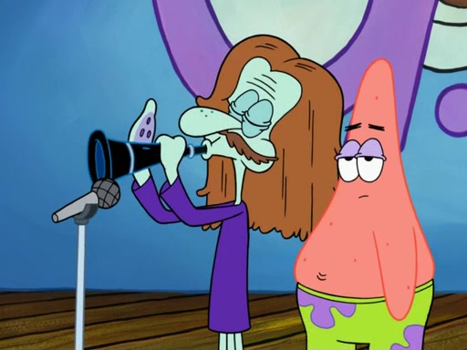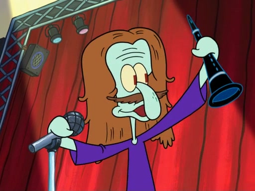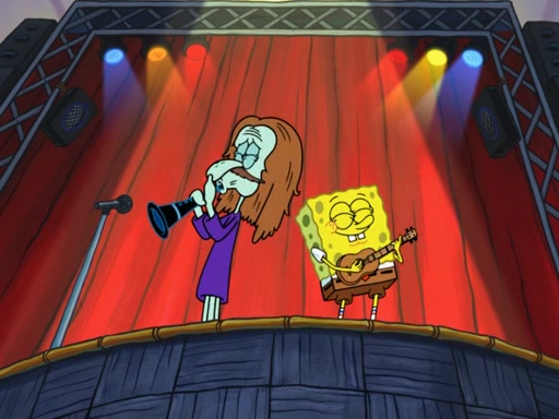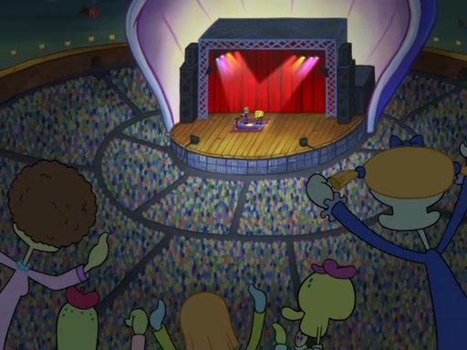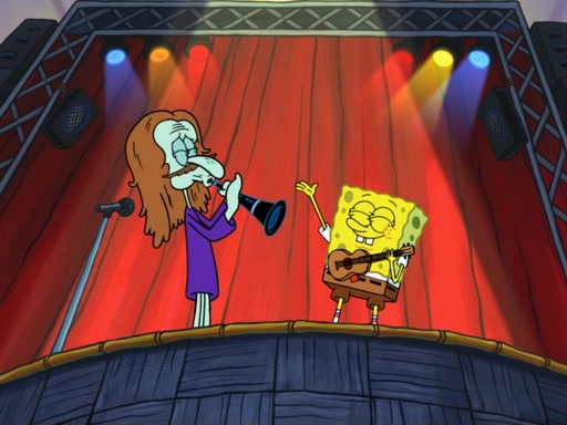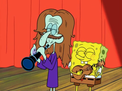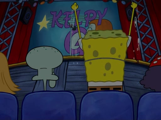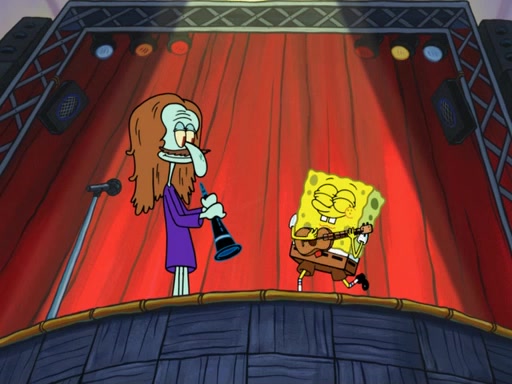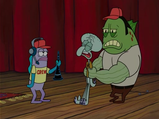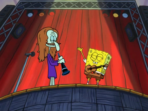 The guards kick them out. The duo manages to sneak backstage, but Kelpy G's manager tells them that they need to leave because they don't have any backstage passes. They both attempt to impress Kelpy G. Squidward begins to play the clarinet, while SpongeBob plays the ukulele. Kelpy G is impressed with SpongeBob's ukulele playing. The fans wait for Kelpy G to come and he does, but there is a partner with him, who happens to be SpongeBob. Squidward comes out on the stage to prove that he is better. However, the guards carry him out and the episode ends.