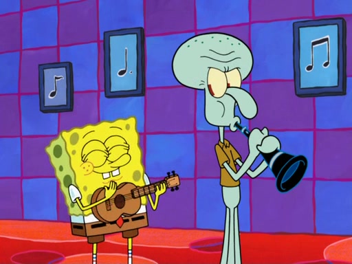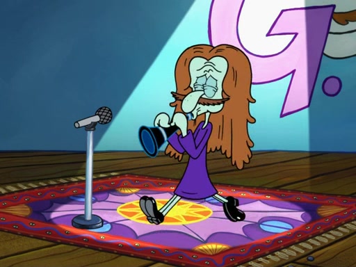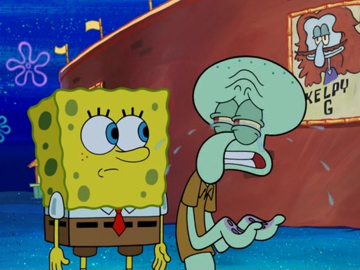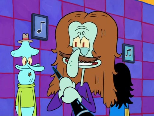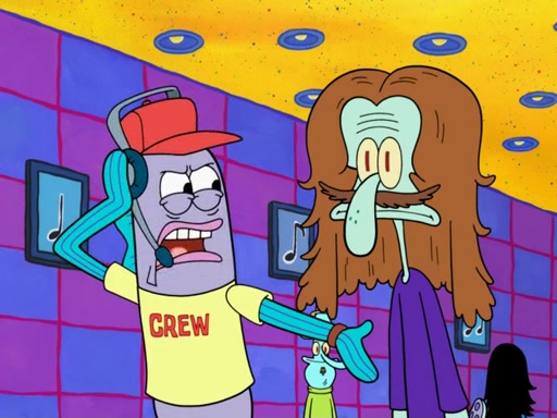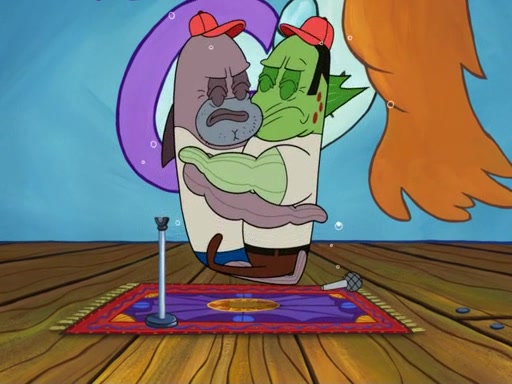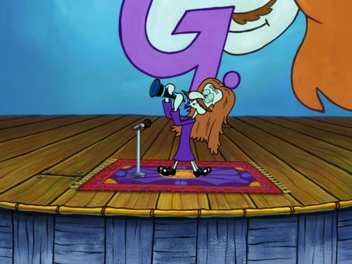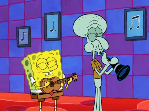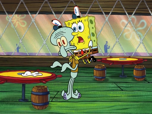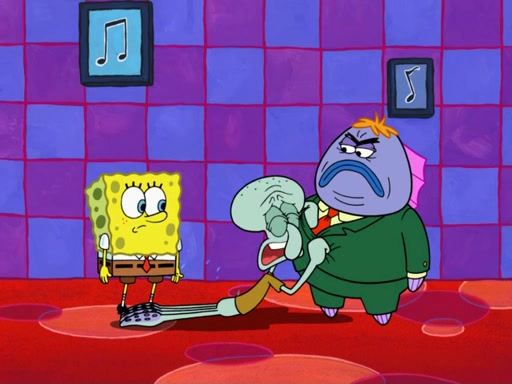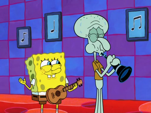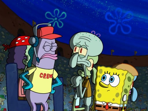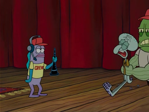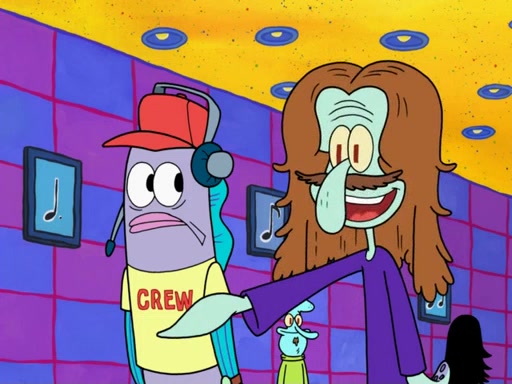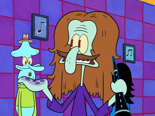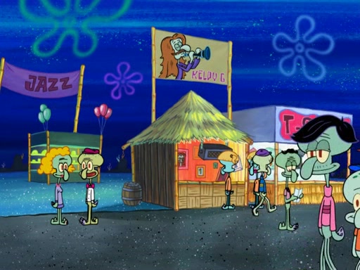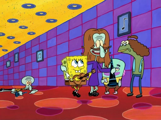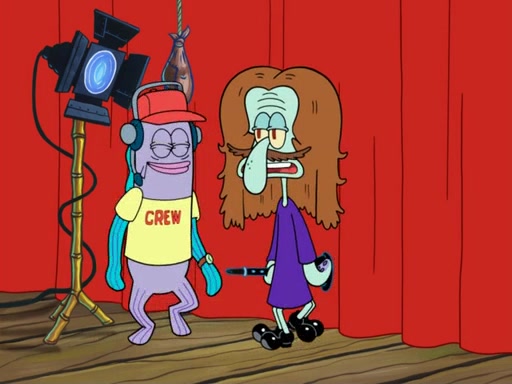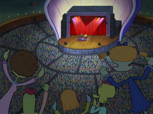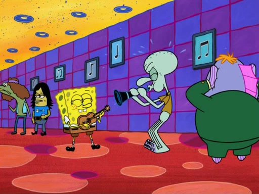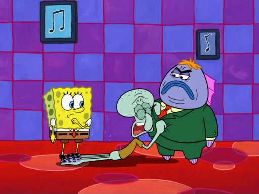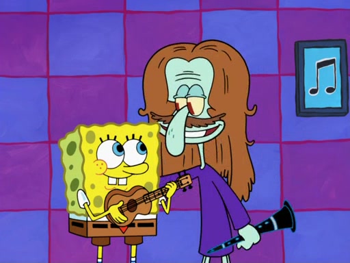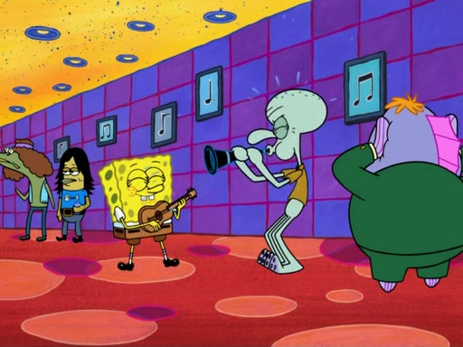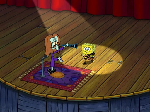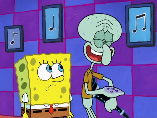 The guards kick them out. The duo manages to sneak backstage, but Kelpy G's manager tells them that they need to leave because they don't have any backstage passes. They both attempt to impress Kelpy G. Squidward begins to play the clarinet, while SpongeBob plays the ukulele. Kelpy G is impressed with SpongeBob's ukulele playing. The fans wait for Kelpy G to come and he does, but there is a partner with him, who happens to be SpongeBob. Squidward comes out on the stage to prove that he is better. However, the guards carry him out and the episode ends.