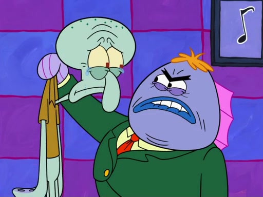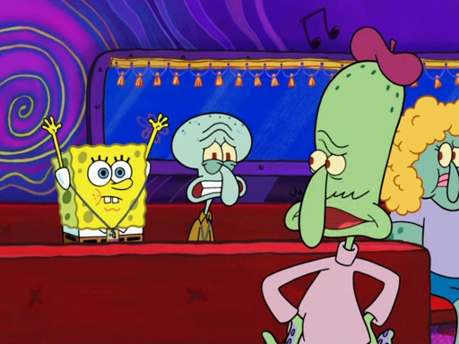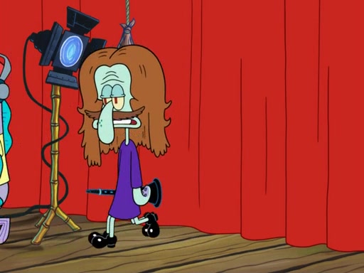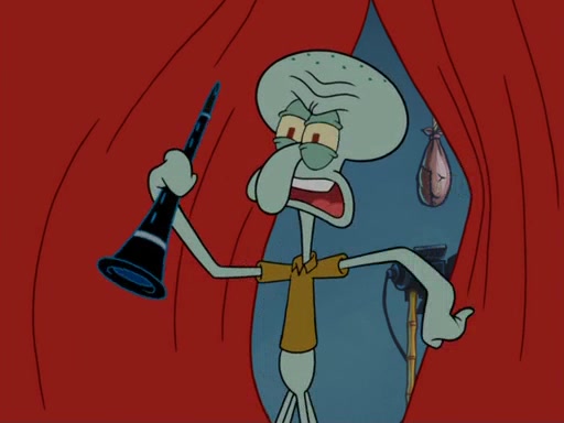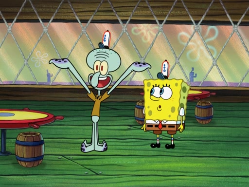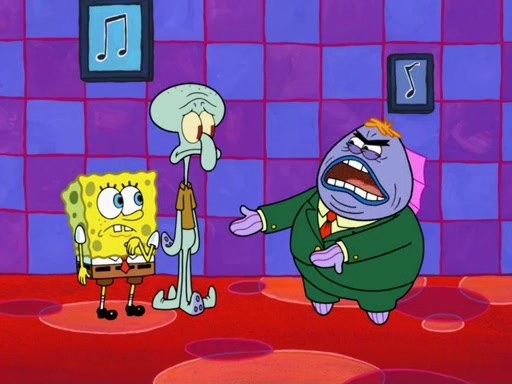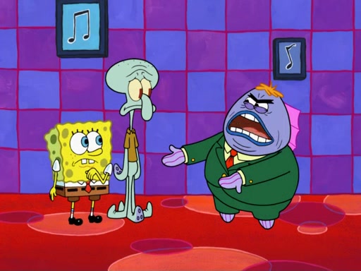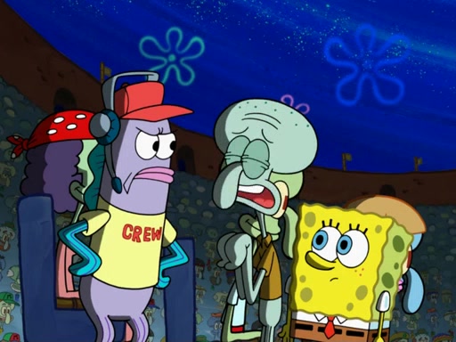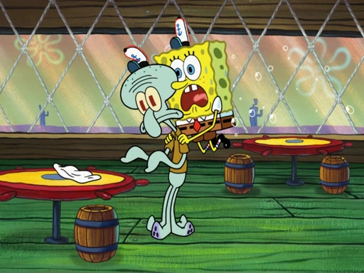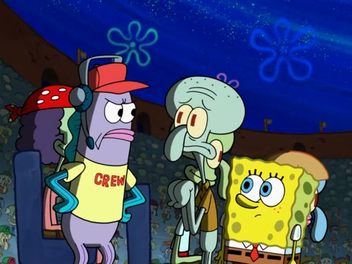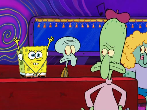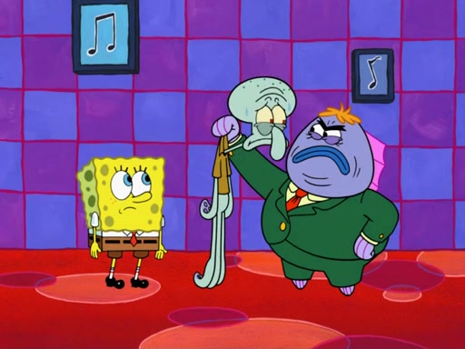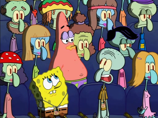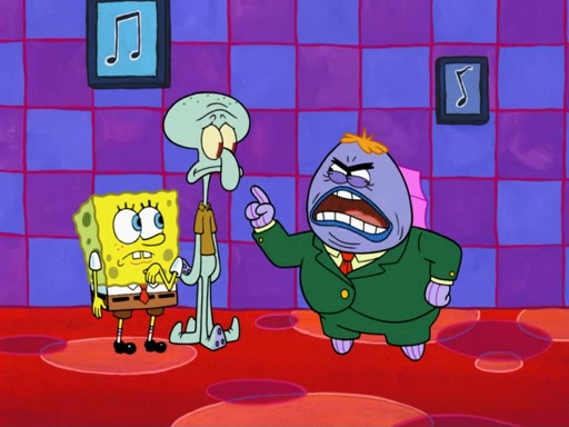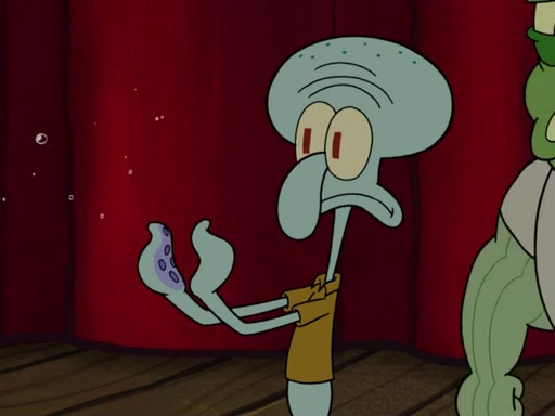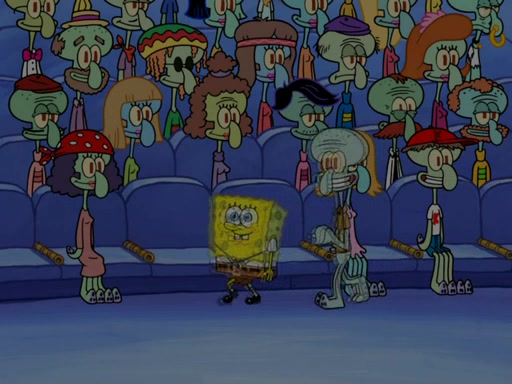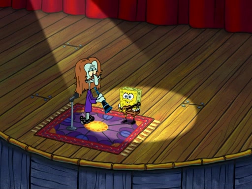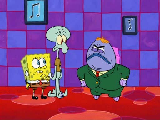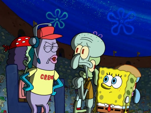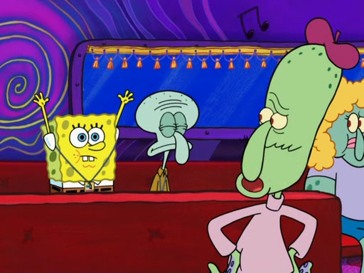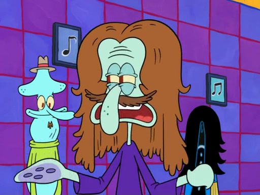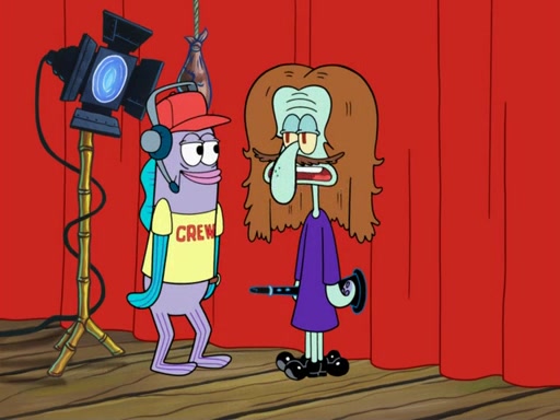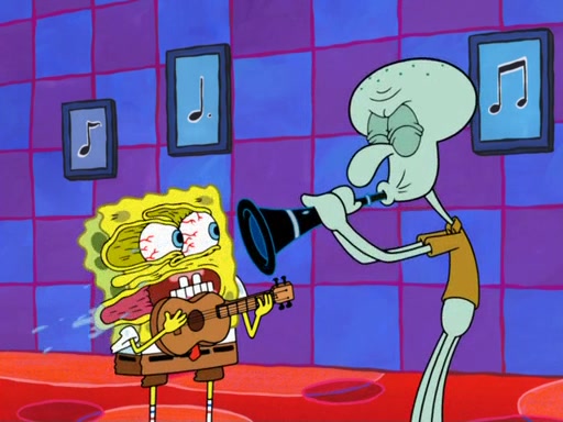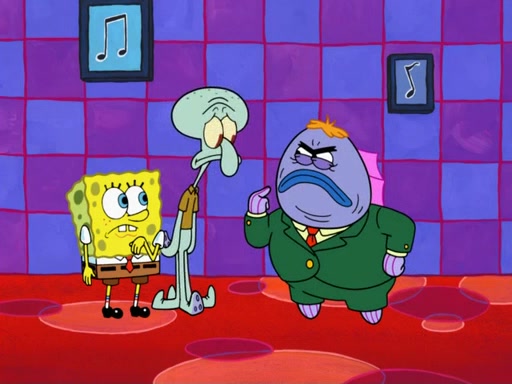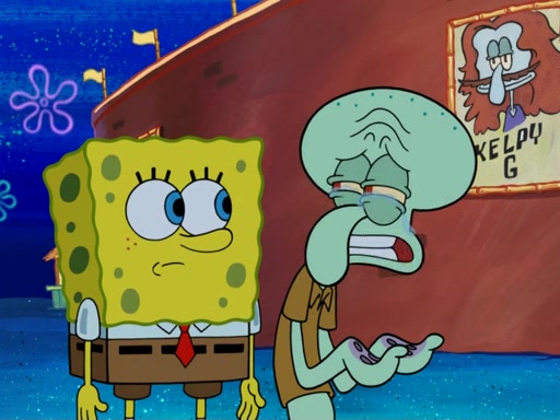 The guards kick them out. The duo manages to sneak backstage, but Kelpy G's manager tells them that they need to leave because they don't have any backstage passes. They both attempt to impress Kelpy G. Squidward begins to play the clarinet, while SpongeBob plays the ukulele. Kelpy G is impressed with SpongeBob's ukulele playing. The fans wait for Kelpy G to come and he does, but there is a partner with him, who happens to be SpongeBob. Squidward comes out on the stage to prove that he is better. However, the guards carry him out and the episode ends.