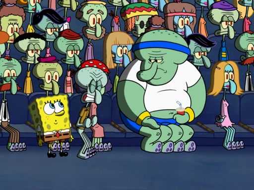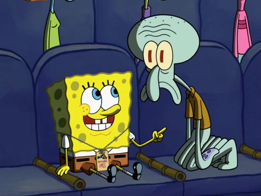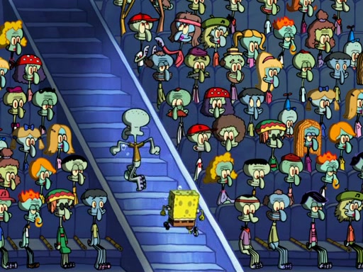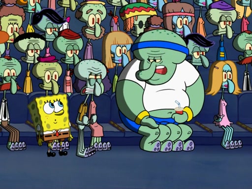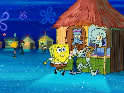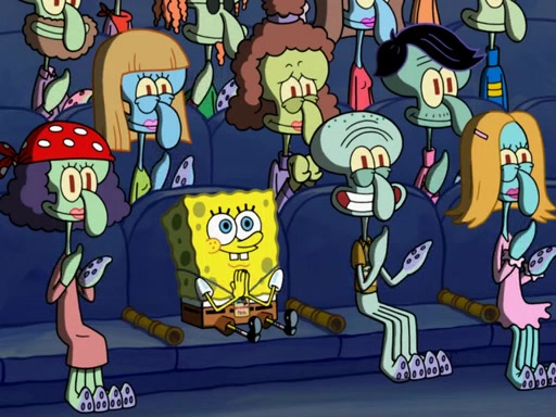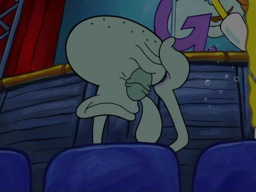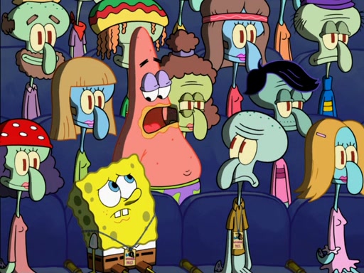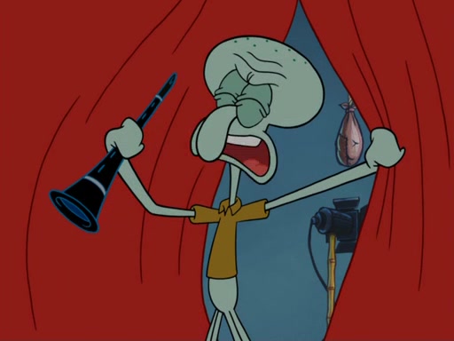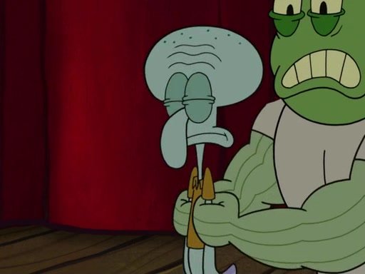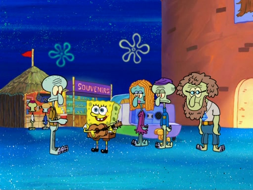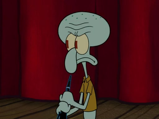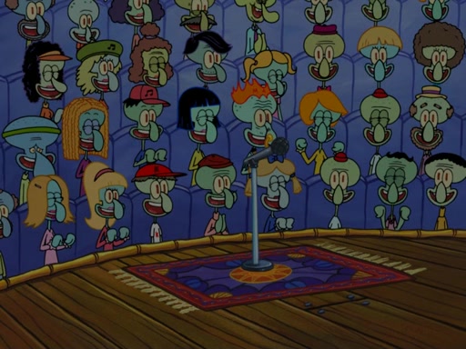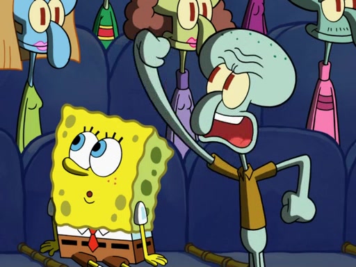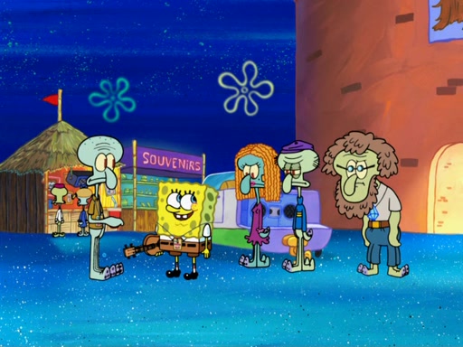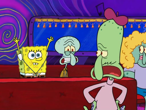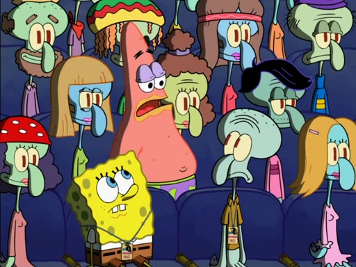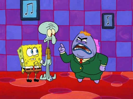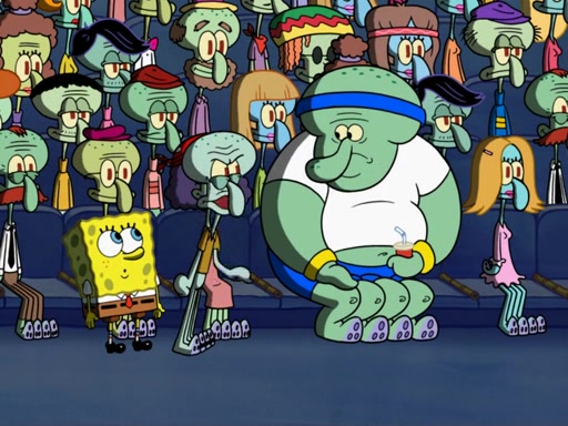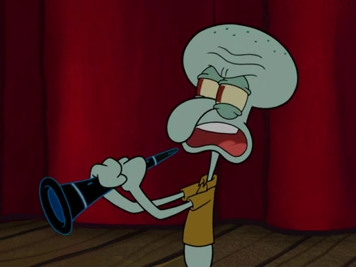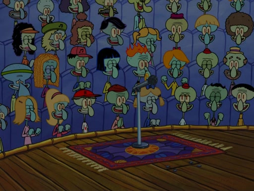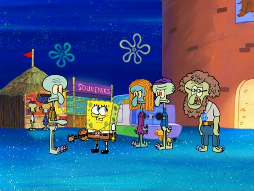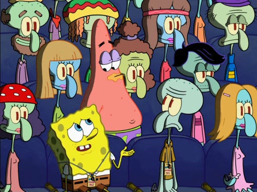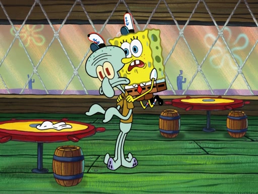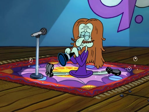 The guards kick them out. The duo manages to sneak backstage, but Kelpy G's manager tells them that they need to leave because they don't have any backstage passes. They both attempt to impress Kelpy G. Squidward begins to play the clarinet, while SpongeBob plays the ukulele. Kelpy G is impressed with SpongeBob's ukulele playing. The fans wait for Kelpy G to come and he does, but there is a partner with him, who happens to be SpongeBob. Squidward comes out on the stage to prove that he is better. However, the guards carry him out and the episode ends.