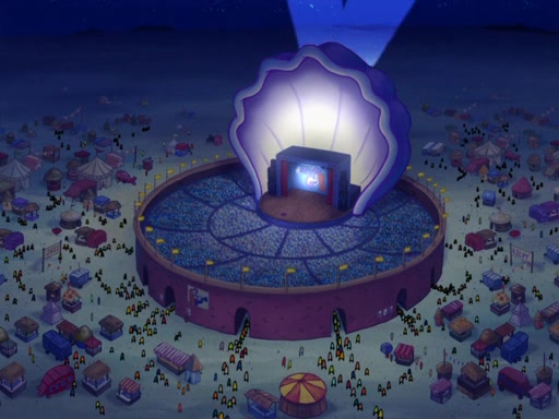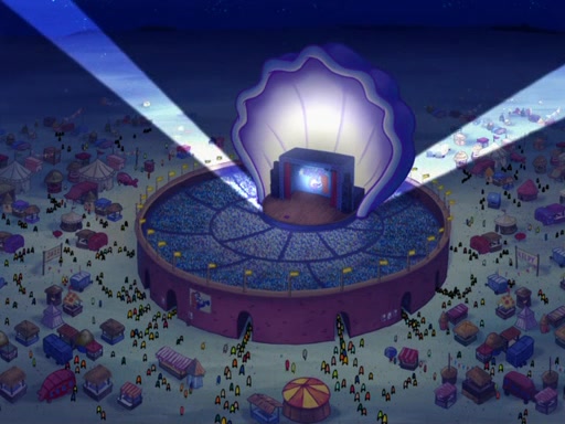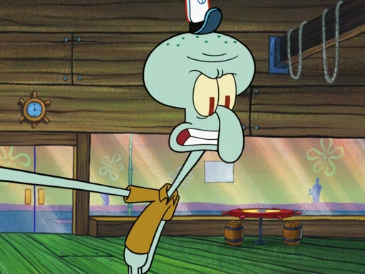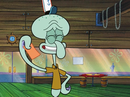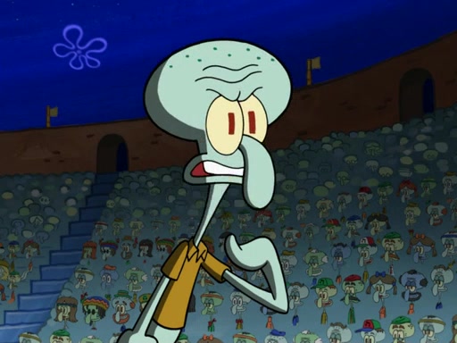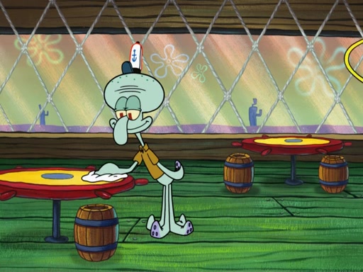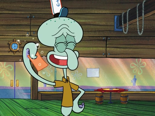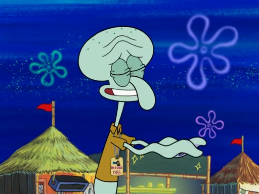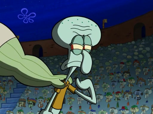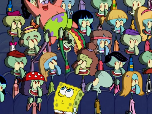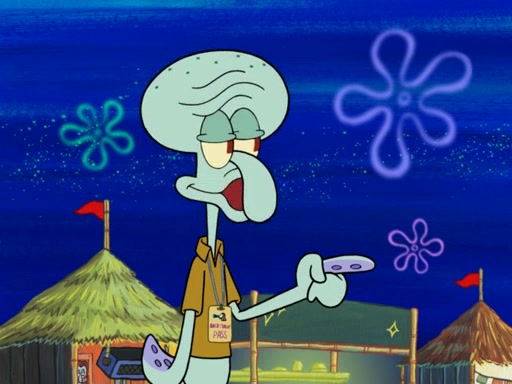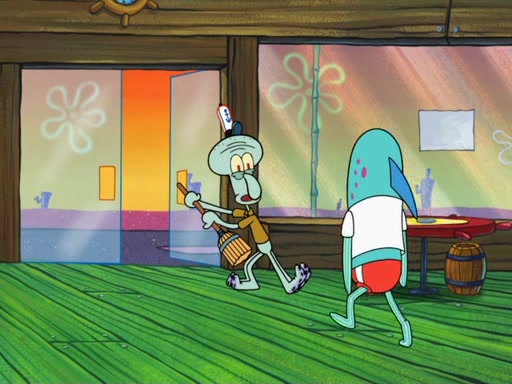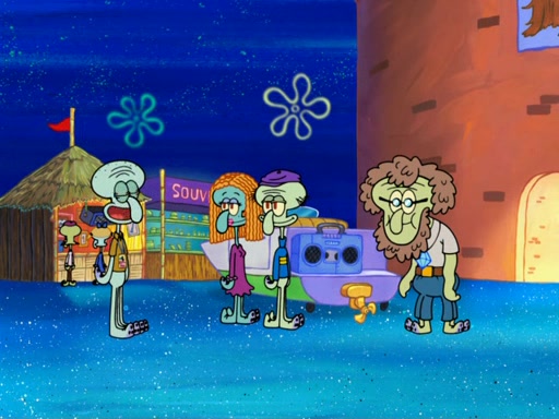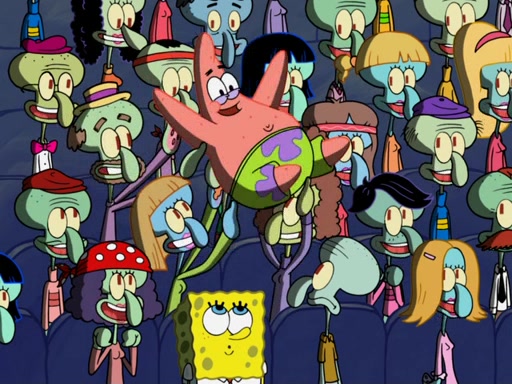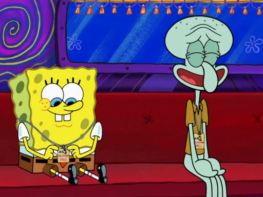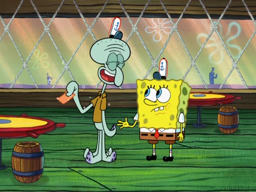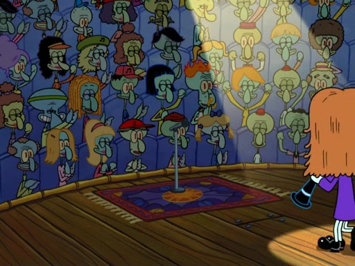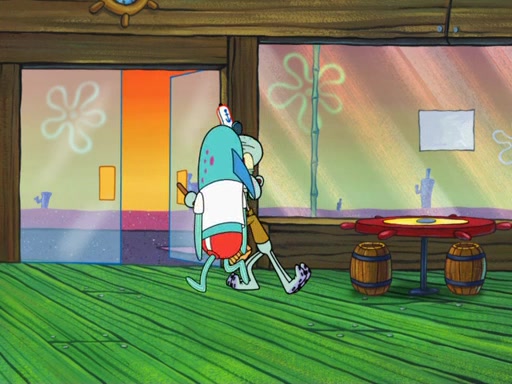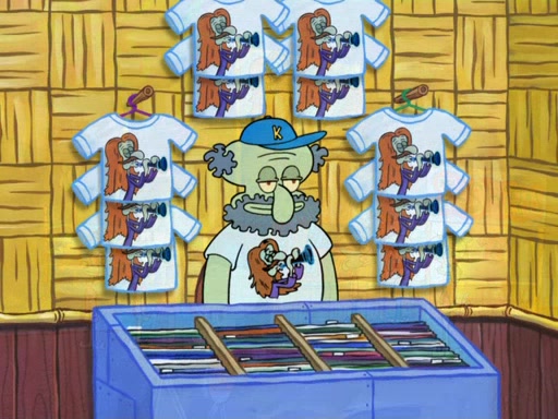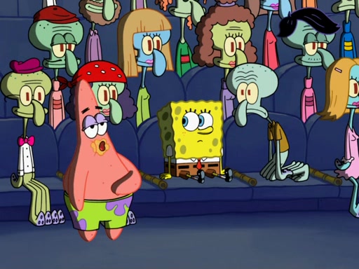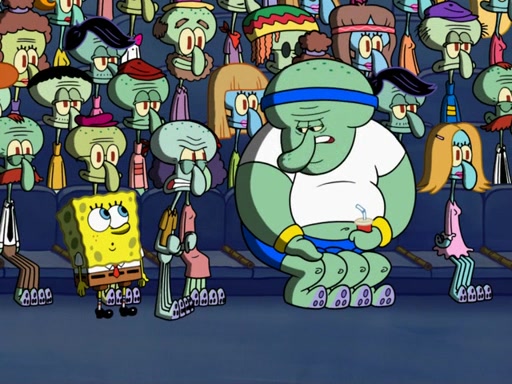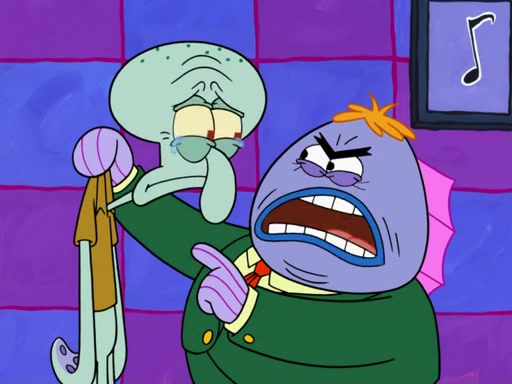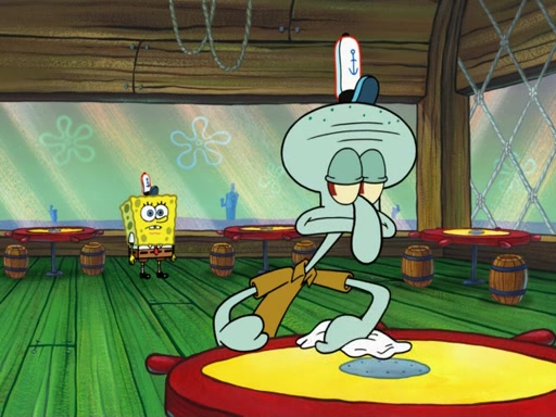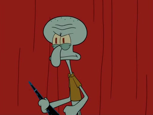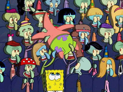 The guards kick them out. The duo manages to sneak backstage, but Kelpy G's manager tells them that they need to leave because they don't have any backstage passes. They both attempt to impress Kelpy G. Squidward begins to play the clarinet, while SpongeBob plays the ukulele. Kelpy G is impressed with SpongeBob's ukulele playing. The fans wait for Kelpy G to come and he does, but there is a partner with him, who happens to be SpongeBob. Squidward comes out on the stage to prove that he is better. However, the guards carry him out and the episode ends.