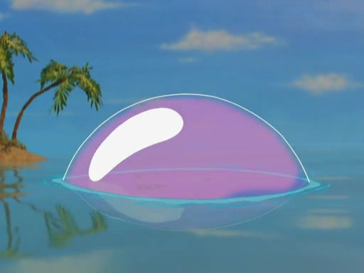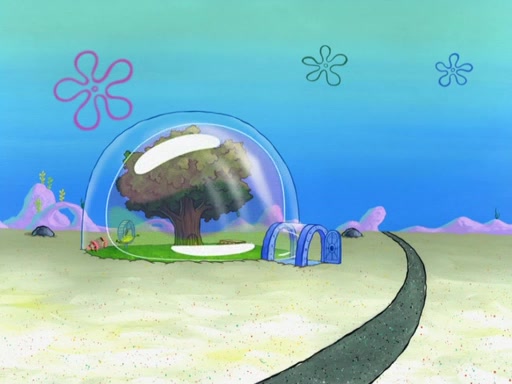 Sandy wakes up in the treedome with SpongeBob and Patrick. SpongeBob explains that he saved her with bubbles and she remembers that it was bubbles which caused all the trouble in the first place. Sandy tells them not to blow bubbles around her treedome anymore, but it turns out SpongeBob already blew one giant bubble around the treedome, which lifts it away.