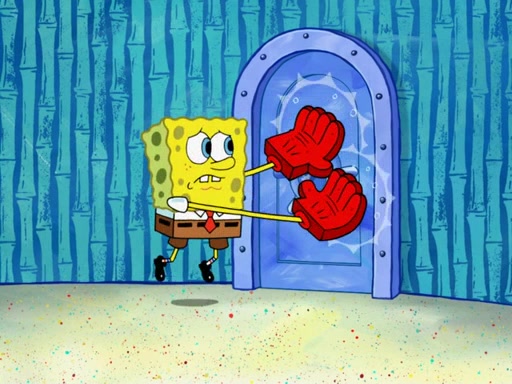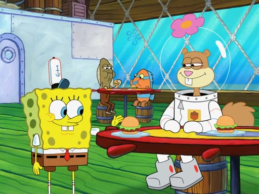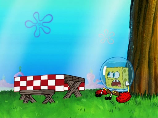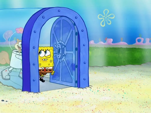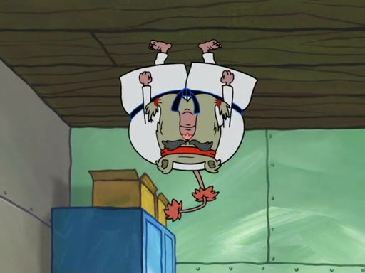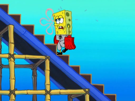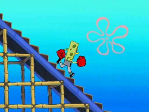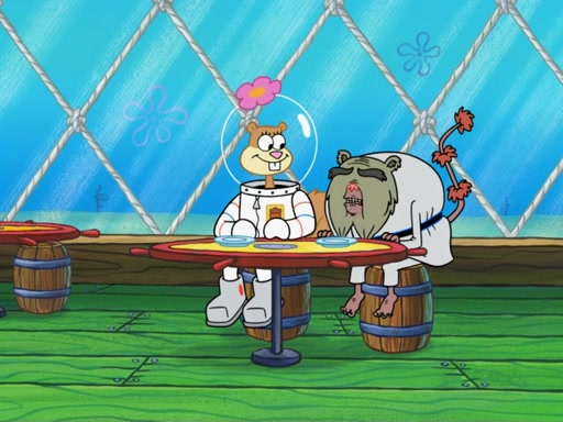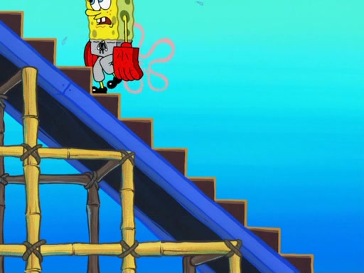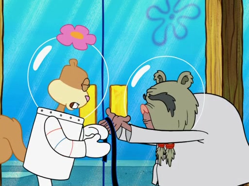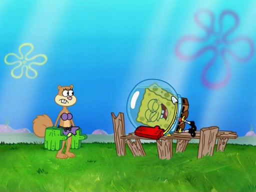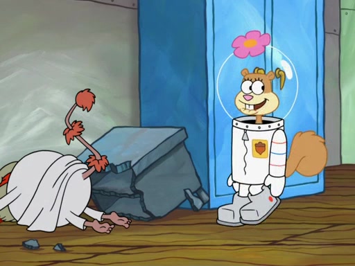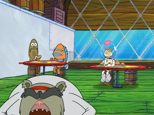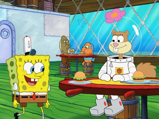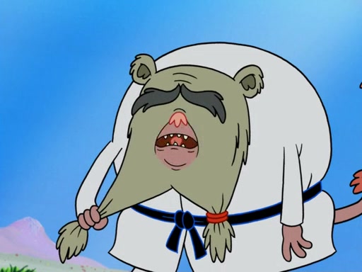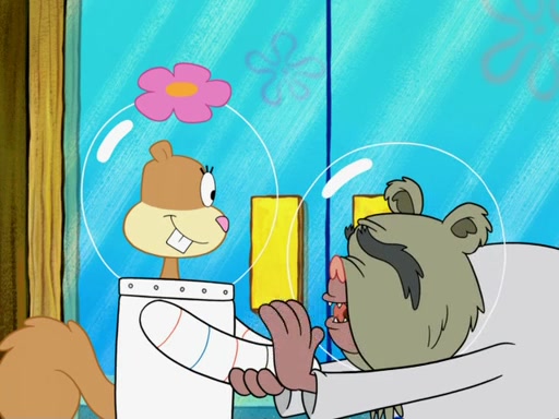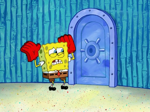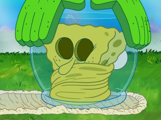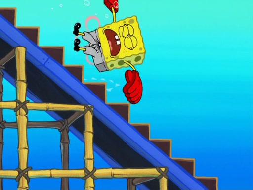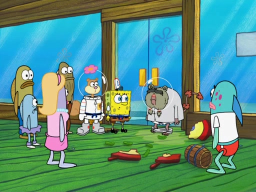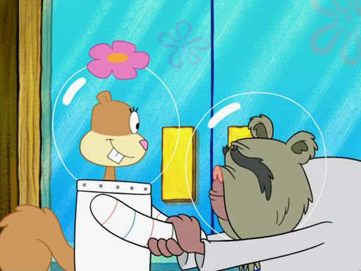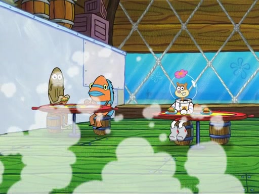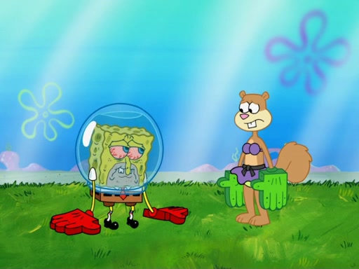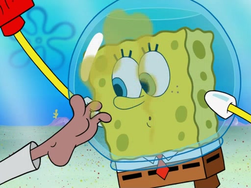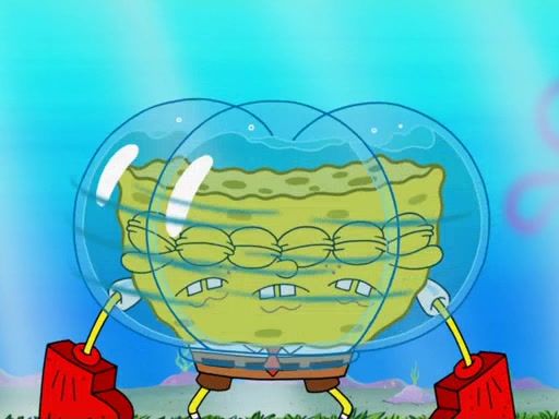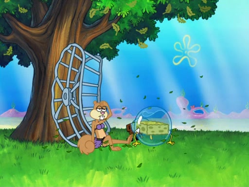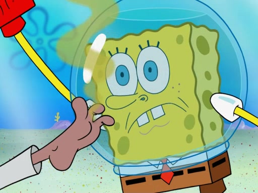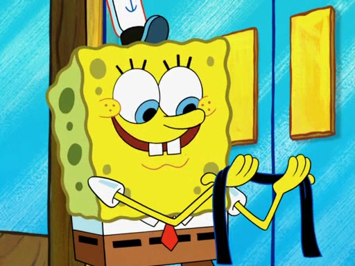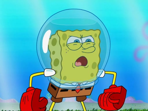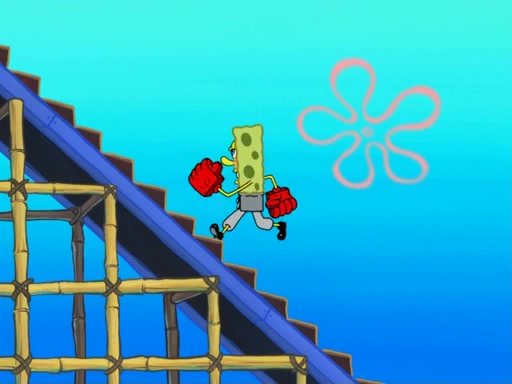 SpongeBob runs home to train himself overnight and then comes back, tired and unrested to spar with Sandy. He does very poorly, falls asleep, and is sad. Fuzzy said if he lasted longer, he would have rewarded SpongeBob with the clear belt, but says that SpongeBob is not even worthy enough to wear the belt that keeps his pants up, so he takes his belt and his pants fall. He also takes Sandy's black belt away for wasting his time with SpongeBob. He leaves and Sandy tries to talk Fuzzy into giving SpongeBob another chance, but Fuzzy never gives two chances and wishes to find food. Suddenly, Sandy then gets an idea. She convinces Fuzzy to come to the Krusty Krab to see SpongeBob in action, so he goes (without an air helmet) to see him. He watches, and is still not impressed by SpongeBob's agility. He is only amazed when SpongeBob manages to slice Sandy's burger in twelfths with his hand. Fuzzy starts to think SpongeBob is more skilled than he thought, so he tries to attack SpongeBob, but SpongeBob is so busy that he doesn't notice Fuzzy sneaking up on him and dodges Fuzzy. Fuzzy decides he has had enough and tries to finish it, but SpongeBob bends over to get a dropped ketchup bottle, dodging Fuzzy's kick, sending him over to the door of the Krusty Krab. He looks terrible, but Sandy says Fuzzy just needs an air helmet. She gives him one, and he admits that SpongeBob is a worthy karate fighter, and so, he gives SpongeBob a black belt. As well, he gives Sandy his blacker belt for proving that SpongeBob does know karate. Without his belt, Fuzzy's pants fall down, revealing his underwear. The whole crowd cheers with laughter.