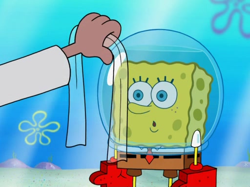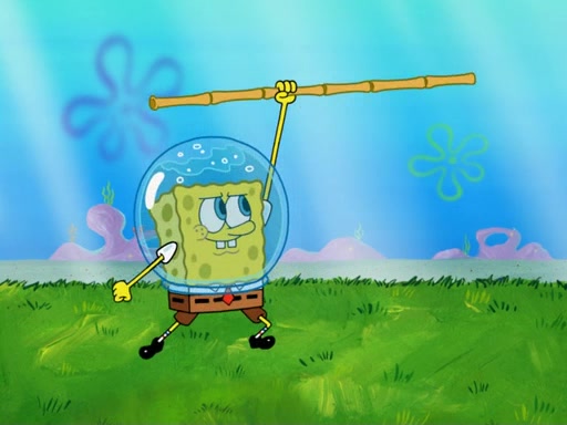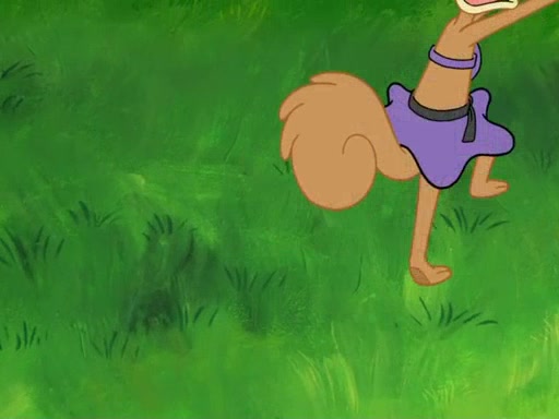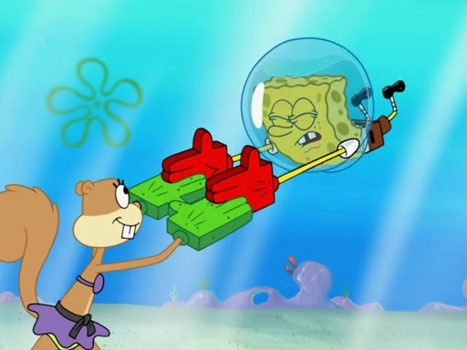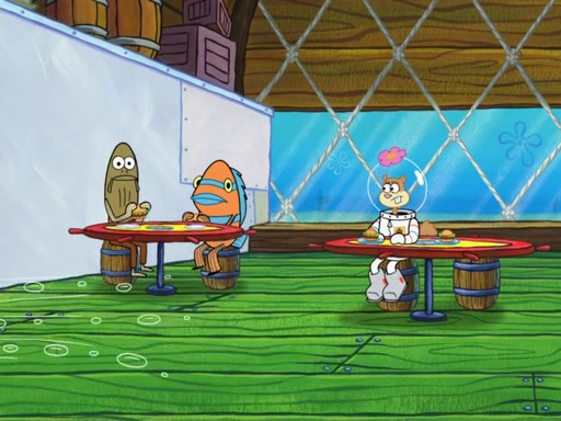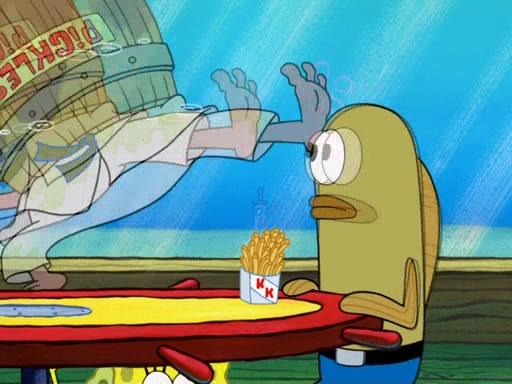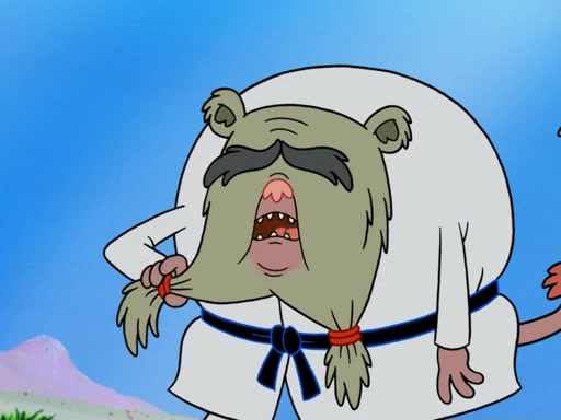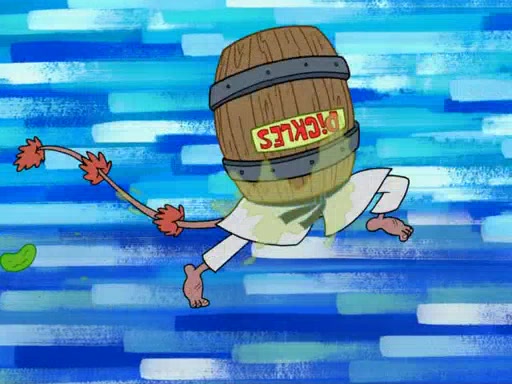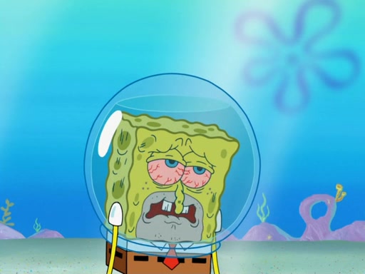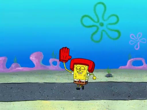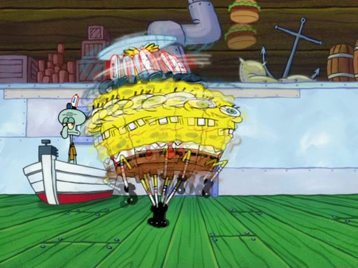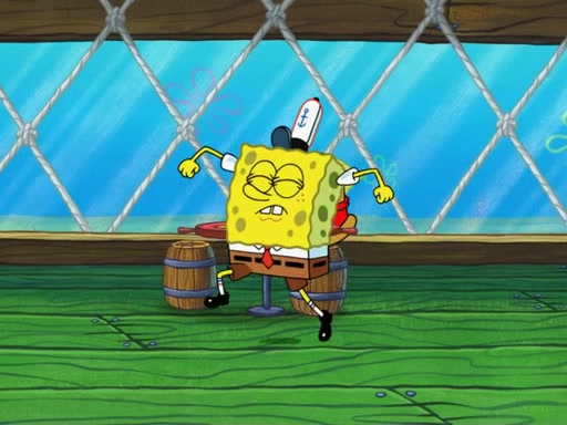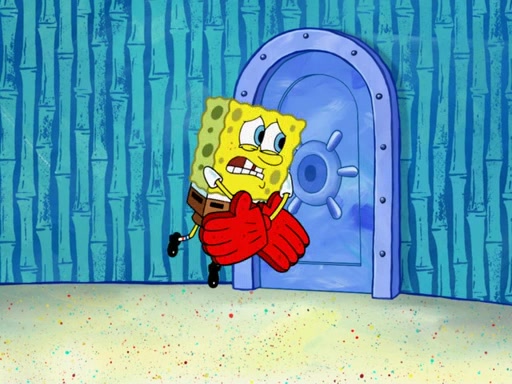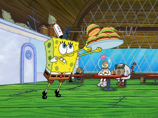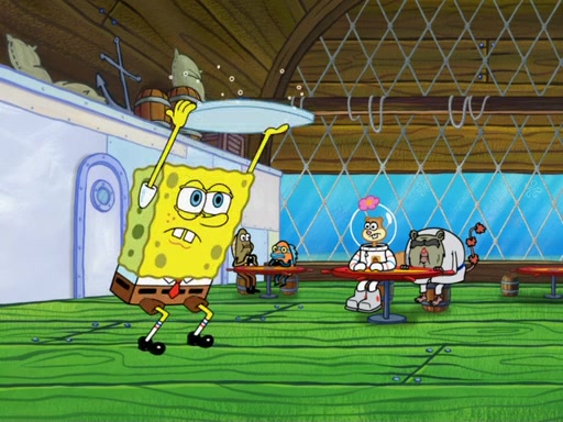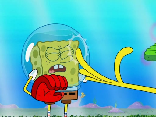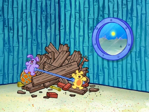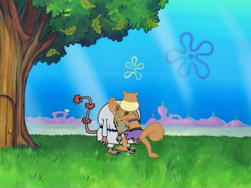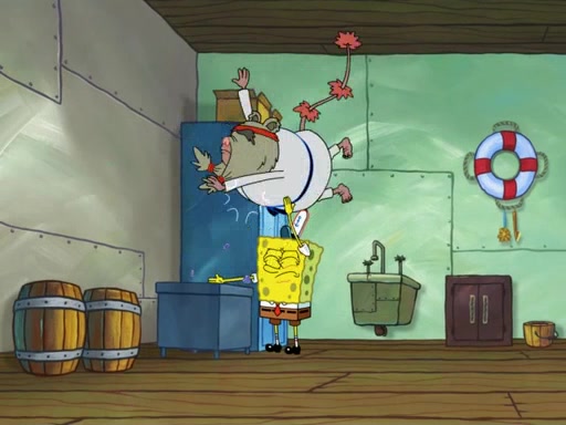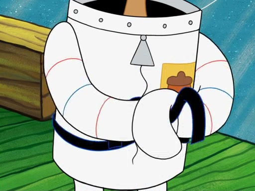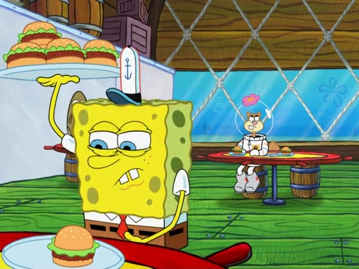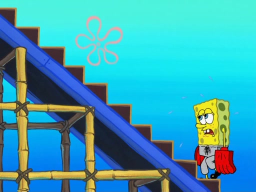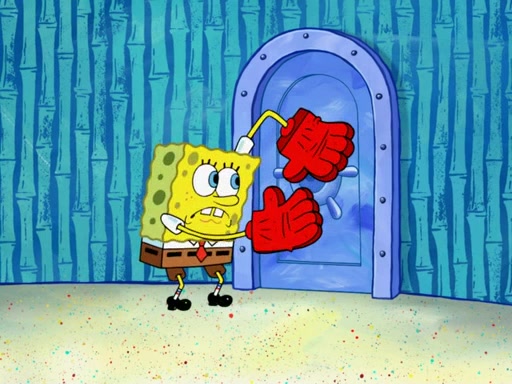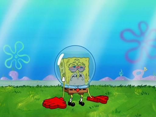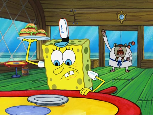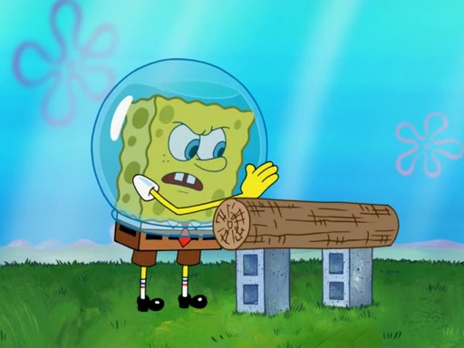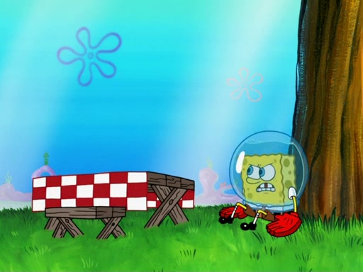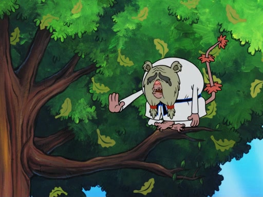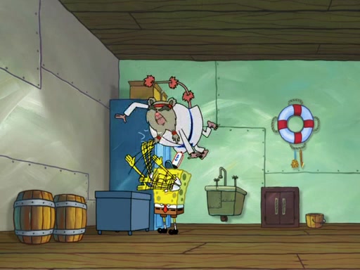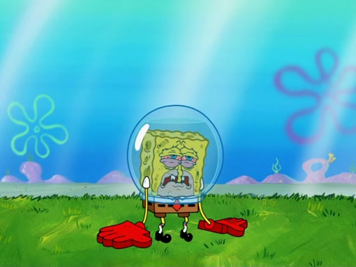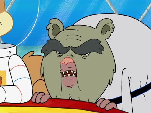 SpongeBob runs home to train himself overnight and then comes back, tired and unrested to spar with Sandy. He does very poorly, falls asleep, and is sad. Fuzzy said if he lasted longer, he would have rewarded SpongeBob with the clear belt, but says that SpongeBob is not even worthy enough to wear the belt that keeps his pants up, so he takes his belt and his pants fall. He also takes Sandy's black belt away for wasting his time with SpongeBob. He leaves and Sandy tries to talk Fuzzy into giving SpongeBob another chance, but Fuzzy never gives two chances and wishes to find food. Suddenly, Sandy then gets an idea. She convinces Fuzzy to come to the Krusty Krab to see SpongeBob in action, so he goes (without an air helmet) to see him. He watches, and is still not impressed by SpongeBob's agility. He is only amazed when SpongeBob manages to slice Sandy's burger in twelfths with his hand. Fuzzy starts to think SpongeBob is more skilled than he thought, so he tries to attack SpongeBob, but SpongeBob is so busy that he doesn't notice Fuzzy sneaking up on him and dodges Fuzzy. Fuzzy decides he has had enough and tries to finish it, but SpongeBob bends over to get a dropped ketchup bottle, dodging Fuzzy's kick, sending him over to the door of the Krusty Krab. He looks terrible, but Sandy says Fuzzy just needs an air helmet. She gives him one, and he admits that SpongeBob is a worthy karate fighter, and so, he gives SpongeBob a black belt. As well, he gives Sandy his blacker belt for proving that SpongeBob does know karate. Without his belt, Fuzzy's pants fall down, revealing his underwear. The whole crowd cheers with laughter.