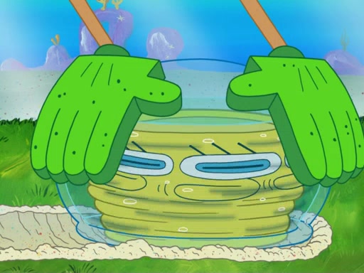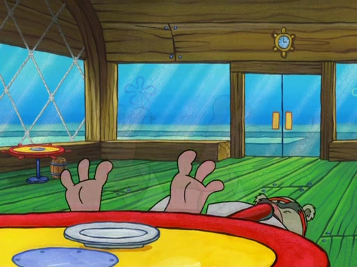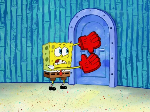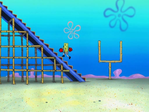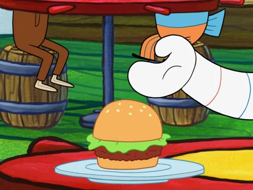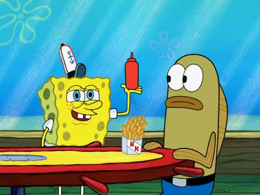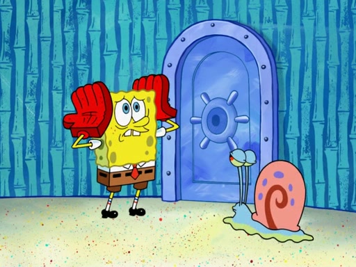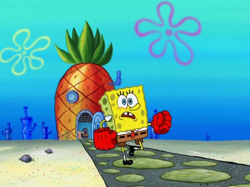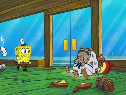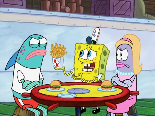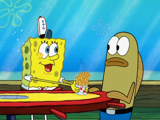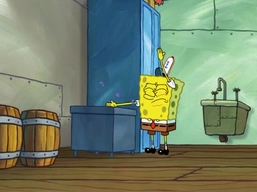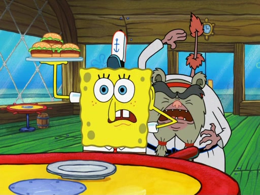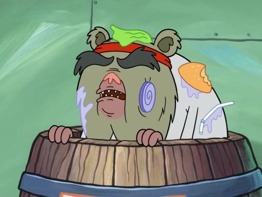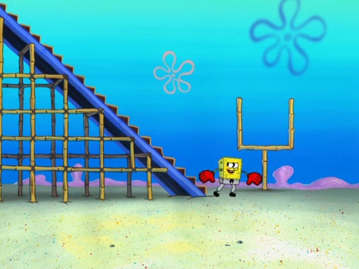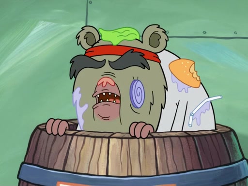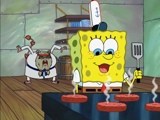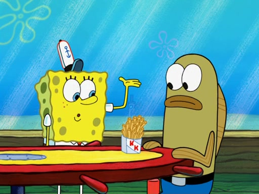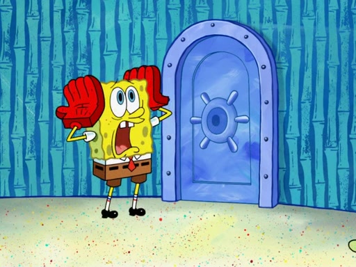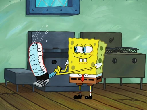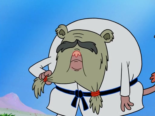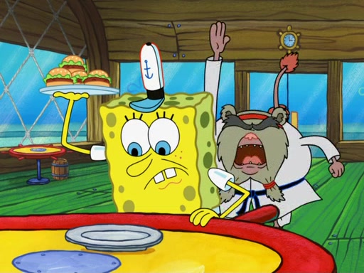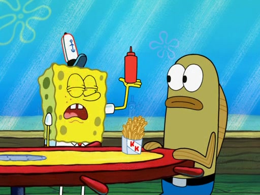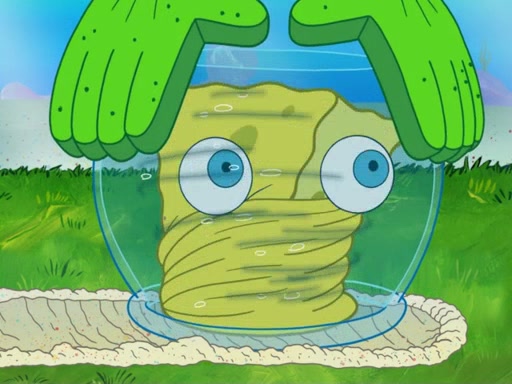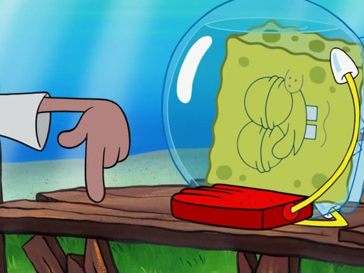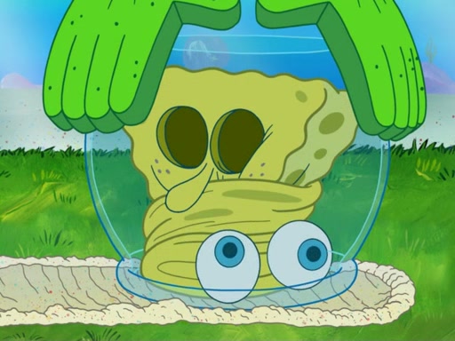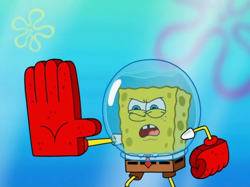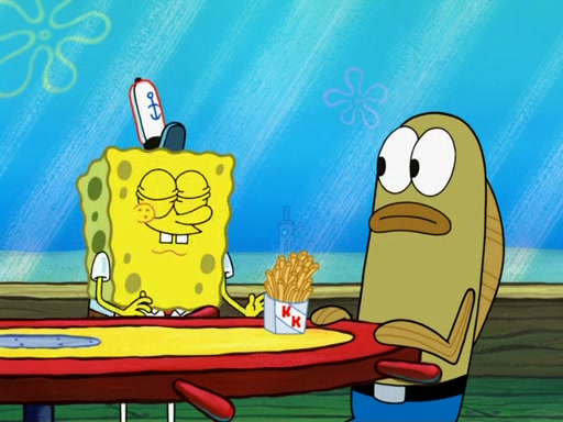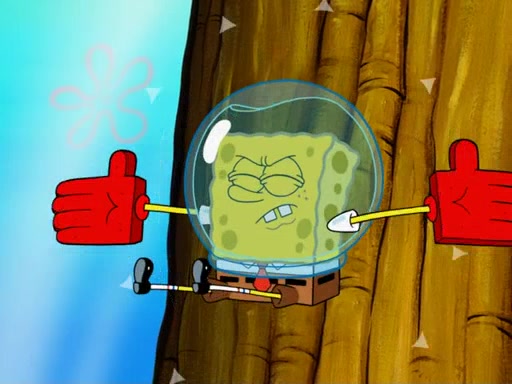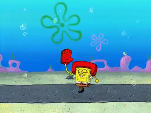 SpongeBob runs home to train himself overnight and then comes back, tired and unrested to spar with Sandy. He does very poorly, falls asleep, and is sad. Fuzzy said if he lasted longer, he would have rewarded SpongeBob with the clear belt, but says that SpongeBob is not even worthy enough to wear the belt that keeps his pants up, so he takes his belt and his pants fall. He also takes Sandy's black belt away for wasting his time with SpongeBob. He leaves and Sandy tries to talk Fuzzy into giving SpongeBob another chance, but Fuzzy never gives two chances and wishes to find food. Suddenly, Sandy then gets an idea. She convinces Fuzzy to come to the Krusty Krab to see SpongeBob in action, so he goes (without an air helmet) to see him. He watches, and is still not impressed by SpongeBob's agility. He is only amazed when SpongeBob manages to slice Sandy's burger in twelfths with his hand. Fuzzy starts to think SpongeBob is more skilled than he thought, so he tries to attack SpongeBob, but SpongeBob is so busy that he doesn't notice Fuzzy sneaking up on him and dodges Fuzzy. Fuzzy decides he has had enough and tries to finish it, but SpongeBob bends over to get a dropped ketchup bottle, dodging Fuzzy's kick, sending him over to the door of the Krusty Krab. He looks terrible, but Sandy says Fuzzy just needs an air helmet. She gives him one, and he admits that SpongeBob is a worthy karate fighter, and so, he gives SpongeBob a black belt. As well, he gives Sandy his blacker belt for proving that SpongeBob does know karate. Without his belt, Fuzzy's pants fall down, revealing his underwear. The whole crowd cheers with laughter.