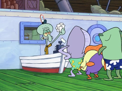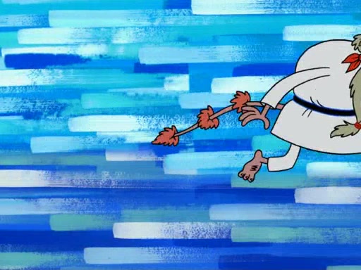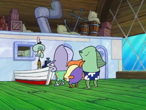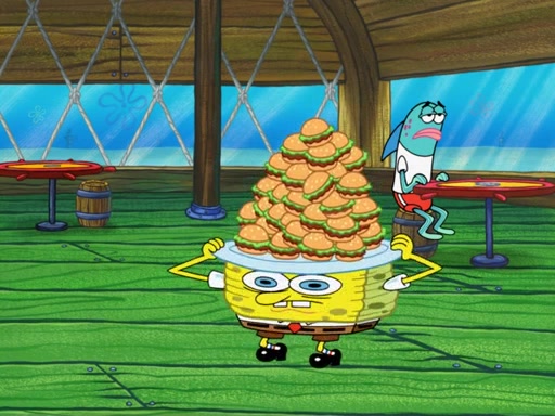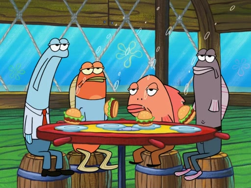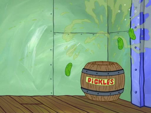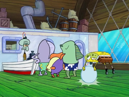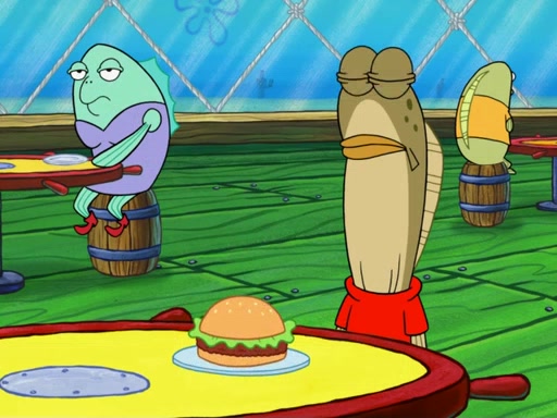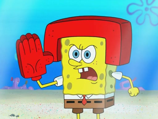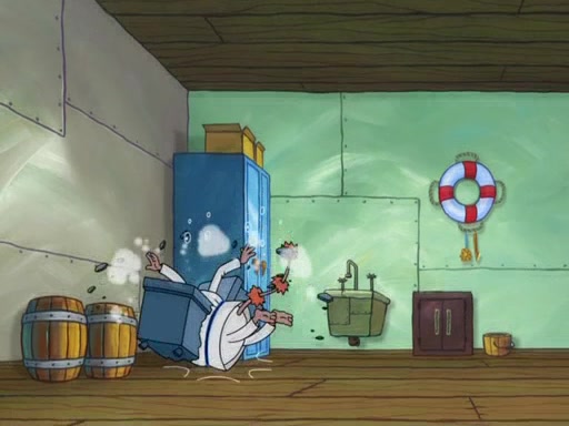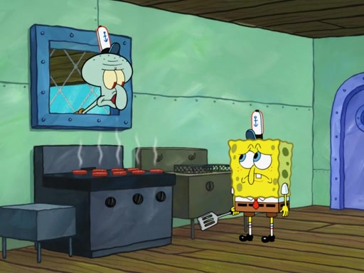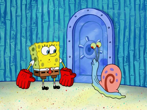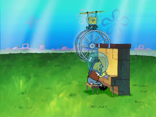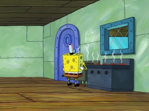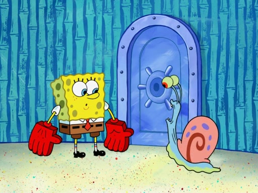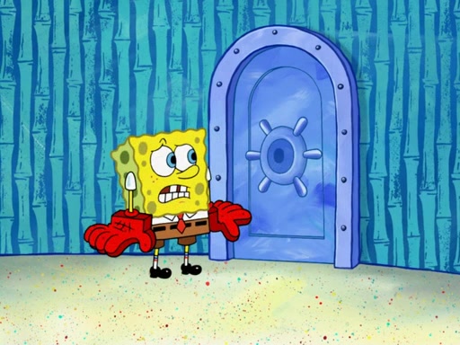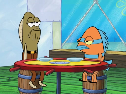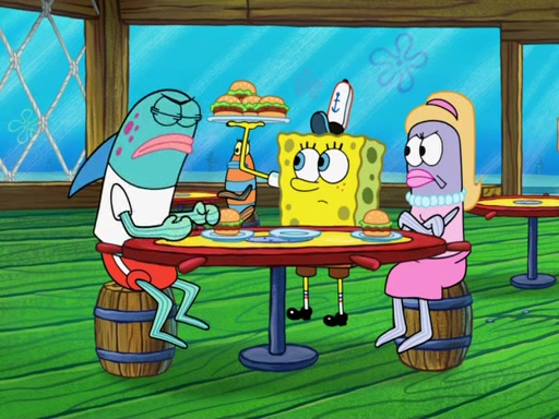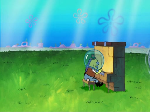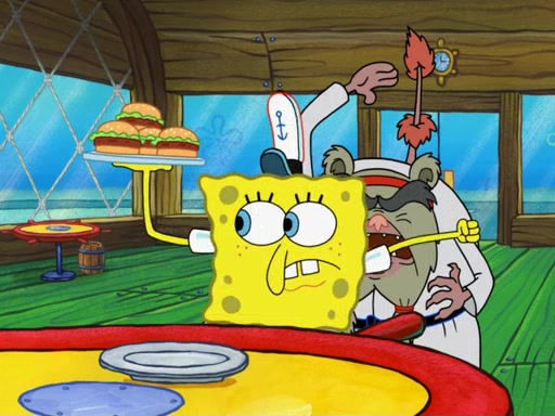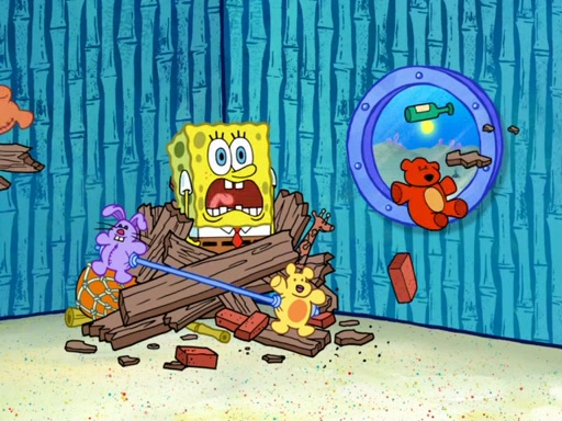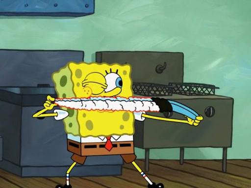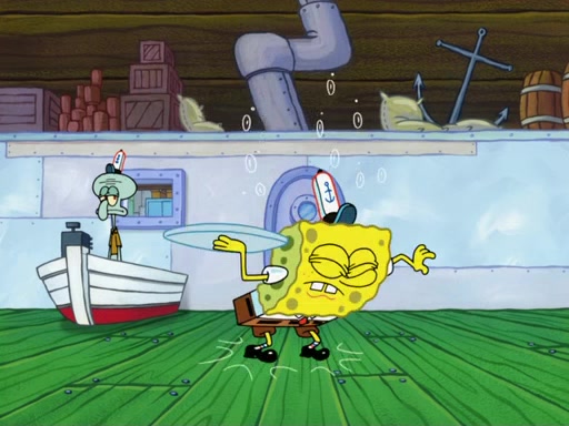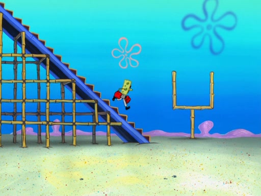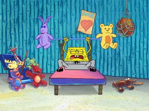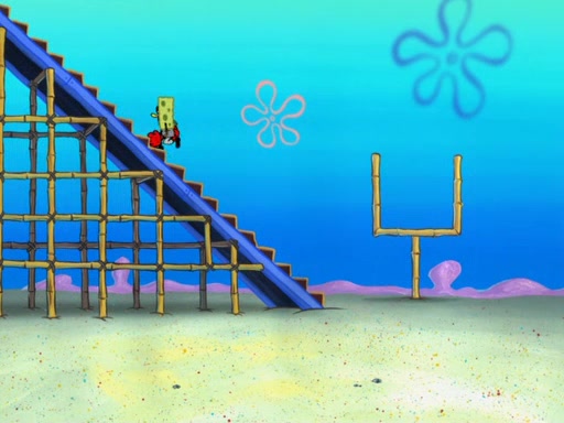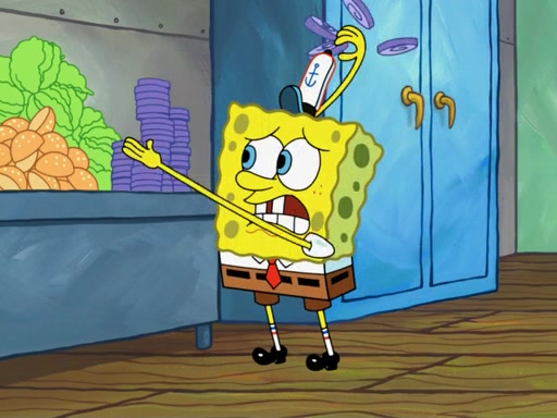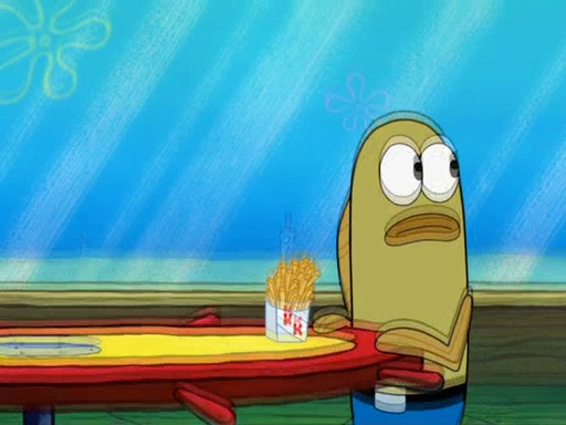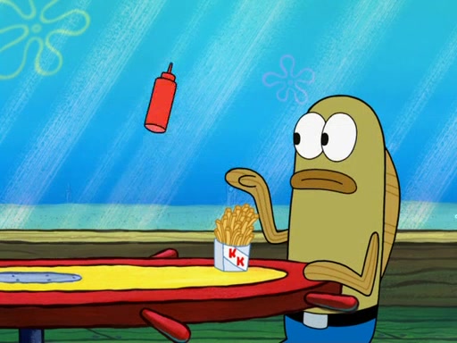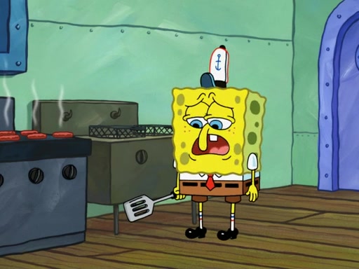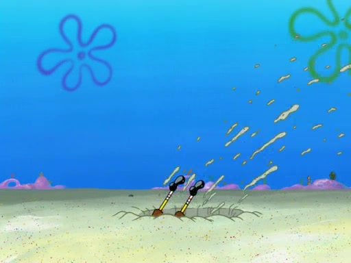 SpongeBob runs home to train himself overnight and then comes back, tired and unrested to spar with Sandy. He does very poorly, falls asleep, and is sad. Fuzzy said if he lasted longer, he would have rewarded SpongeBob with the clear belt, but says that SpongeBob is not even worthy enough to wear the belt that keeps his pants up, so he takes his belt and his pants fall. He also takes Sandy's black belt away for wasting his time with SpongeBob. He leaves and Sandy tries to talk Fuzzy into giving SpongeBob another chance, but Fuzzy never gives two chances and wishes to find food. Suddenly, Sandy then gets an idea. She convinces Fuzzy to come to the Krusty Krab to see SpongeBob in action, so he goes (without an air helmet) to see him. He watches, and is still not impressed by SpongeBob's agility. He is only amazed when SpongeBob manages to slice Sandy's burger in twelfths with his hand. Fuzzy starts to think SpongeBob is more skilled than he thought, so he tries to attack SpongeBob, but SpongeBob is so busy that he doesn't notice Fuzzy sneaking up on him and dodges Fuzzy. Fuzzy decides he has had enough and tries to finish it, but SpongeBob bends over to get a dropped ketchup bottle, dodging Fuzzy's kick, sending him over to the door of the Krusty Krab. He looks terrible, but Sandy says Fuzzy just needs an air helmet. She gives him one, and he admits that SpongeBob is a worthy karate fighter, and so, he gives SpongeBob a black belt. As well, he gives Sandy his blacker belt for proving that SpongeBob does know karate. Without his belt, Fuzzy's pants fall down, revealing his underwear. The whole crowd cheers with laughter.