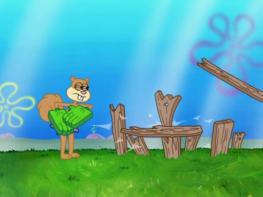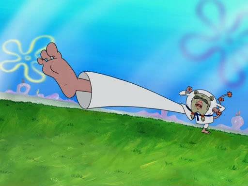 The episode starts with SpongeBob walking over to Sandy's place to show her a new karate move. He arrives and sees her with someone else, which makes him think she is being attacked, so SpongeBob walks in to defend her, but gets stopped by the stranger's smelly feet. Sandy introduces SpongeBob to the stranger; Fuzzy Acorns, the greatest karate master ever. Sandy tells him that Fuzzy is here to see her karate skills. She is trying to earn a blacker belt, the highest belt in karate. SpongeBob wishes he had a belt, which Fuzzy overhears and tells SpongeBob that if he wants a belt, he has to earn it. He offers to train SpongeBob so that he can earn a belt. The sponge tries all the tests that Fuzzy gives him, but he fails. Now fed up, Fuzzy tells SpongeBob that he will face against Sandy tomorrow. If SpongeBob passes, he will get a belt, otherwise, he gets nothing.