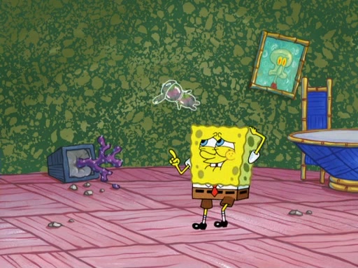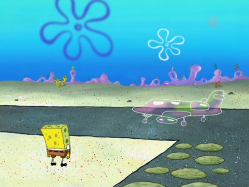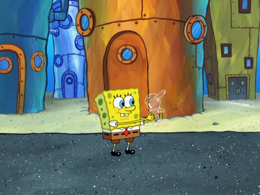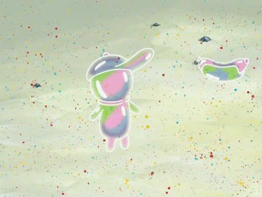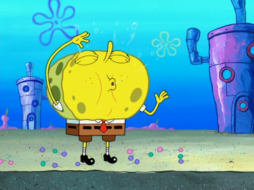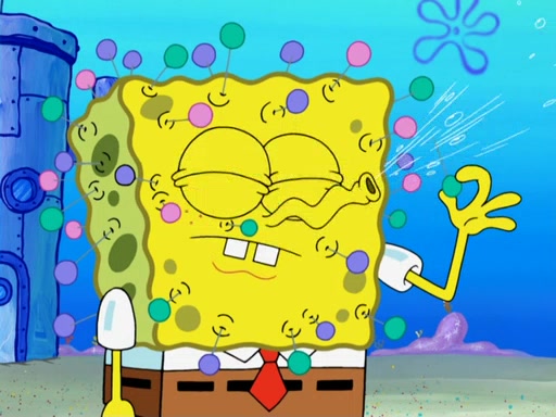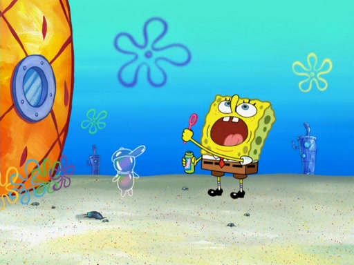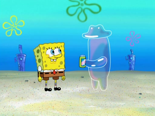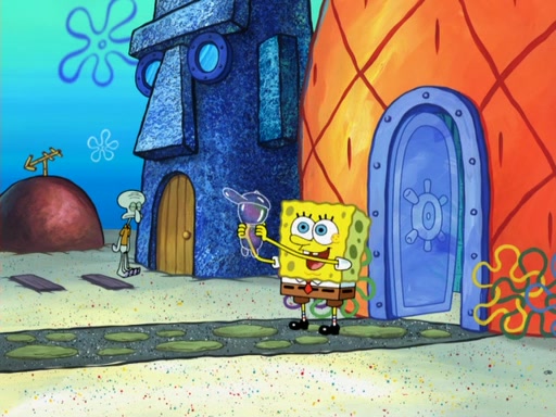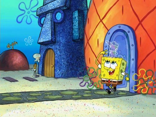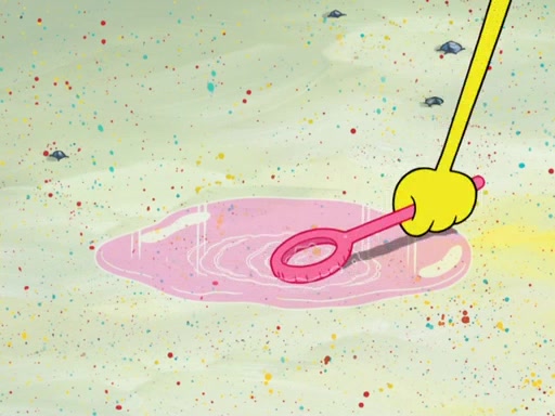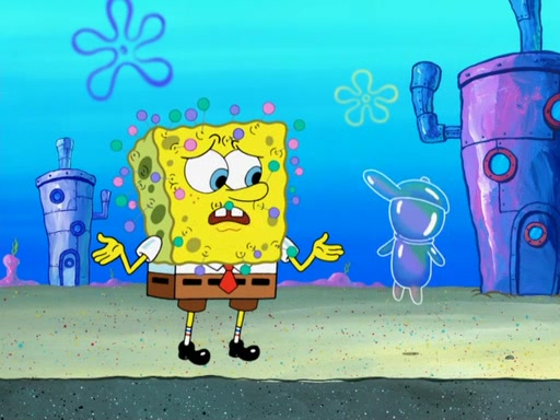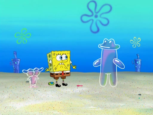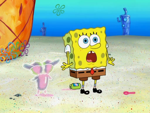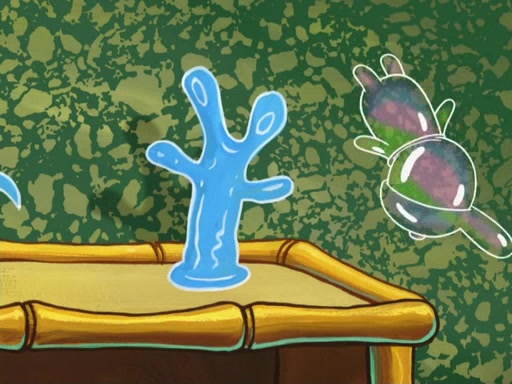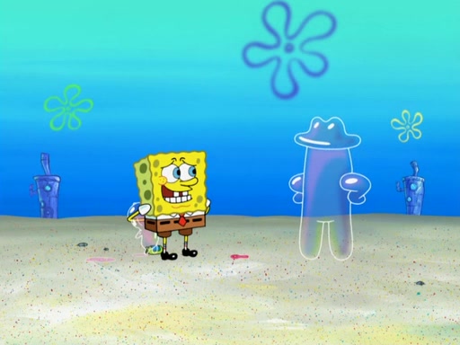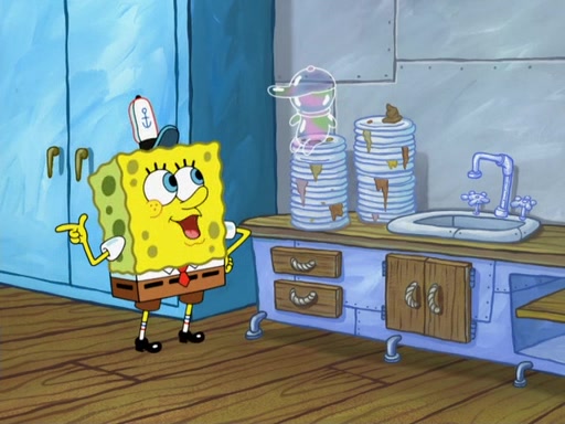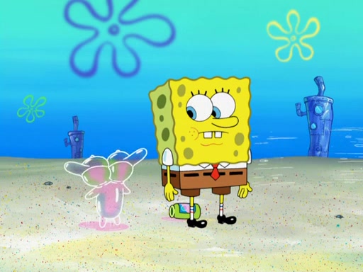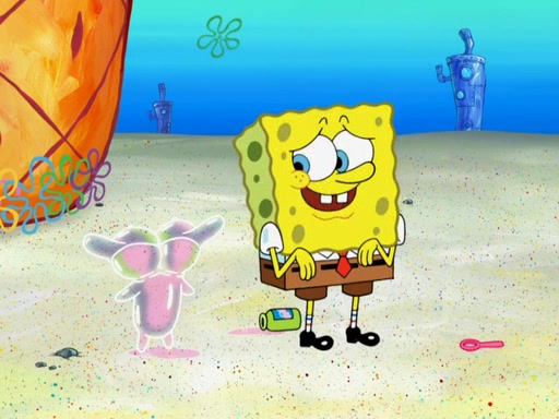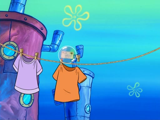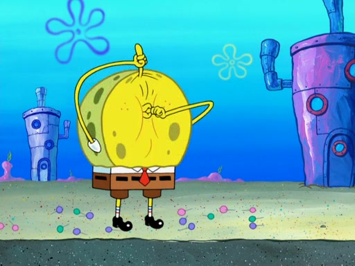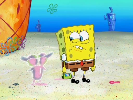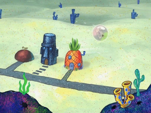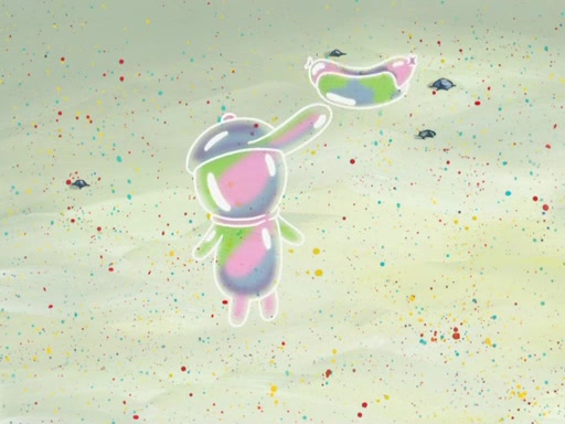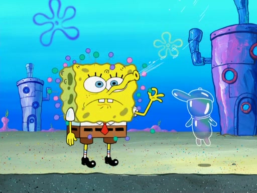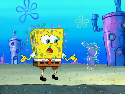 He went into the pin factory, the scissor works, and he went into the pitchfork pantry. Then, SpongeBob decided to go to the pillow foundry and he found out that was a dangerous place too. When they got home, he fed Shiny a hot dog. But then he popped, and SpongeBob had the bubble soap to repair him. Finally, when he blew another Shiny, he grew two heads. Then, Bubble Buddy came to his house to pick up Shiny. SpongeBob begins to apologize about Shiny, but Bubble Buddy says that it was okay, because sometimes, it had happened to Shiny. Then, he traps Shiny into a bottle of bubble soap. As they were leaving on a bubble plane, Shiny is normal again, blowing a raspberry out from the bottle and they went into the plane and flew away.