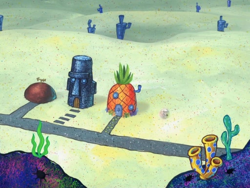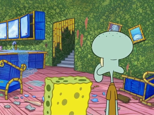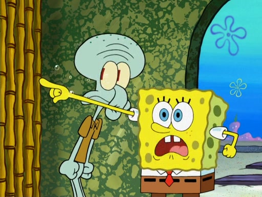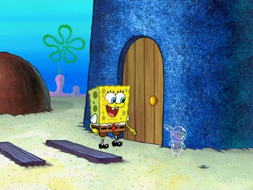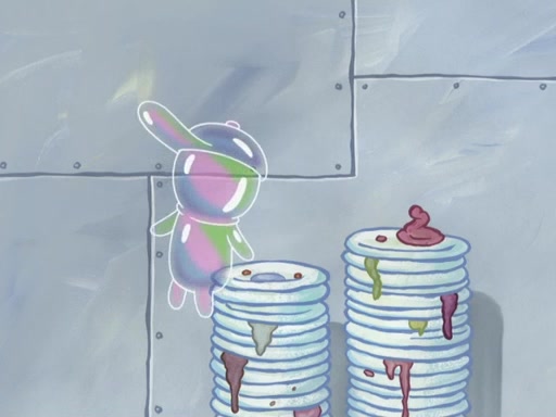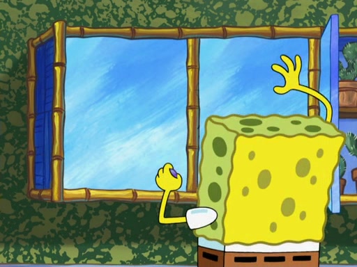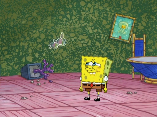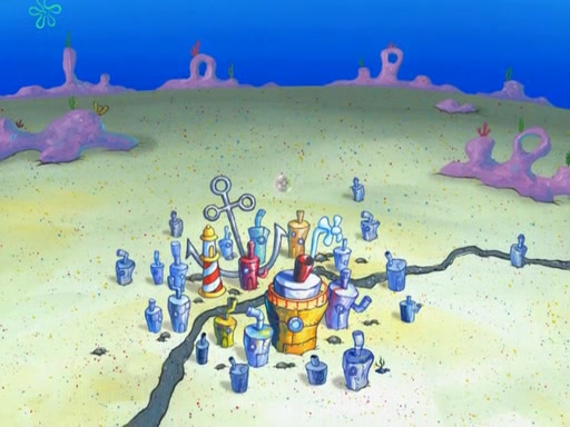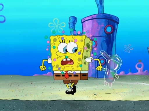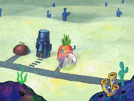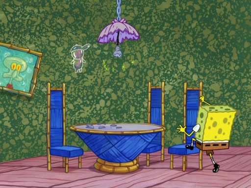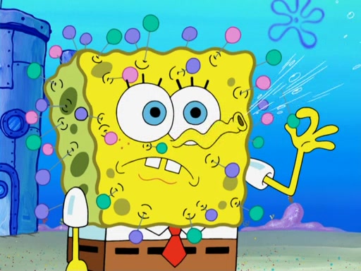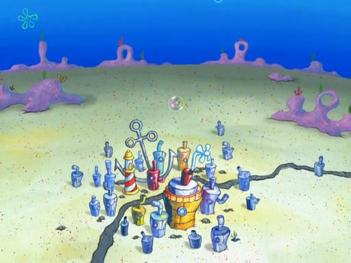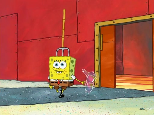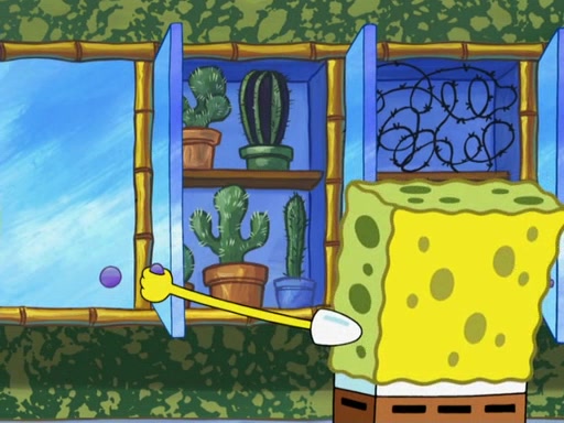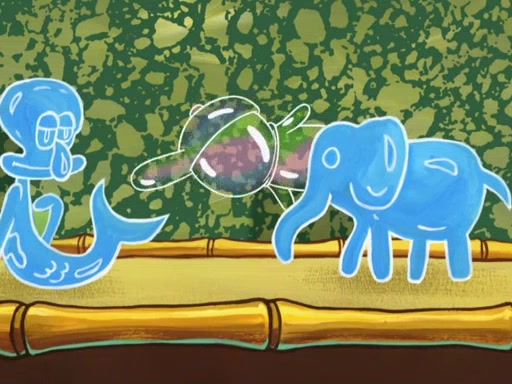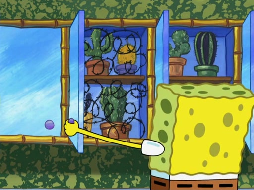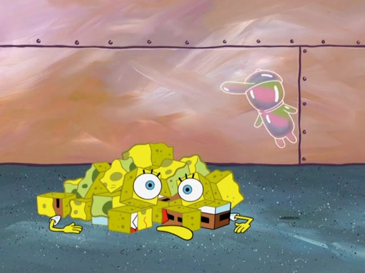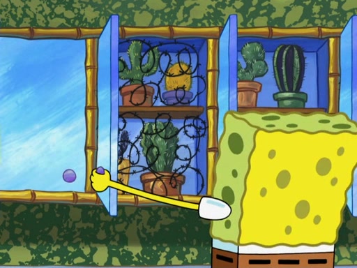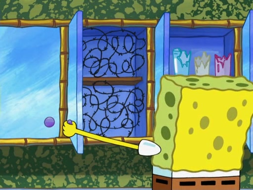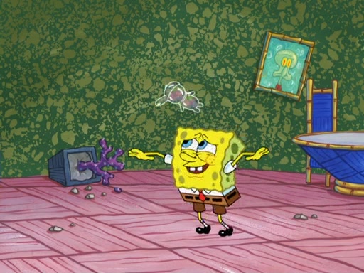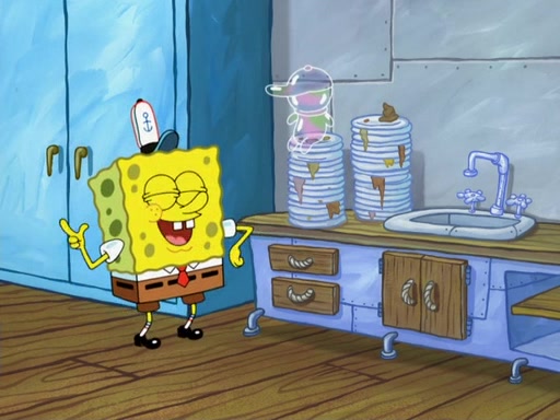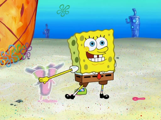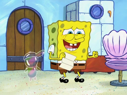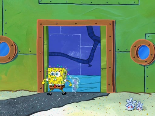He went into the pin factory, the scissor works, and he went into the pitchfork pantry. Then, SpongeBob decided to go to the pillow foundry and he found out that was a dangerous place too. When they got home, he fed Shiny a hot dog. But then he popped, and SpongeBob had the bubble soap to repair him. Finally, when he blew another Shiny, he grew two heads. Then, Bubble Buddy came to his house to pick up Shiny. SpongeBob begins to apologize about Shiny, but Bubble Buddy says that it was okay, because sometimes, it had happened to Shiny. Then, he traps Shiny into a bottle of bubble soap. As they were leaving on a bubble plane, Shiny is normal again, blowing a raspberry out from the bottle and they went into the plane and flew away.