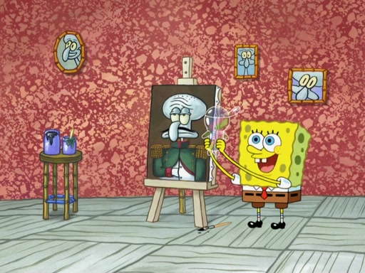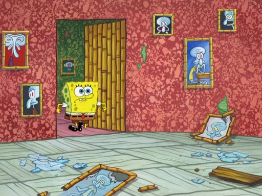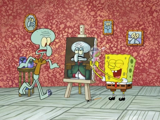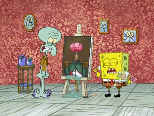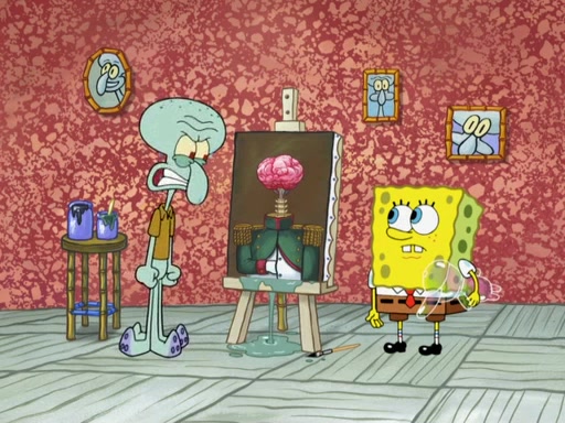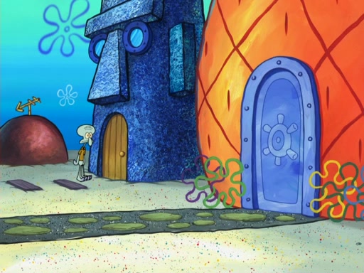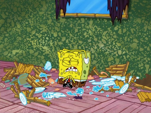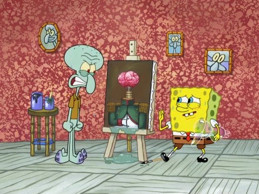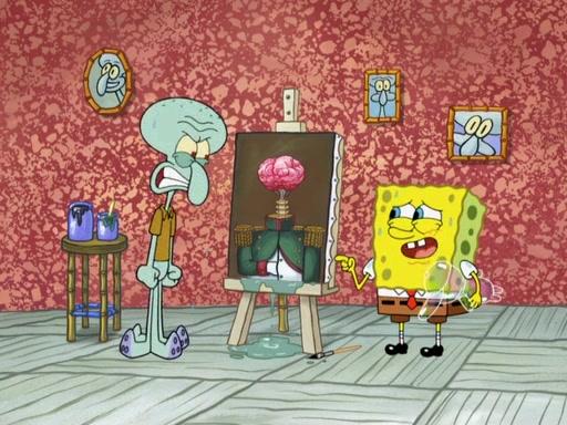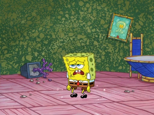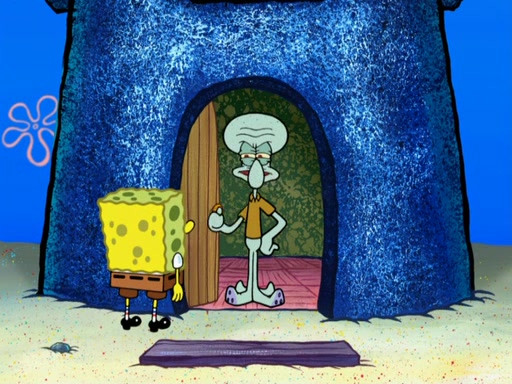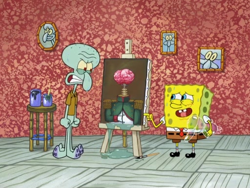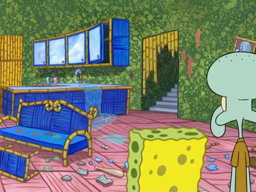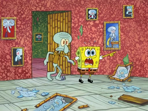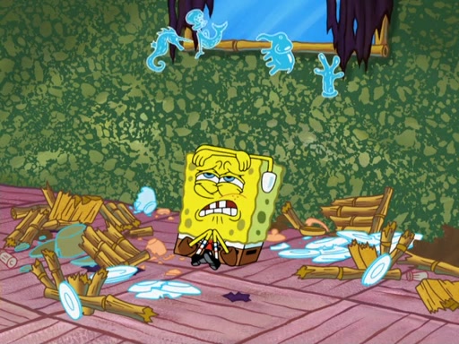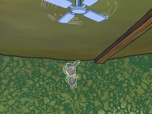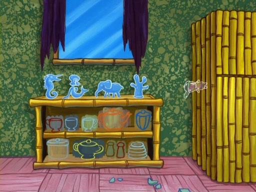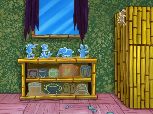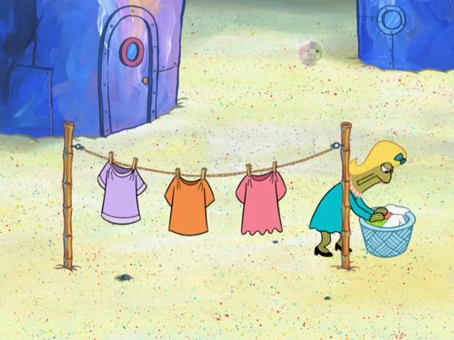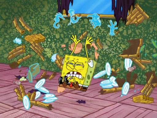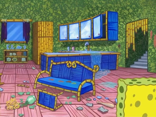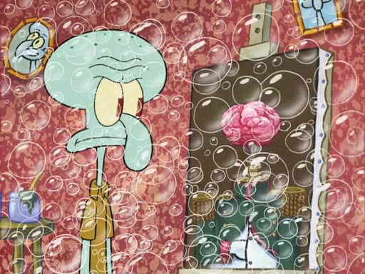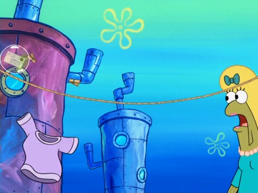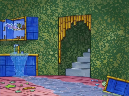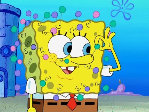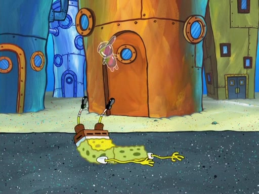 He went into the pin factory, the scissor works, and he went into the pitchfork pantry. Then, SpongeBob decided to go to the pillow foundry and he found out that was a dangerous place too. When they got home, he fed Shiny a hot dog. But then he popped, and SpongeBob had the bubble soap to repair him. Finally, when he blew another Shiny, he grew two heads. Then, Bubble Buddy came to his house to pick up Shiny. SpongeBob begins to apologize about Shiny, but Bubble Buddy says that it was okay, because sometimes, it had happened to Shiny. Then, he traps Shiny into a bottle of bubble soap. As they were leaving on a bubble plane, Shiny is normal again, blowing a raspberry out from the bottle and they went into the plane and flew away.