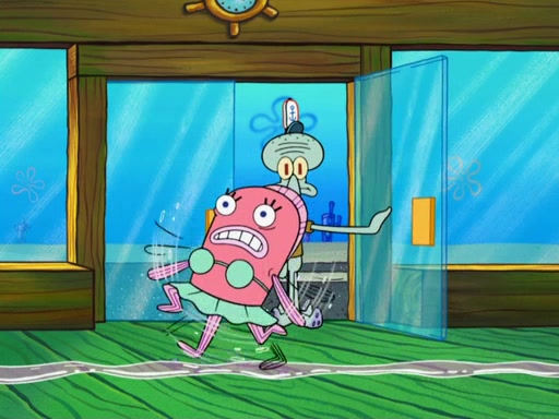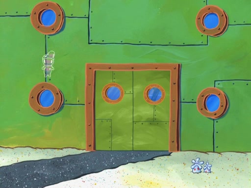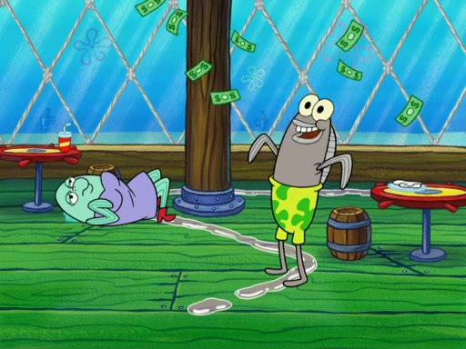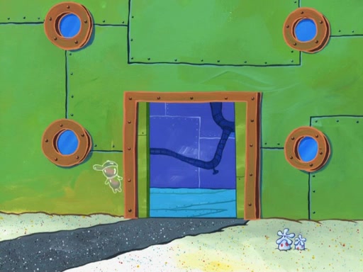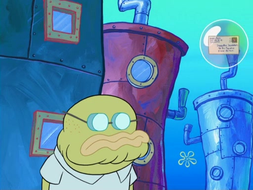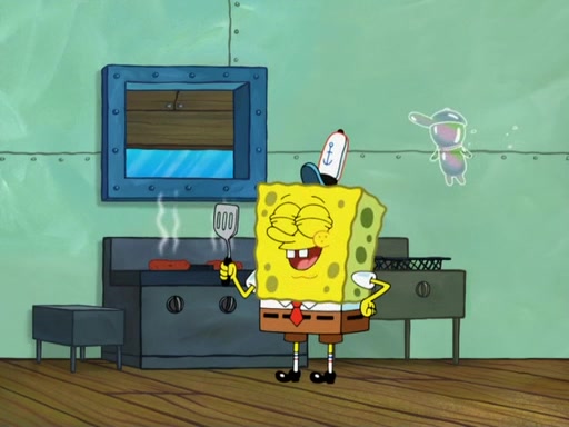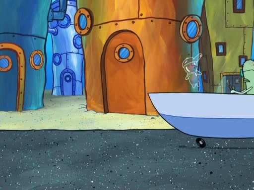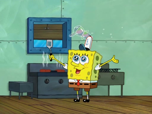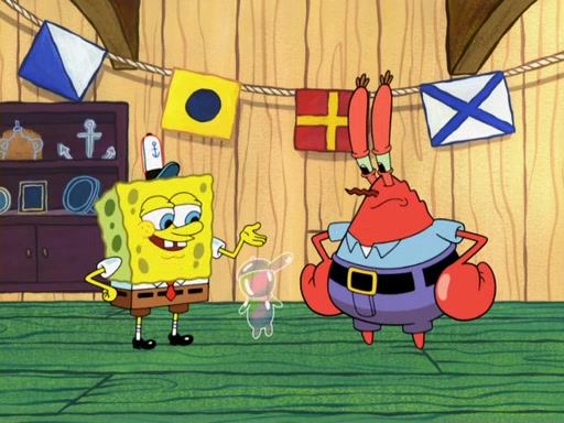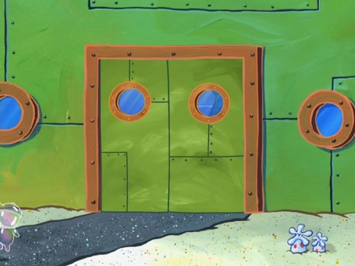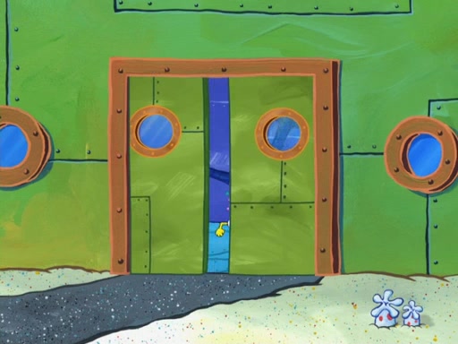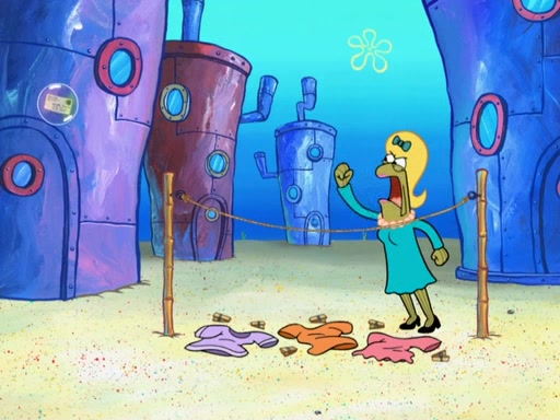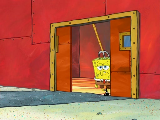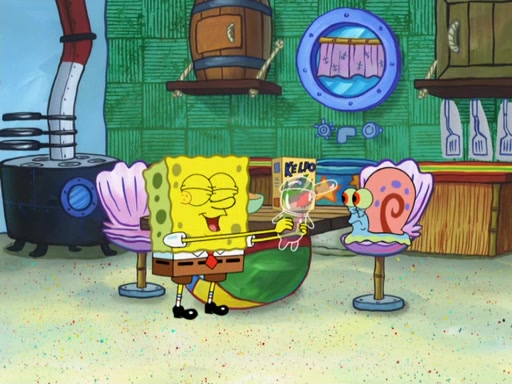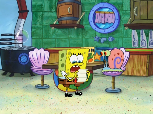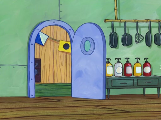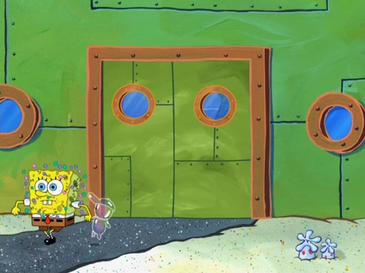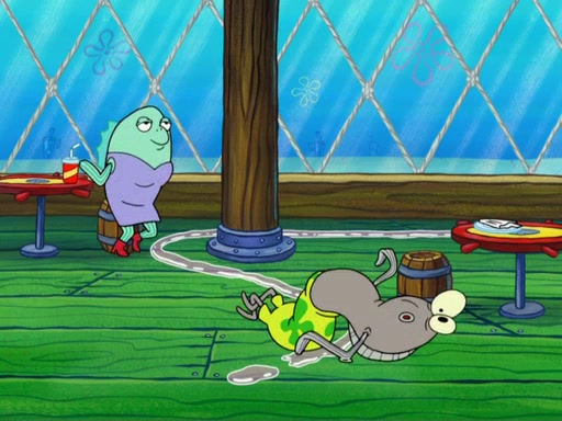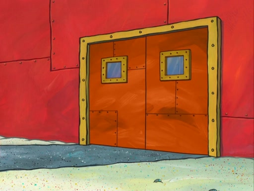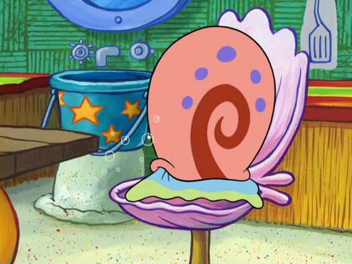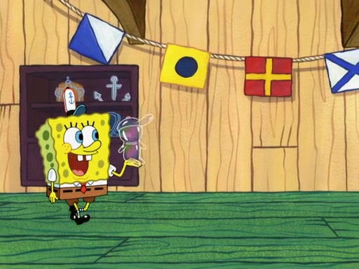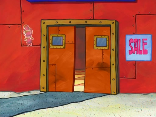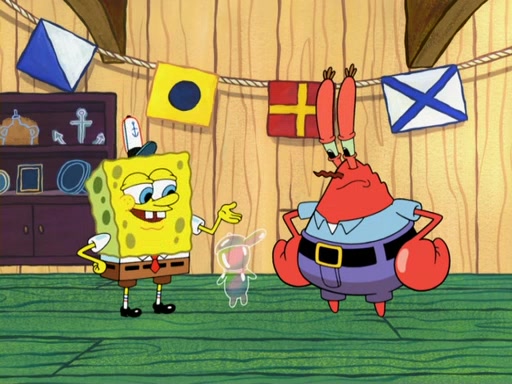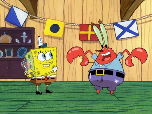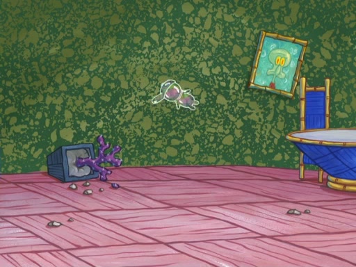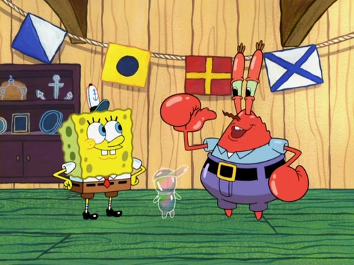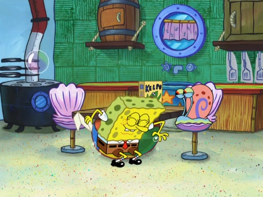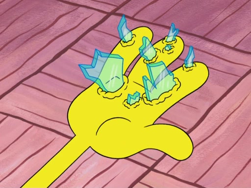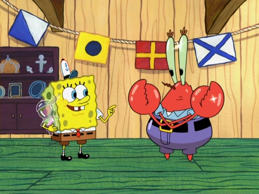 Eventually, SpongeBob catches him and takes Shiny to The Krusty Krab. Then, he went into Mr. Krabs's office and flew everywhere around him. Mr. Krabs was shiny and clean from the bubble soap and told SpongeBob to let Shiny play in the dirty dishes. Then, while SpongeBob was cooking Krabby Patties, Shiny once again gets into mischief by sliding around, and making the Krusty Krab floors slippery. All the customers kept slipping, so Mr. Krabs kicked them out. Then, Shiny flew into the city and got into lots of trouble.