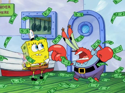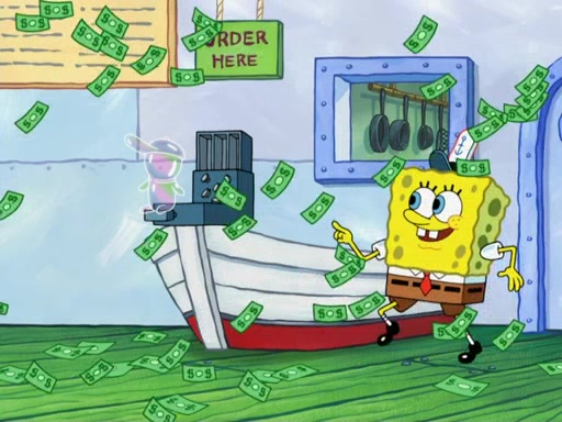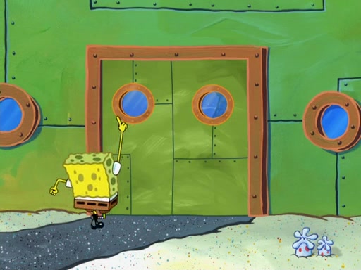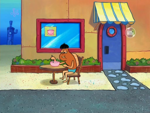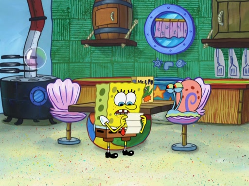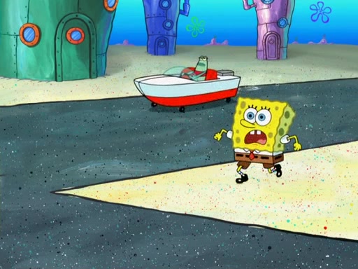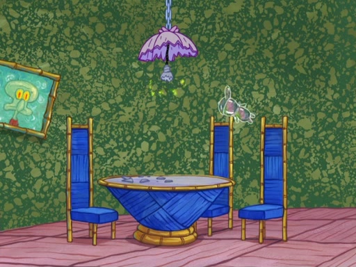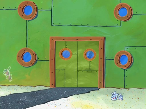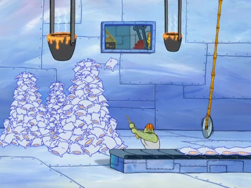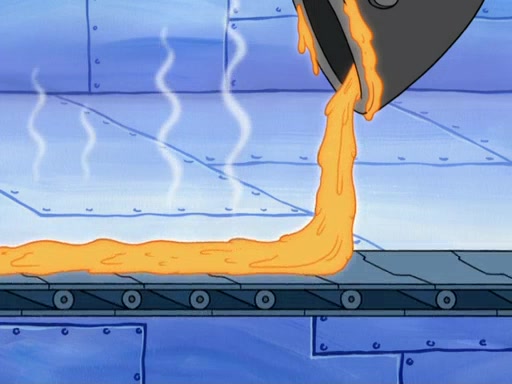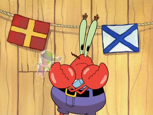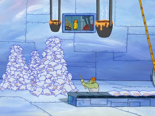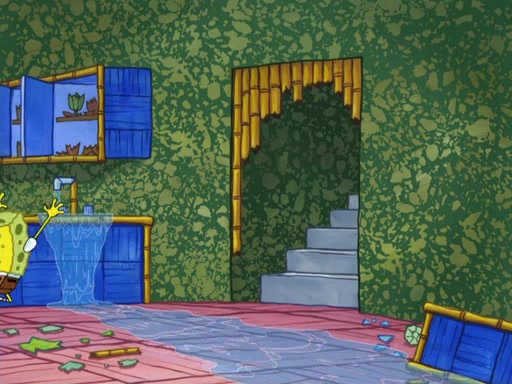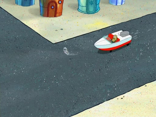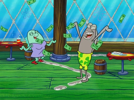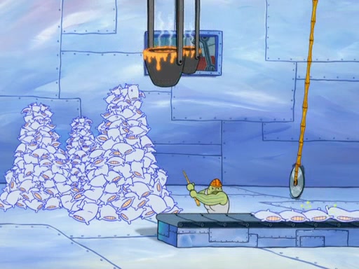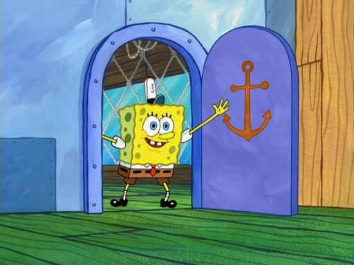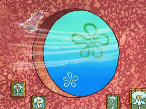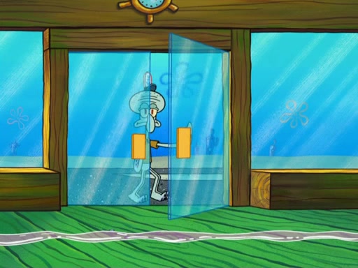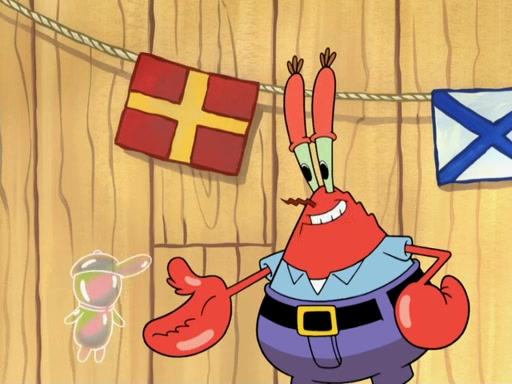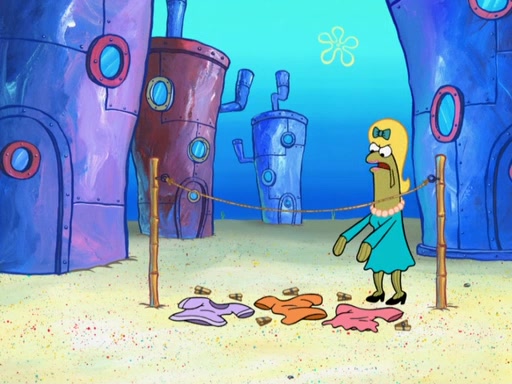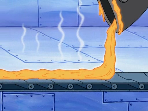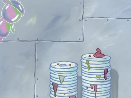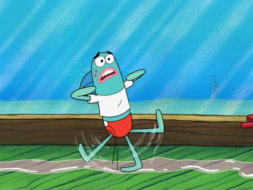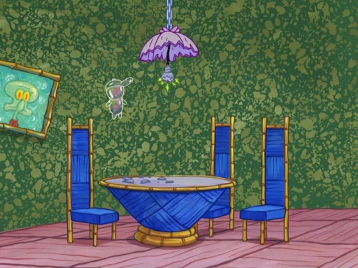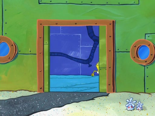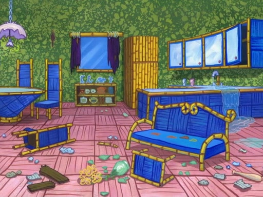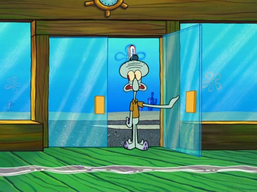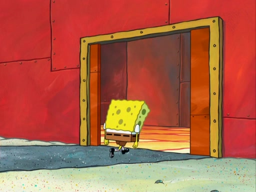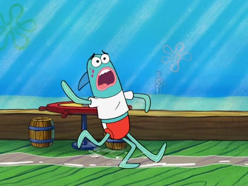 Eventually, SpongeBob catches him and takes Shiny to The Krusty Krab. Then, he went into Mr. Krabs's office and flew everywhere around him. Mr. Krabs was shiny and clean from the bubble soap and told SpongeBob to let Shiny play in the dirty dishes. Then, while SpongeBob was cooking Krabby Patties, Shiny once again gets into mischief by sliding around, and making the Krusty Krab floors slippery. All the customers kept slipping, so Mr. Krabs kicked them out. Then, Shiny flew into the city and got into lots of trouble.