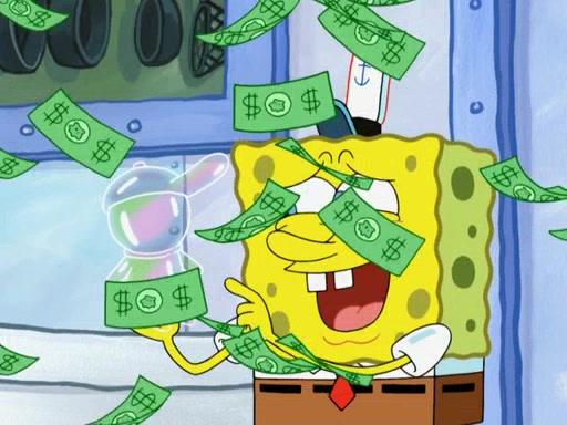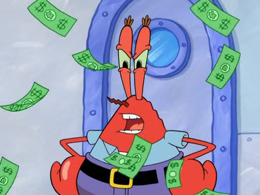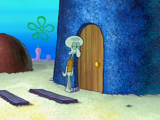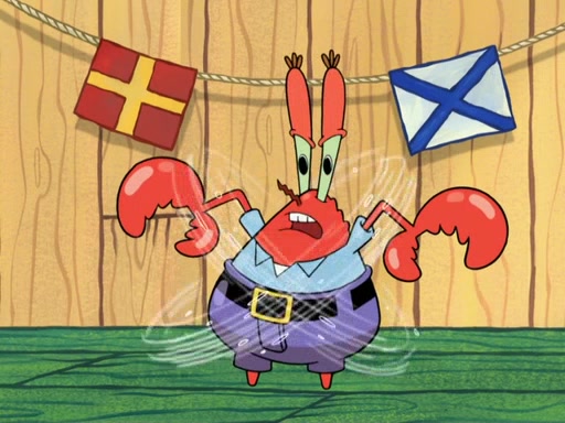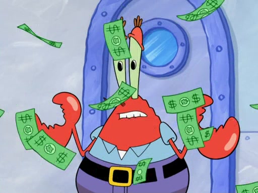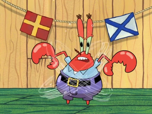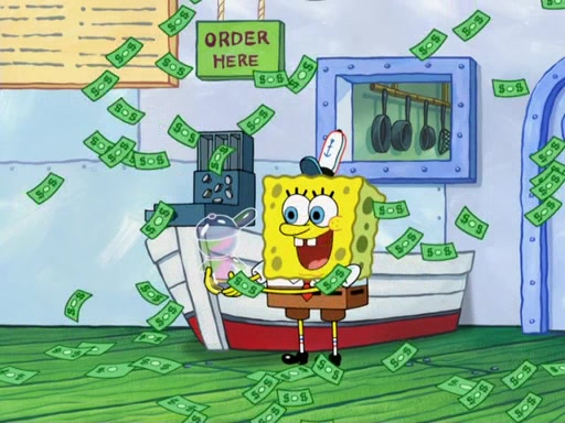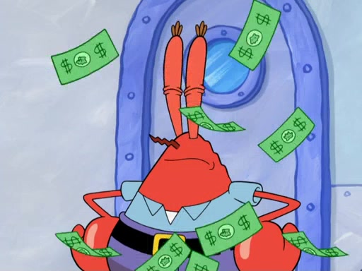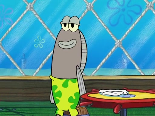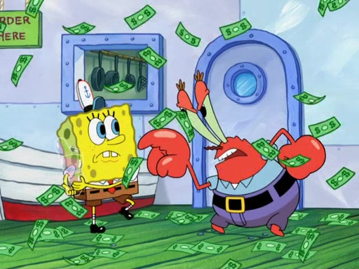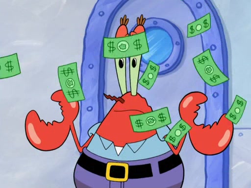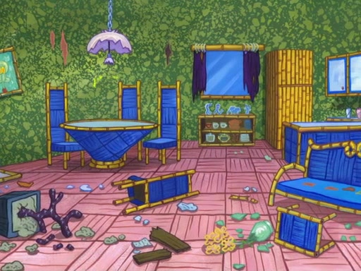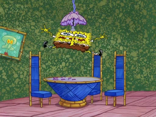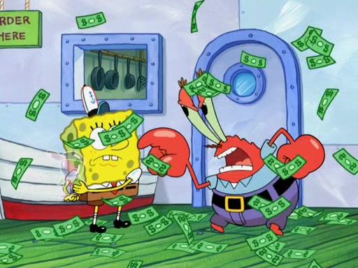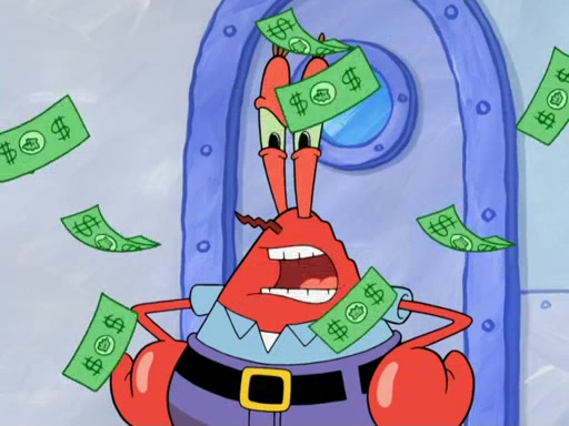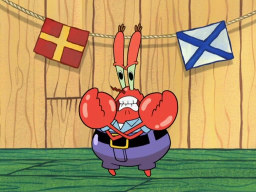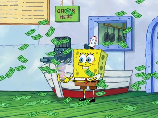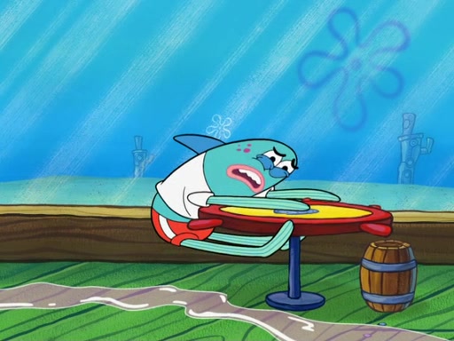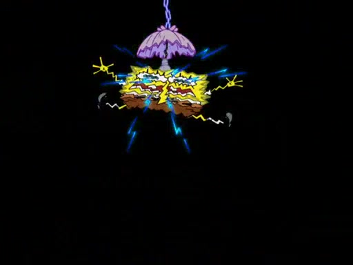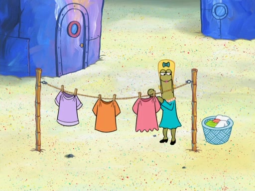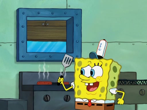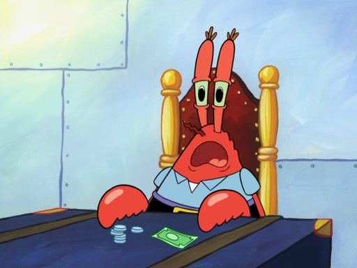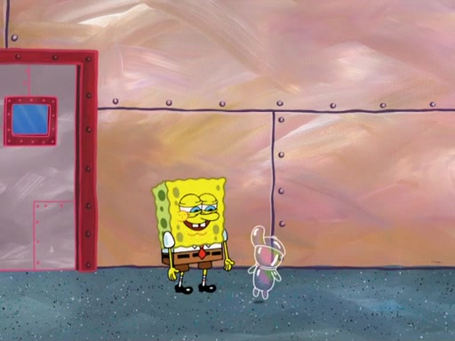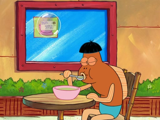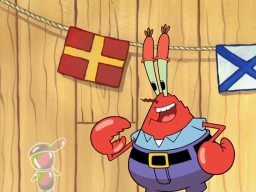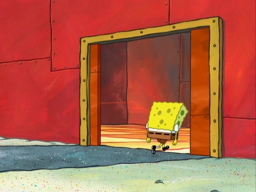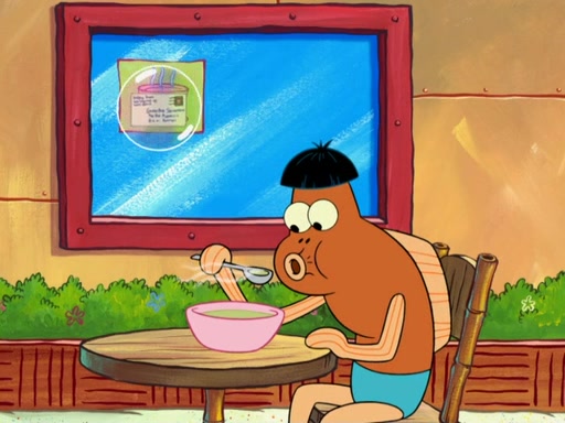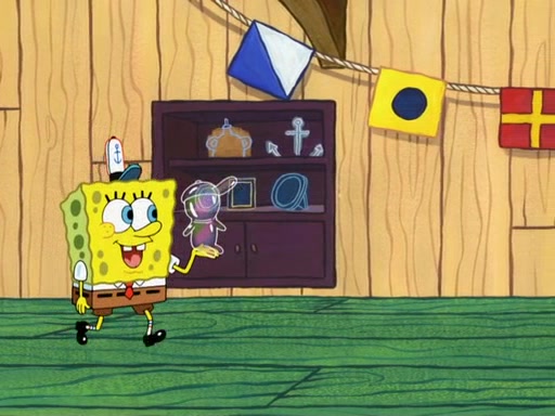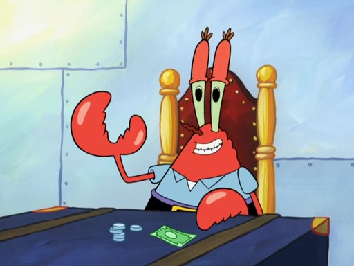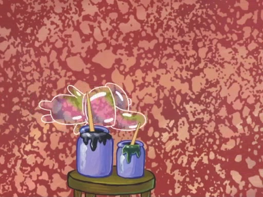 Eventually, SpongeBob catches him and takes Shiny to The Krusty Krab. Then, he went into Mr. Krabs's office and flew everywhere around him. Mr. Krabs was shiny and clean from the bubble soap and told SpongeBob to let Shiny play in the dirty dishes. Then, while SpongeBob was cooking Krabby Patties, Shiny once again gets into mischief by sliding around, and making the Krusty Krab floors slippery. All the customers kept slipping, so Mr. Krabs kicked them out. Then, Shiny flew into the city and got into lots of trouble.