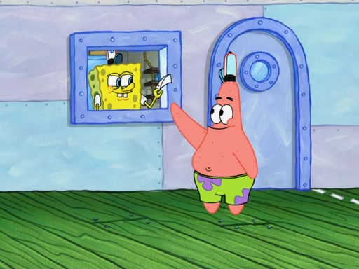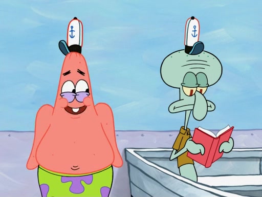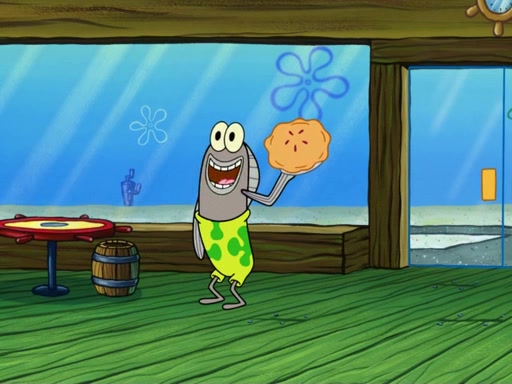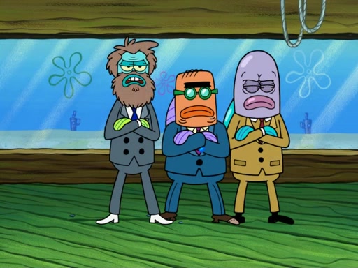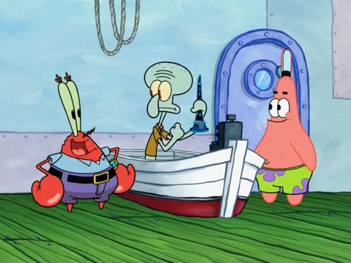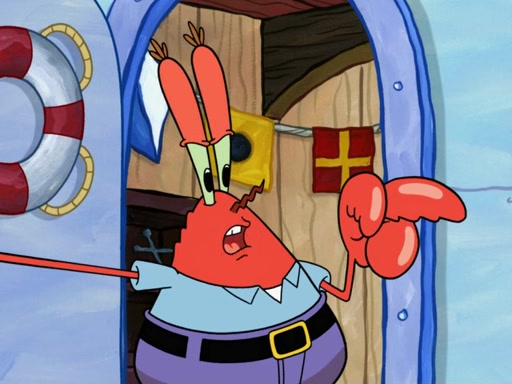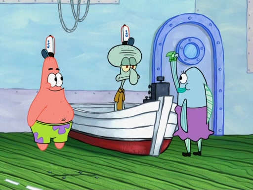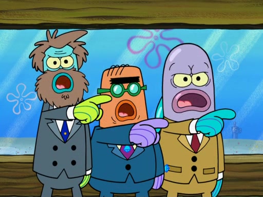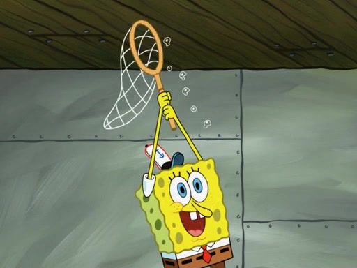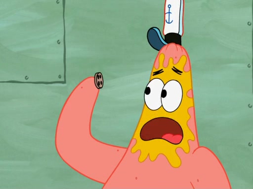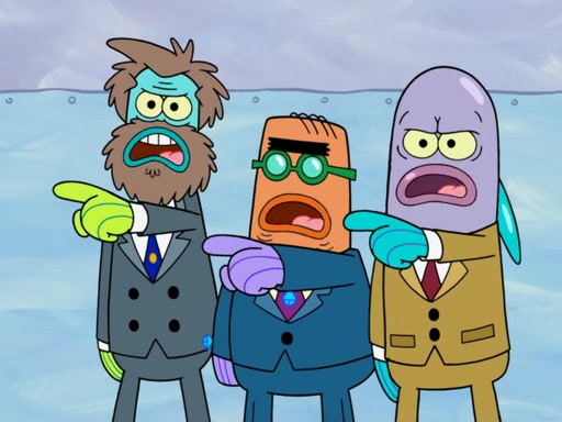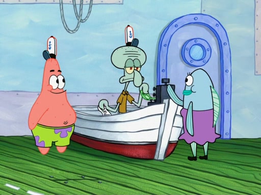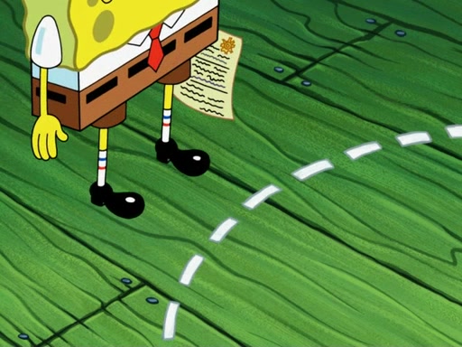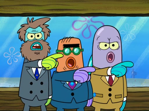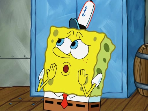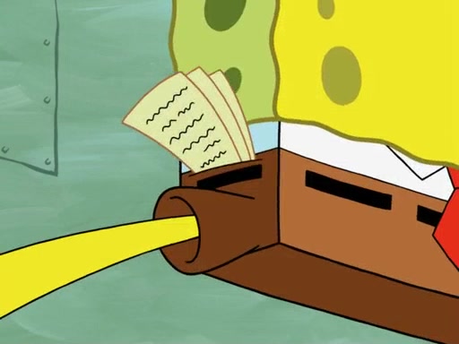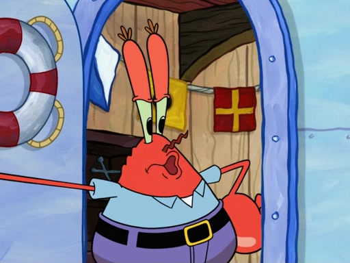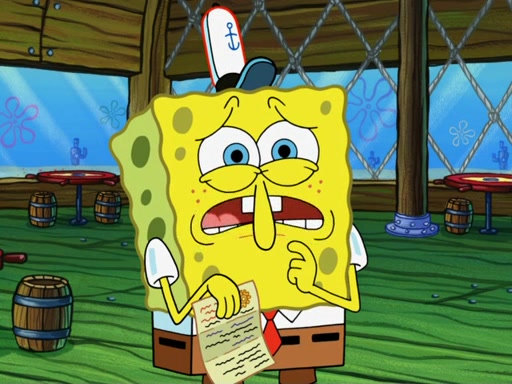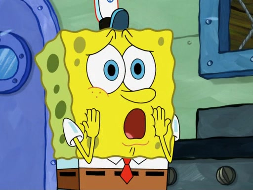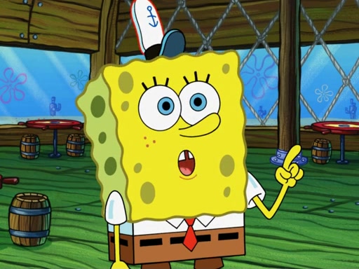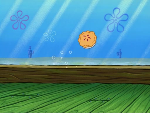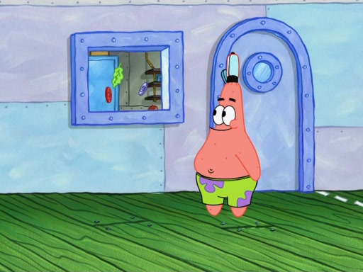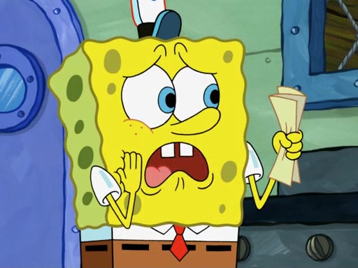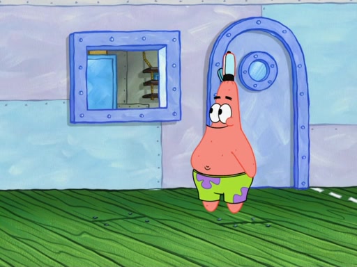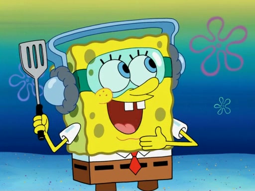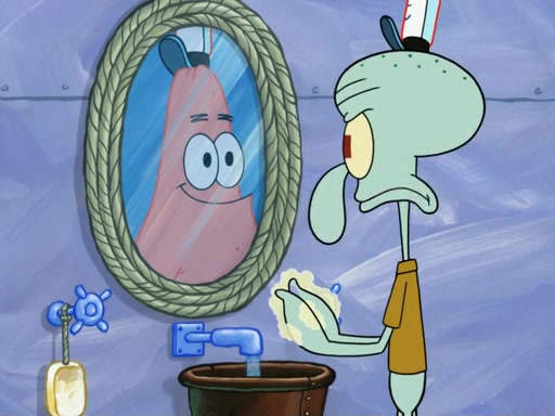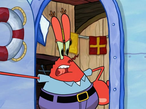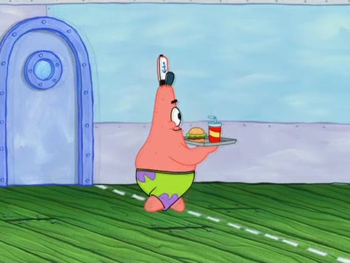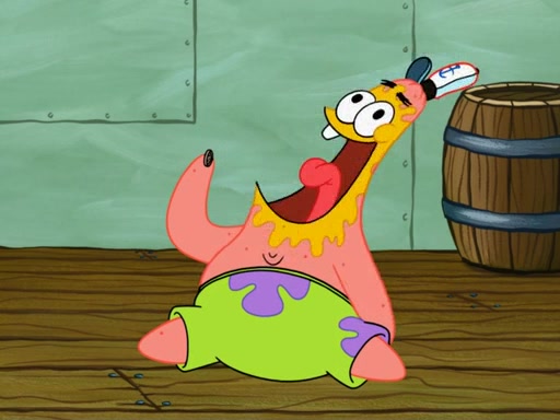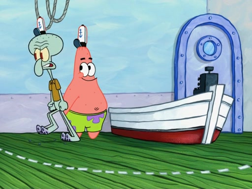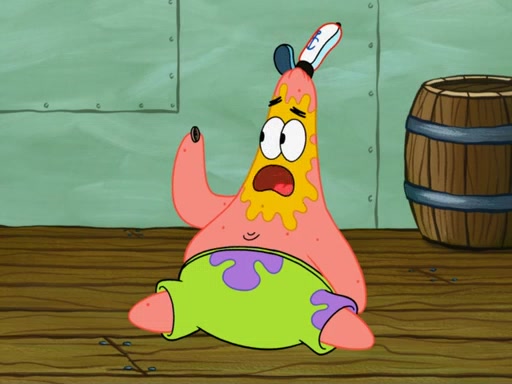 An irritated Squidward enters the kitchen to get it through to SpongeBob. Eventually, he leans on the grill, and accidentally burns his right tentacle. When SpongeBob tries to put the fire out with a bucket of water, he accidentally spills it onto the floor, causing Squidward to slip.