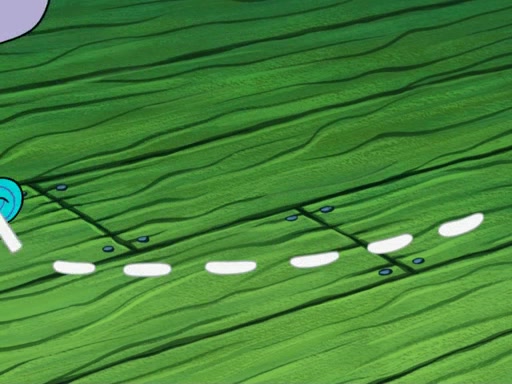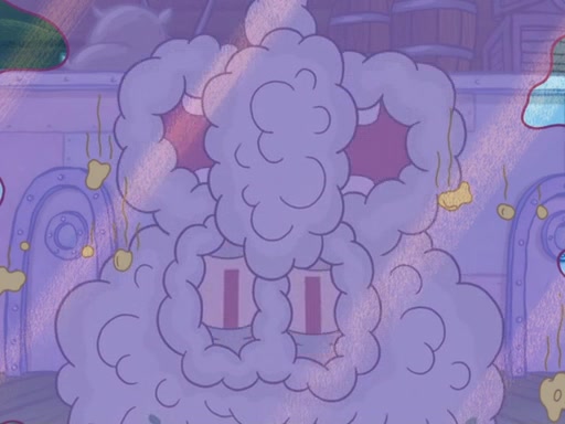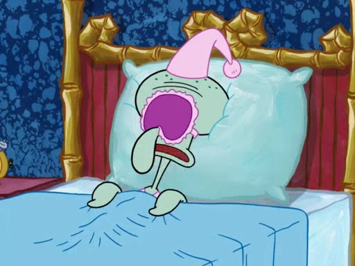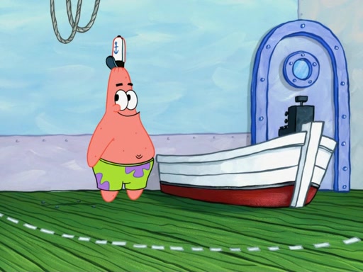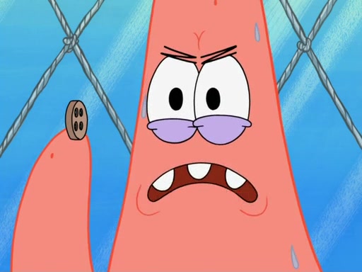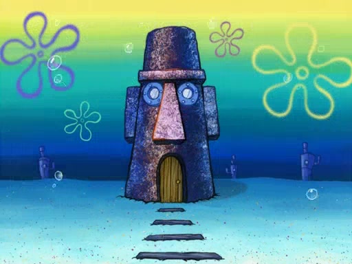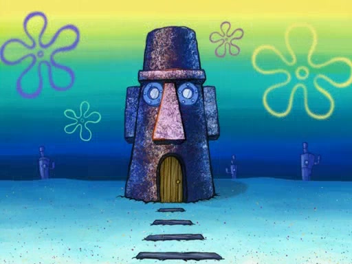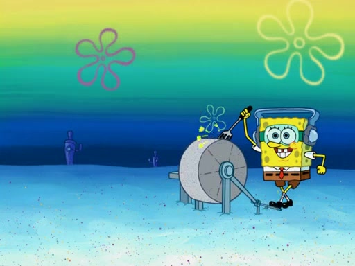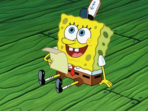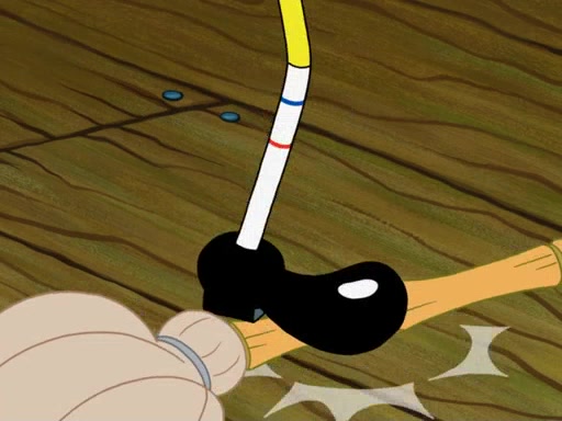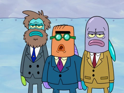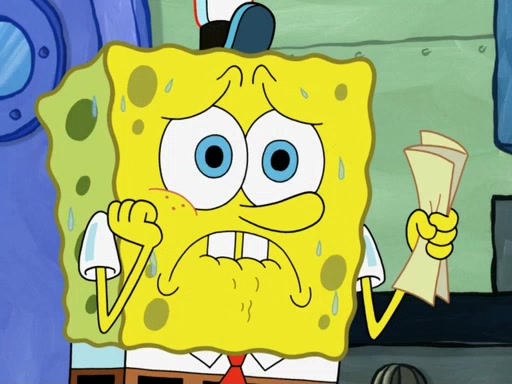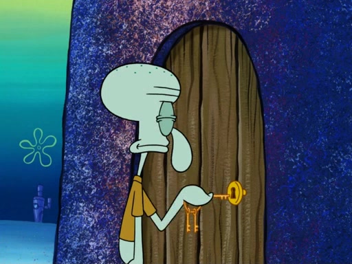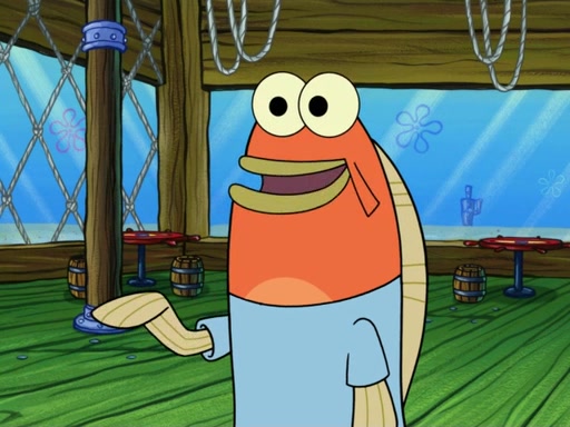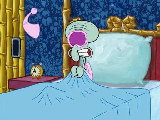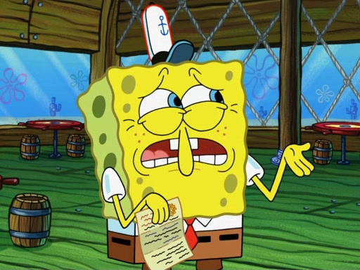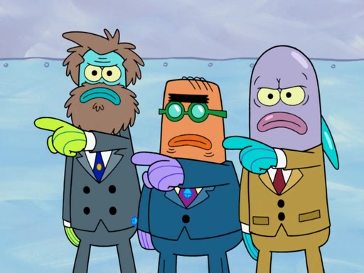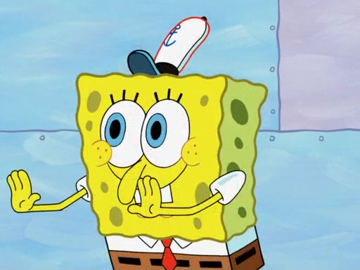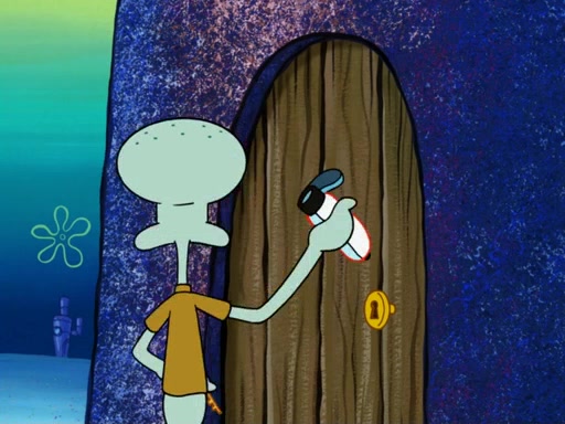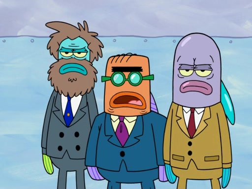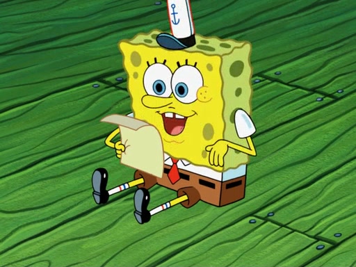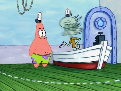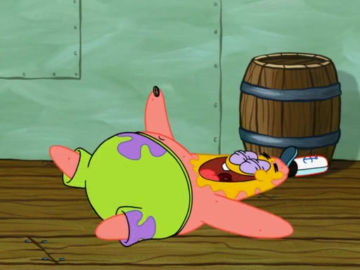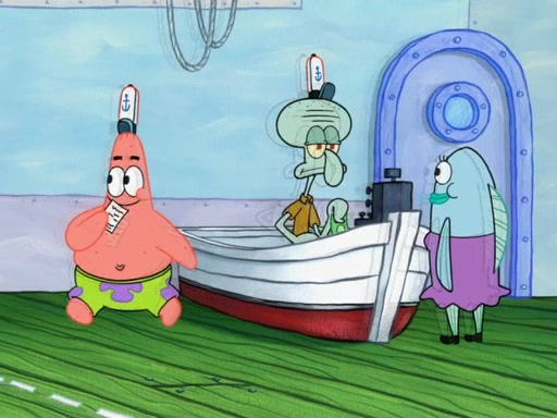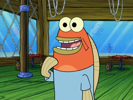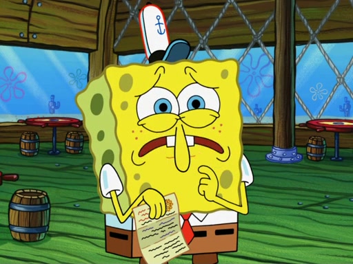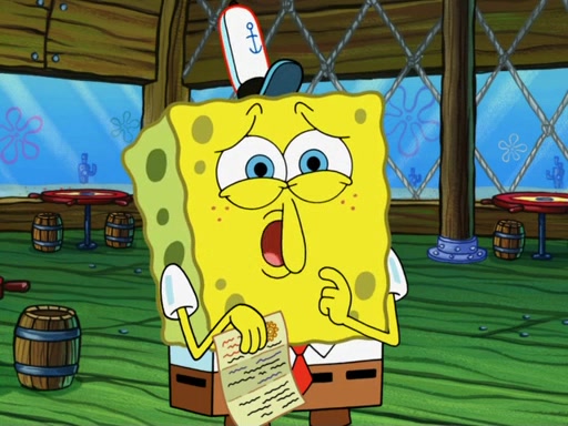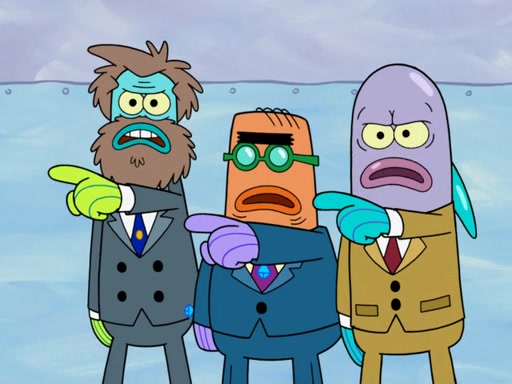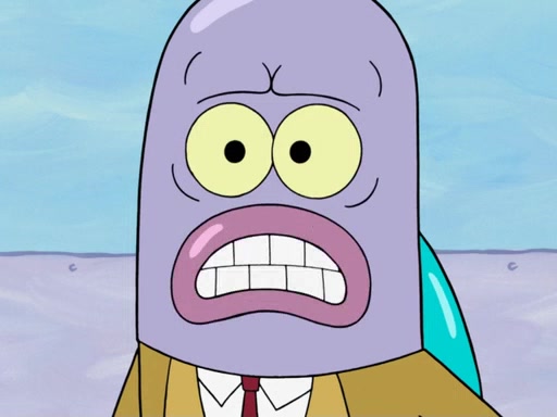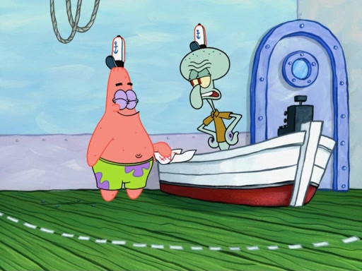 An irritated Squidward enters the kitchen to get it through to SpongeBob. Eventually, he leans on the grill, and accidentally burns his right tentacle. When SpongeBob tries to put the fire out with a bucket of water, he accidentally spills it onto the floor, causing Squidward to slip.