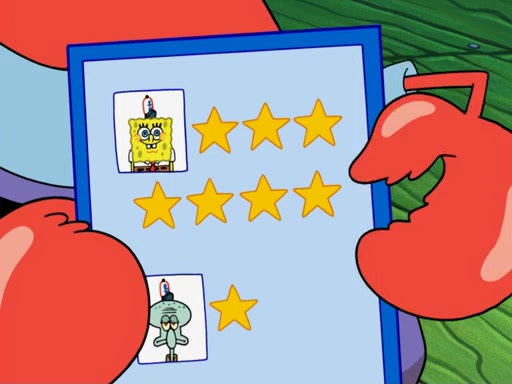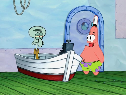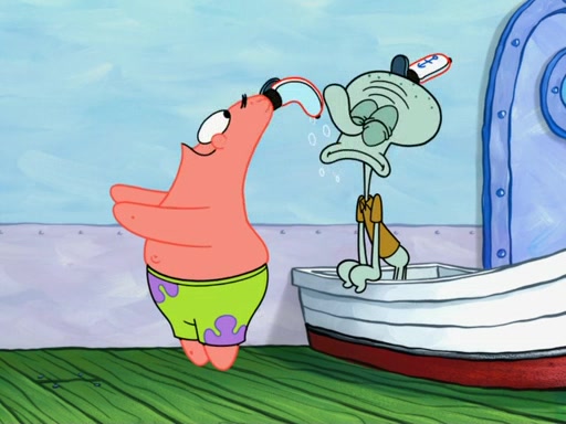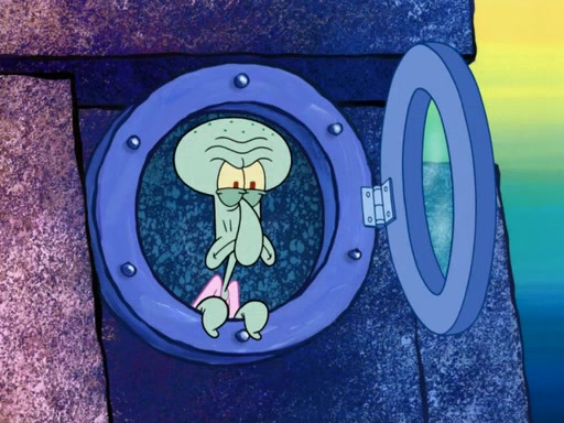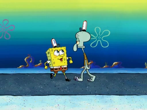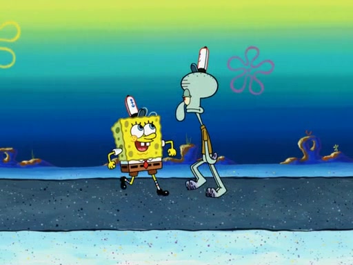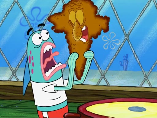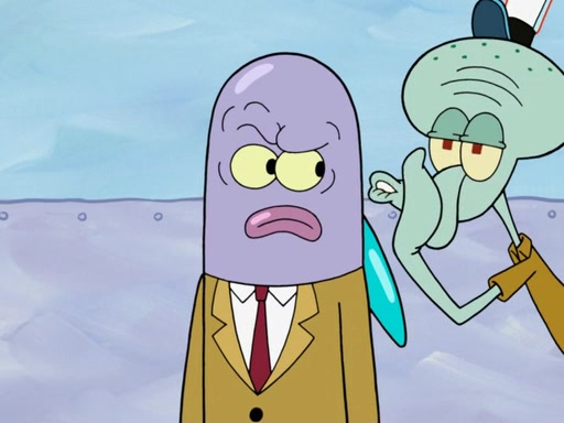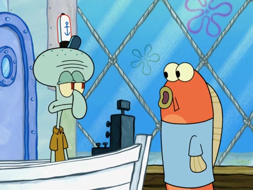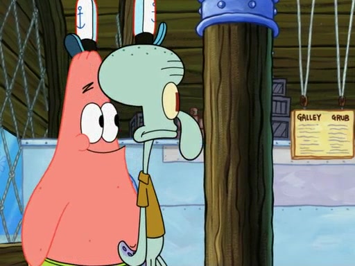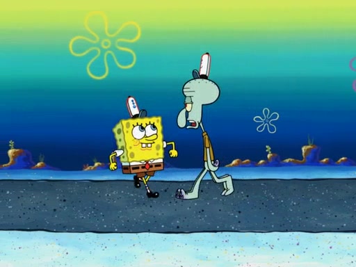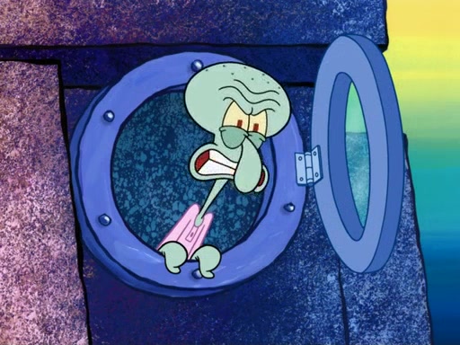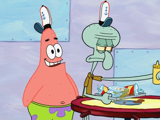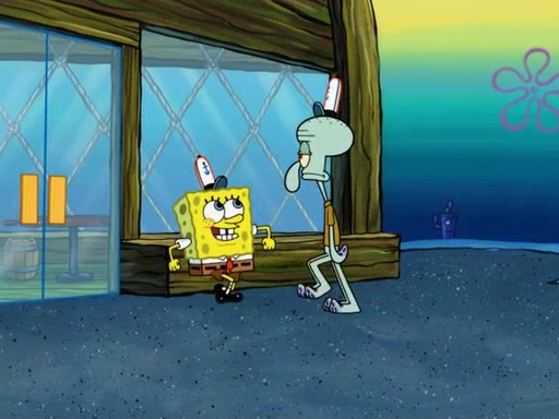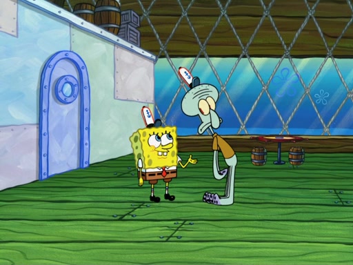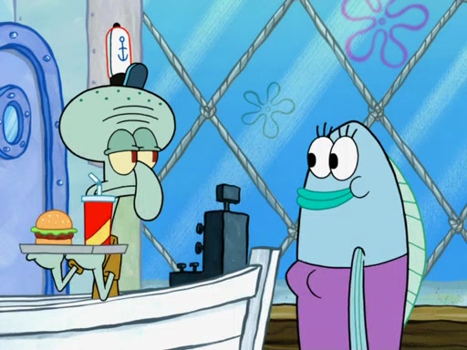 At home, Squidward becomes increasingly annoyed by SpongeBob. As he walks to the Krusty Krab, SpongeBob annoys him by repeatedly asking if he can walk with him. SpongeBob continues to be annoying, especially when he can't seem to figure out the mustard dispenser is empty, with its sound effects causing a patron to think Squidward has a farting problem.
