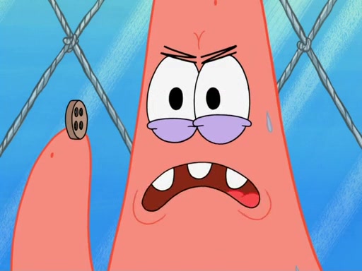 Unfortunately, Patrick asks Squidward if he can watch him work. Squidward says no, but he continues to watch. He soon follows Squidward everywhere, and his stupidity soon gets on Squidward's nerves. Squidward's break arrives and he decides to play his clarinet. He soon finds out that Patrick used it as a toilet plunger. Squidward's break is over and he returns to working. He turns around and his nose gets stuck in Patrick's mouth. Squidward gets flung across the room, which causes him to suffer an allergic reaction when his face is smashed into a seaberry pie. When Squidward enters the kitchen, Patrick mistakes him for a monster and attacks him, thinking he's going to hurt SpongeBob. Seeing his two friends fighting, SpongeBob wants to help, but is afraid of violating the restraining order. His desire to help his friends wins out, and he steps in between them, explaining to Patrick that Squidward is not a monster. Squidward angrily takes the restraining order from SpongeBob, who begs him for mercy. Instead of sending SpongeBob to jail, Squidward crosses out "SpongeBob SquarePants" on the restraining order and replaces it with "Patrick Star." The episode ends with Patrick laughing hysterically.