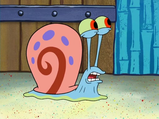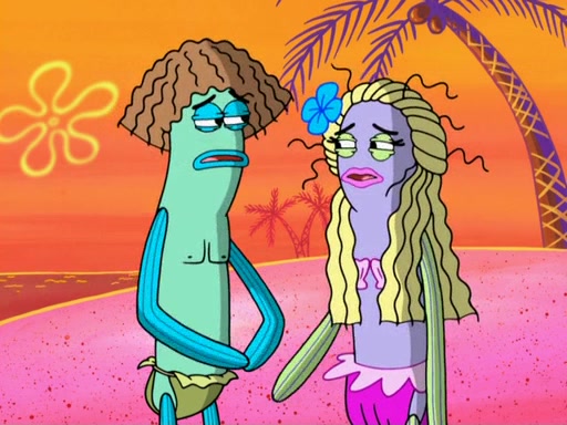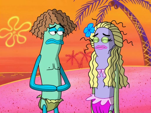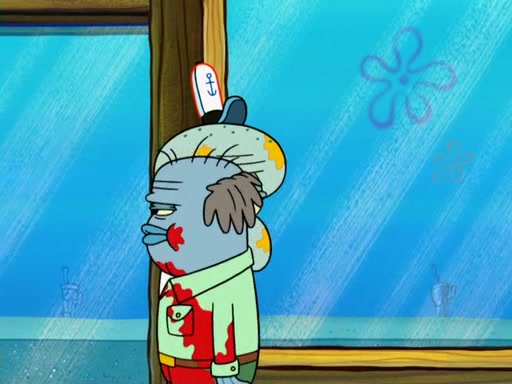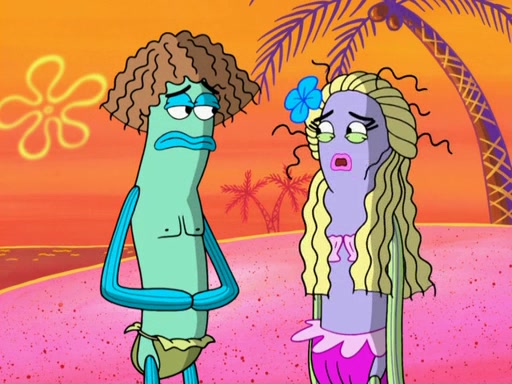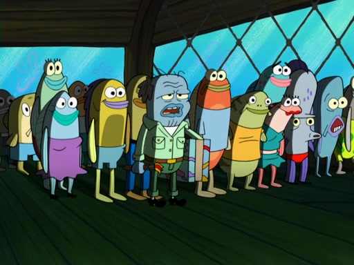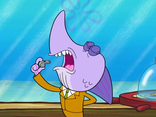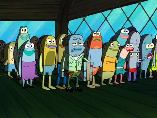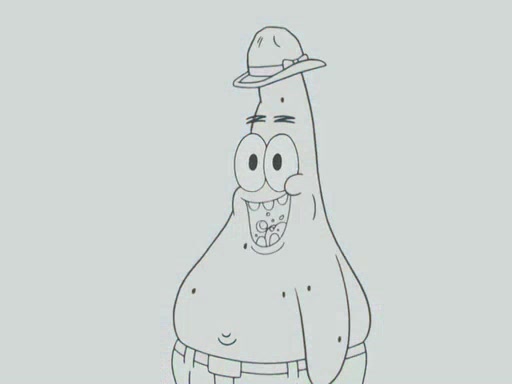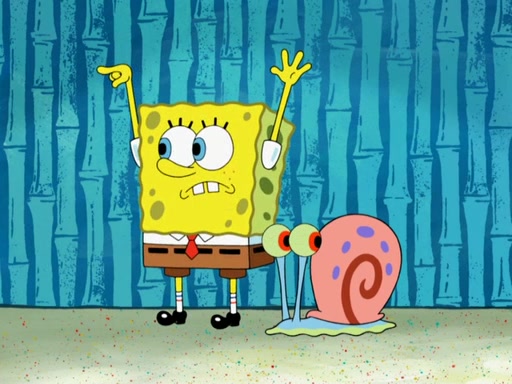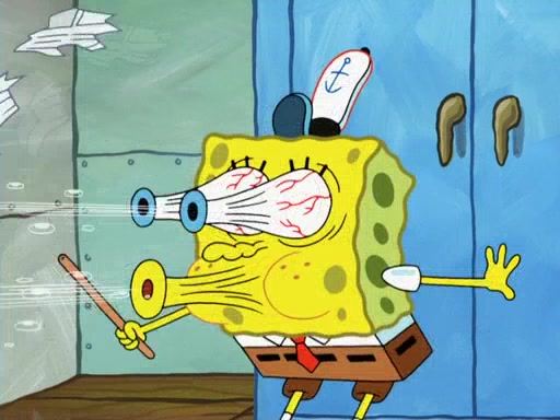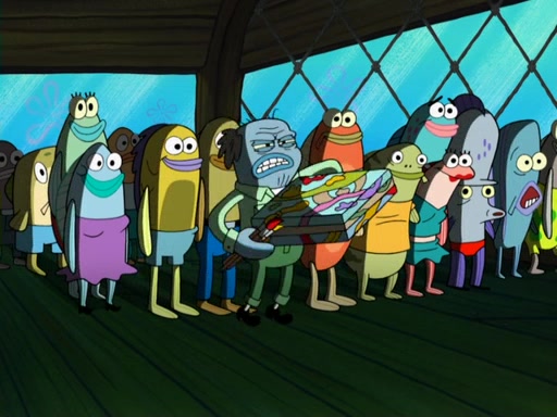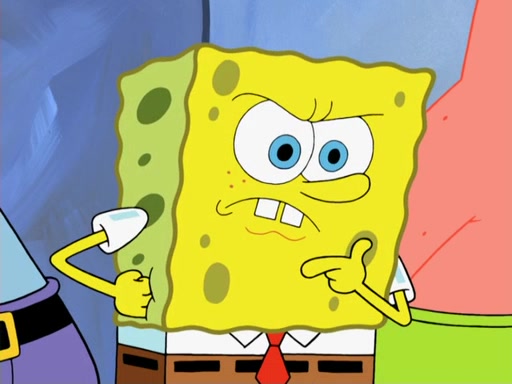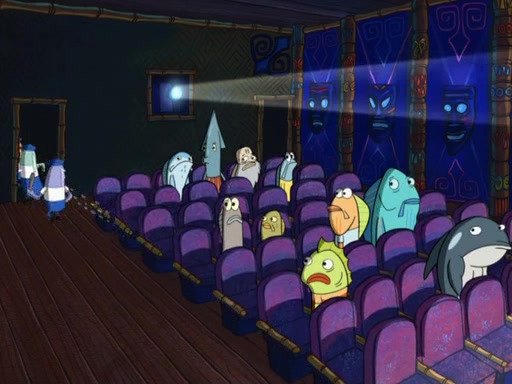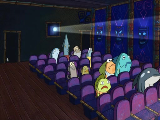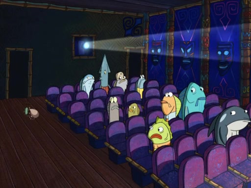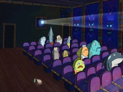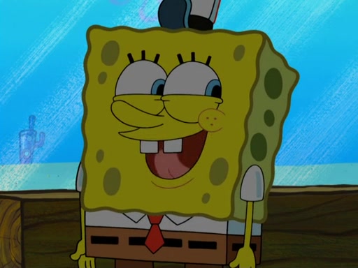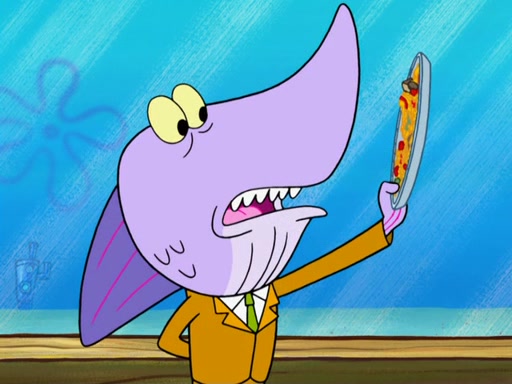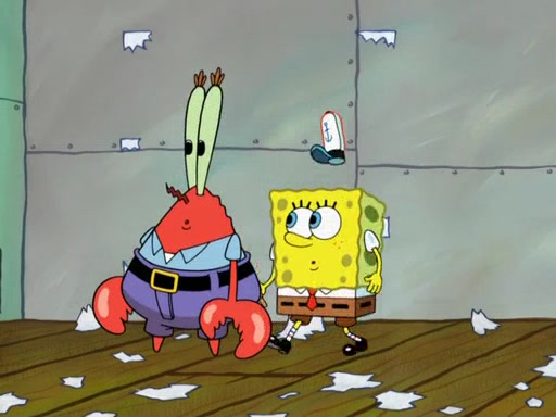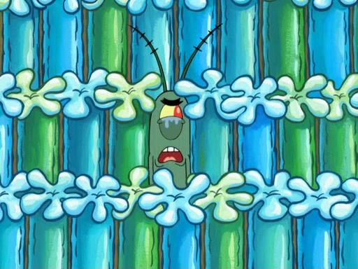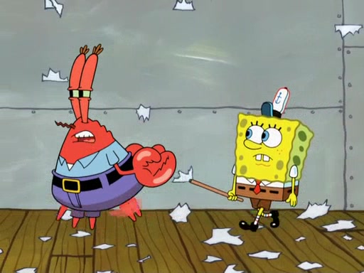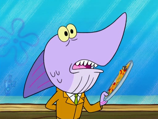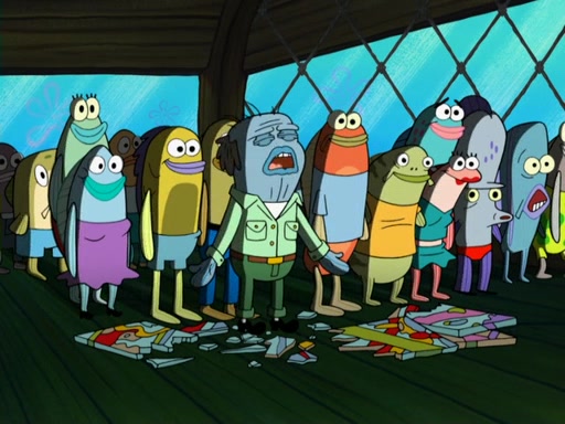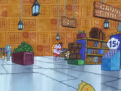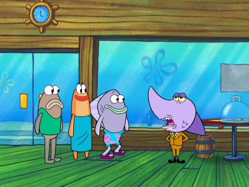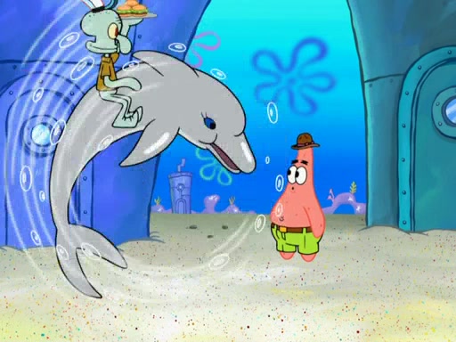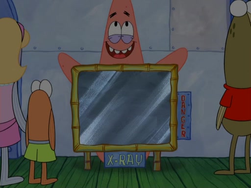 Later, Plankton sees the artwork, and mistakes it for garbage. Planning to reverse-engineer the recipe, he steals it. Police officers immediately chased him. They dog him every step of the way, from a movie theater, a grocery store, and a satellite in space. When he loses them, he is baffled as to why the police are chasing him, rather than Mr. Krabs. At night, he knocks on Patrick's rock, but when Patrick answers, he angrily tells him that he has a busy day of doing nothing tomorrow. Plankton goes to SpongeBob's house, using a spoon to hold SpongeBob and Gary hostage, and demands an explanation as to why the police are after him. SpongeBob explains that what he has stolen is in fact a priceless work of art. Plankton gets the idea to sell the artwork, and declared SpongeBob and Gary to be accomplices to his crime. Patrick comes in, and yells at everyone for making so much noise as to keep him awake, while eating something.