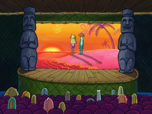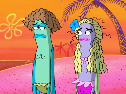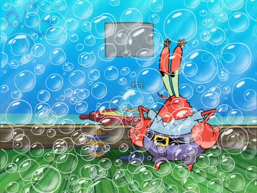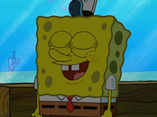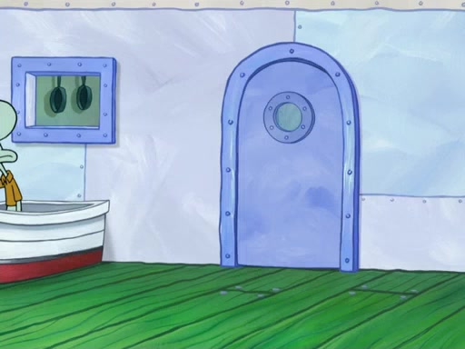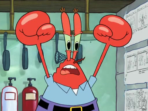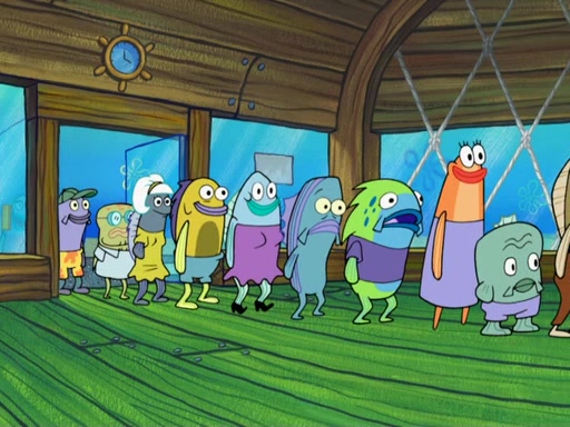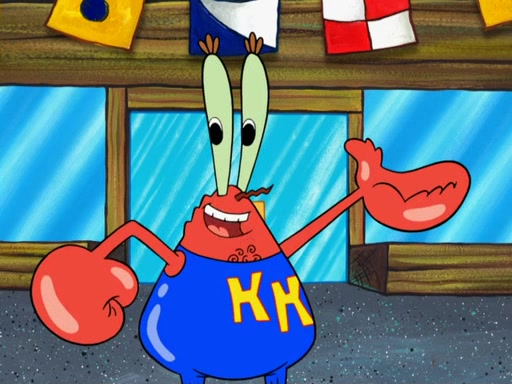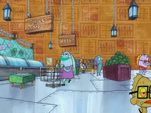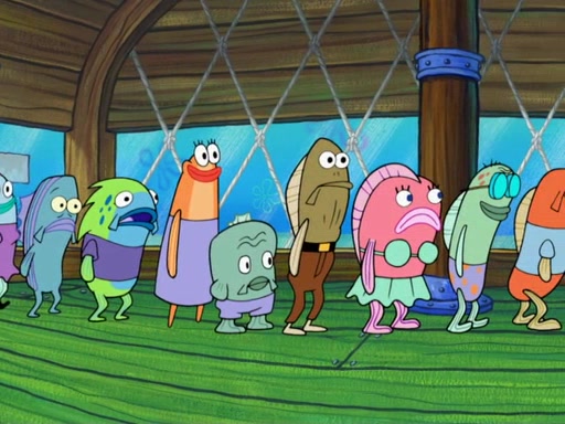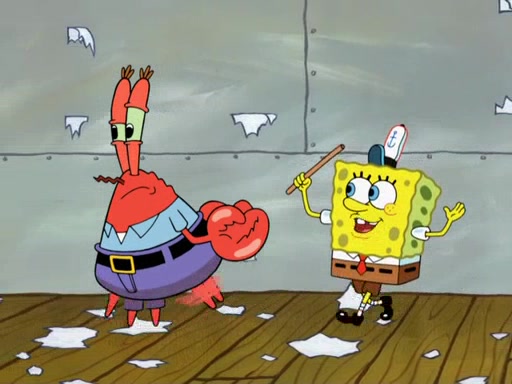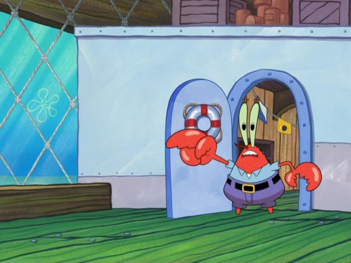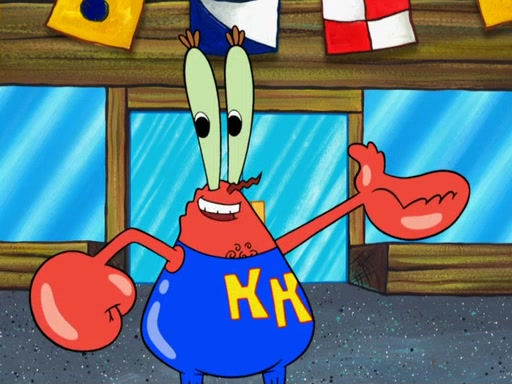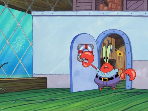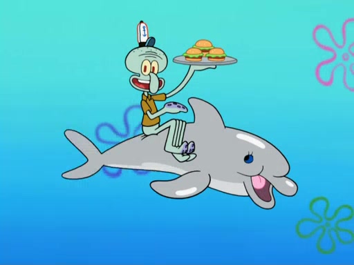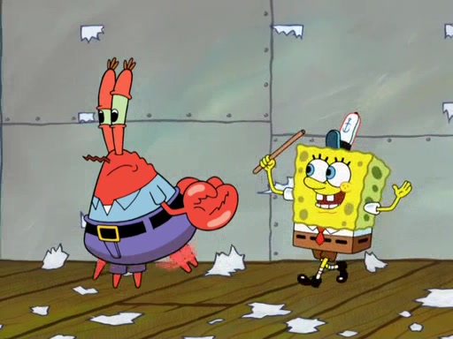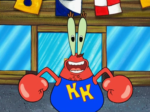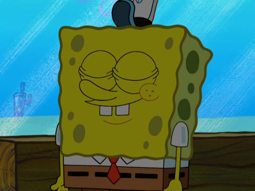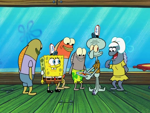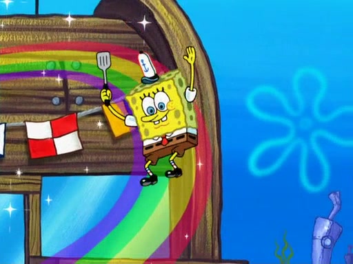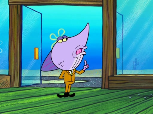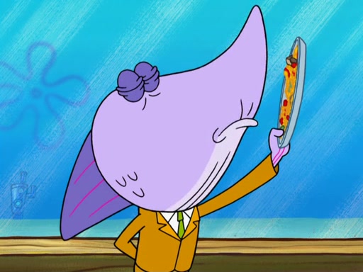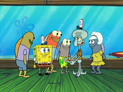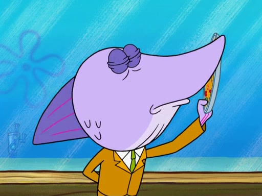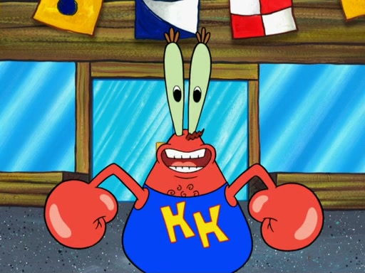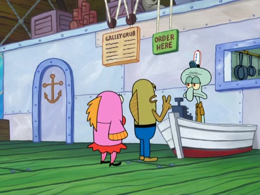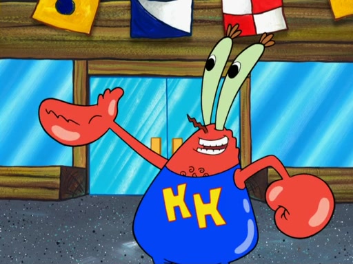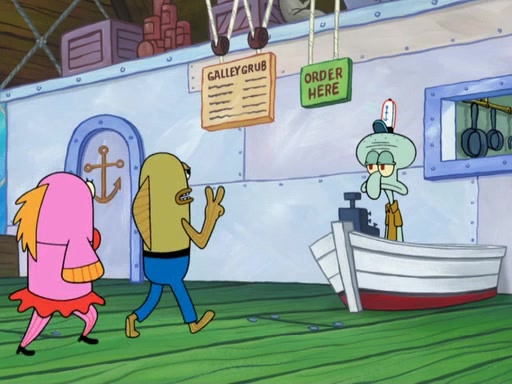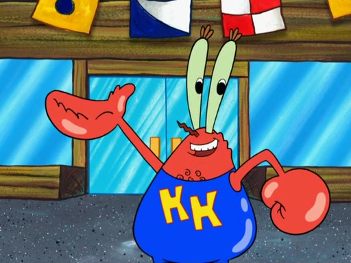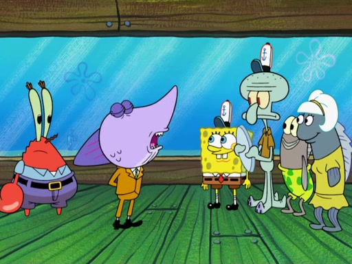 The scene opens up with Patrick, dressed in a business suit, asking where he can get something to eat. Squidward walks in, and tells him the answer is before him: the Krusty Krab. Mr. Krabs, dressed in a leotard, jumps out of the Krusty Krab, and SpongeBob slides down a rainbow to his side, and Squidward, who rides a dolphin while holding a plate with Krabby Patties, which Patrick eats. Suddenly, SpongeBob describes Patrick's actions, then the scene turns to him and Mr. Krabs in front of a storyboard planned for a commercial. Mr. Krabs asks why he is in a leotard, and he says it is because he is the mascot. Mr. Krabs does not like this, so he tears up the storyboard, telling him he needs a "masterpiece". Sad, SpongeBob walks to Squidward's counter, sighing. When Squidward ignores him, he sighs repeatedly, each sigh more drawn-out than the one before, until Squidward gets so annoyed that he asks what is troubling him. He tells him about his problems, but Squidward does not care. As he walks into the dining area, Squidward notices a patron squirting ketchup onto a pile of Krabby Patties.