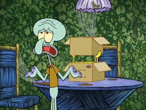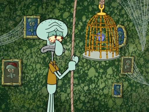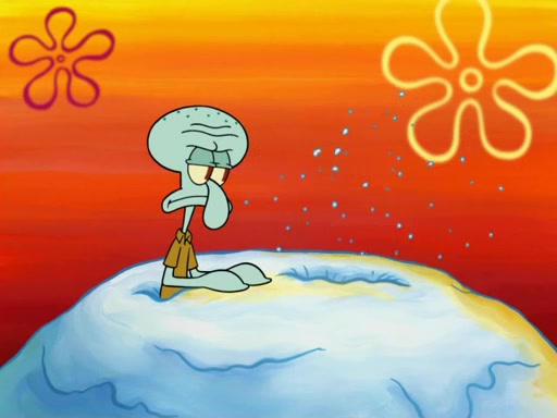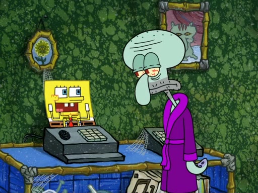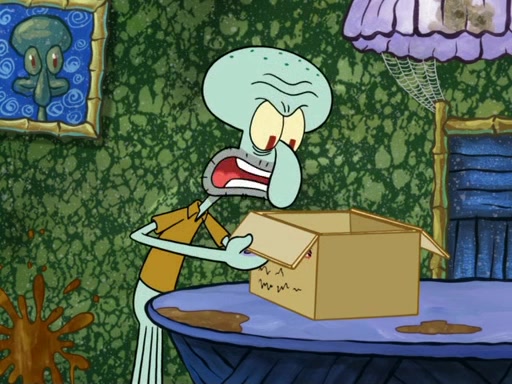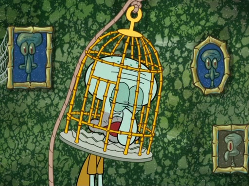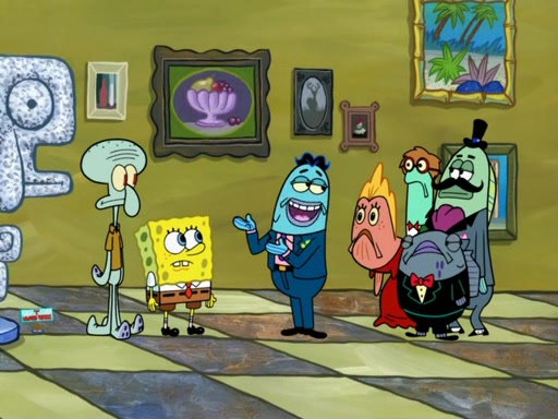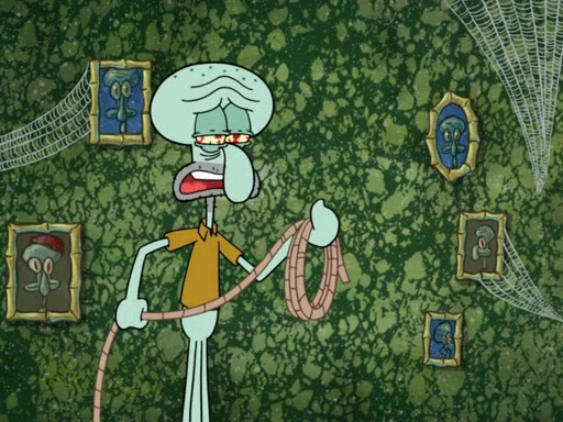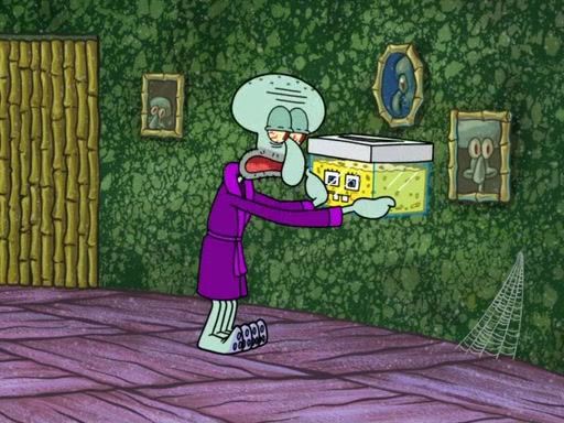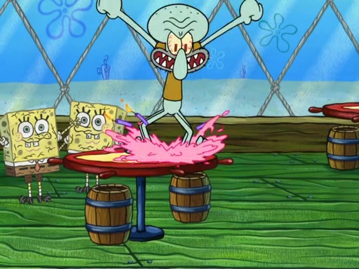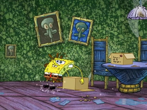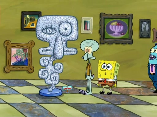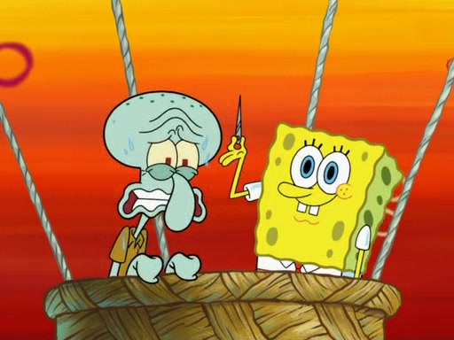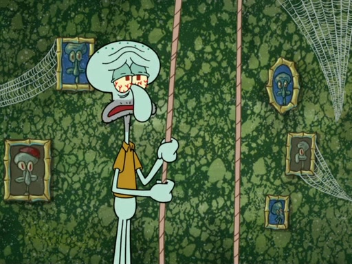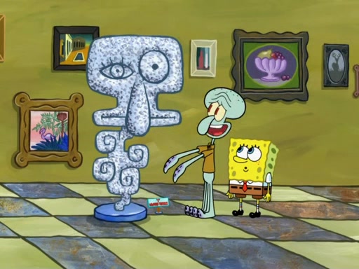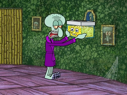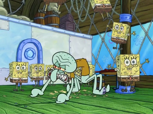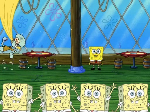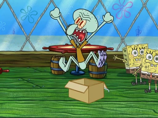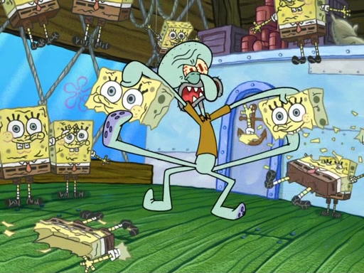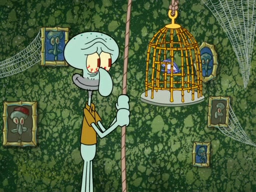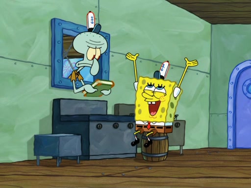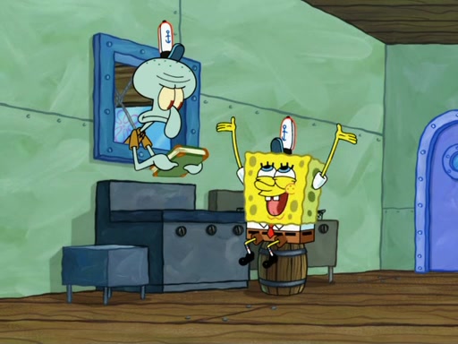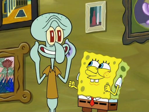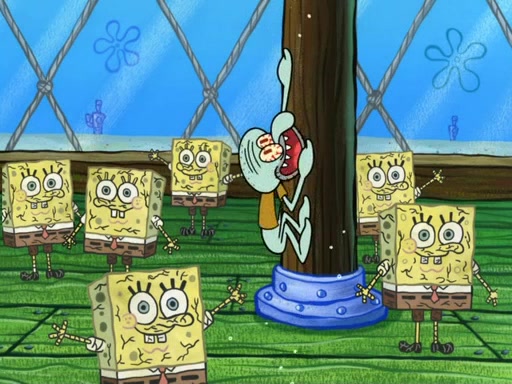 On a fine day at the Krusty Krab, Patrick is behind the restaurant climbing out of a dumpster eating a Krabby Patty. The camera then pans over to SpongeBob, showing him reading the "Krusty Krab Schedule" book, much to Squidward being annoyed. SpongeBob then claims that the book has a list of "his happiest memories." Squidward takes the book and "accidentally" drops it on the grill. However, SpongeBob has multiple copies of the book in a cabinet, which he proceeds to get one. SpongeBob then asks Squidward if he has a happiest memory, in which he replies, "No." Feeling concerned, SpongeBob tries to ask Squidward if he can help make a happiest memory for him, which he accepts. First, SpongeBob takes Squidward to a concert. That did not go well, however, since the violin player accidentally shot Squidward in the eye with the violin bow. Then, both of them head to the Bikini Bottom Museum. One of Squidward's masterpieces is in the museum, which is praised by critics. Squidward is happy until a famous art critic named Fiasco burns his artwork with a flamethrower. In addition, after that, SpongeBob takes Squidward on a hot air balloon ride. That doesn't go well, since Squidward is afraid of heights, so SpongeBob tries to get Squidward down by popping the balloon (because the balloon has no heater to make it deflate) and both of them land on a mountain which is actually Mount Bikini, ruining Harold's chance to be the first one on the mountain. Then, SpongeBob, Squidward, and Harold slide off the mountain due to an avalanche. When SpongeBob and Squidward slide back to their homes, Squidward insists that he will never have a happiest memory. Two weeks later, Squidward is left in his house doing nothing but being unhappy. SpongeBob then becomes even more concerned for Squidward and tries to get ahold of him, but fails. He then traps Squidward in a box, and takes him to the Krusty Krab, where he reveals that he created a party to cheer Squidward up. Unfortunately, SpongeBob failed to get anyone else to come, because some of them were busy or sick, so instead he made 100 paper-mâché life-sized models of himself. Squidward hates seeing more than one sculpture of SpongeBob in one place so he goes berserk, destroys all the paper-mâché sculptures, and claims this to be his "happiest memory."
