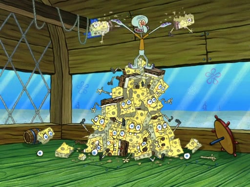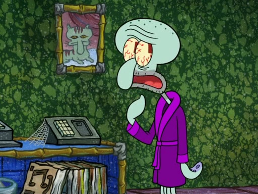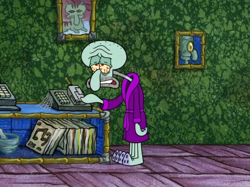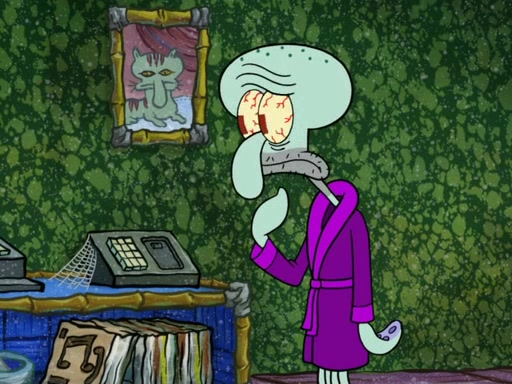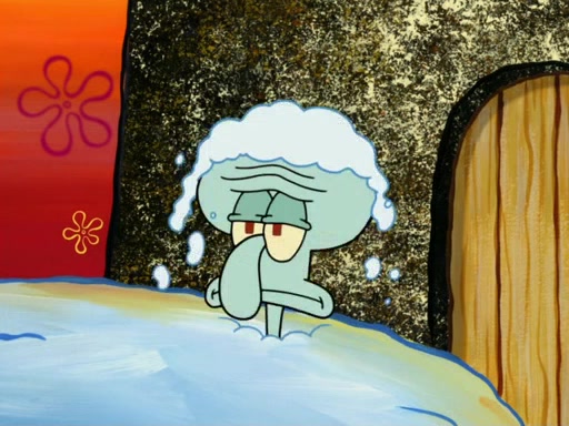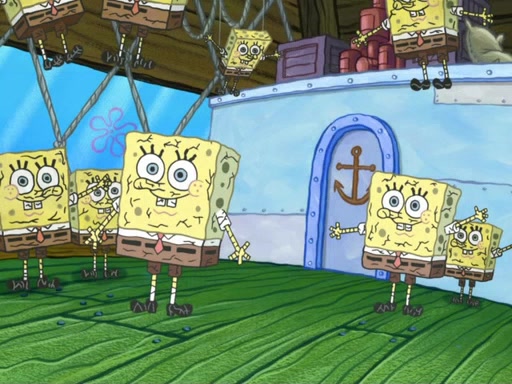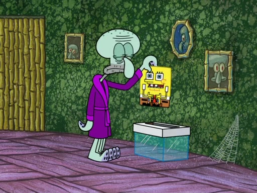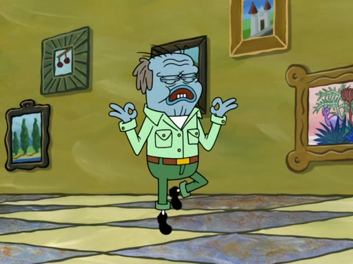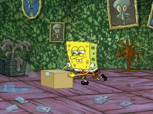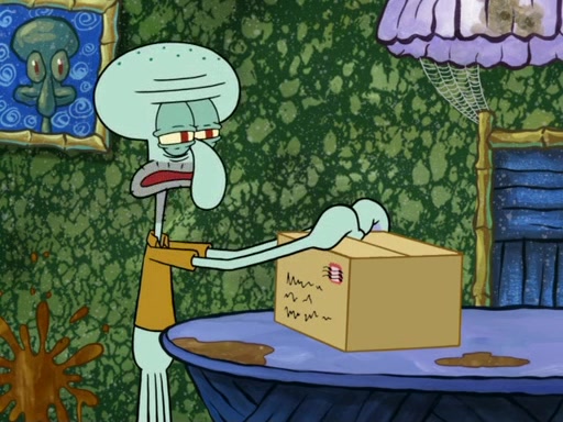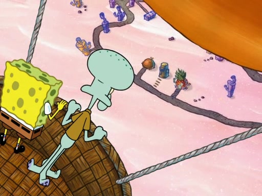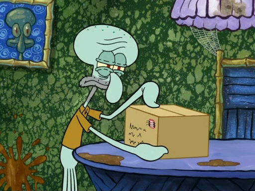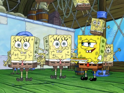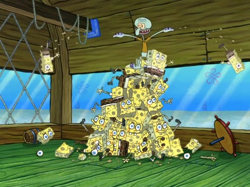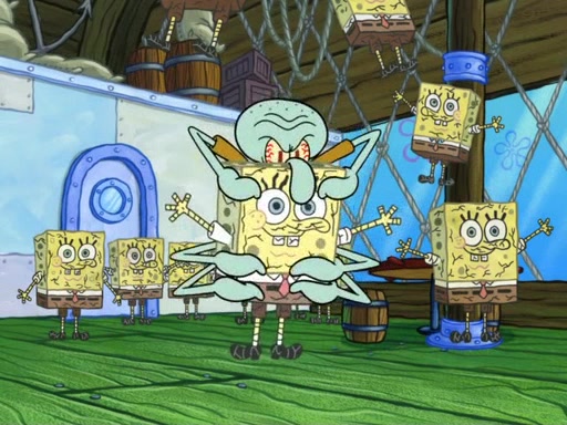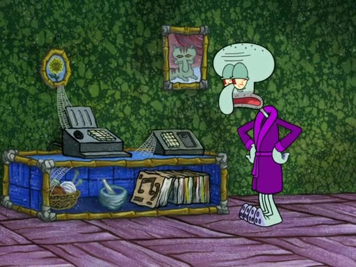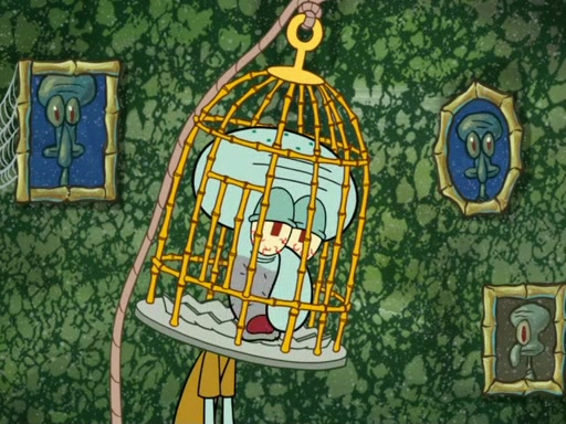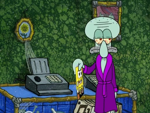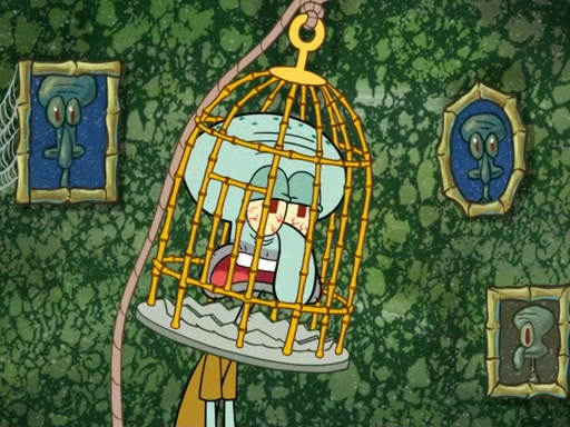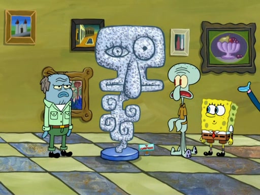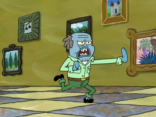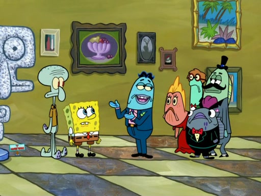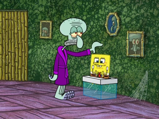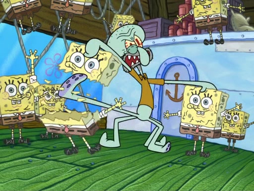 On a fine day at the Krusty Krab, Patrick is behind the restaurant climbing out of a dumpster eating a Krabby Patty. The camera then pans over to SpongeBob, showing him reading the "Krusty Krab Schedule" book, much to Squidward being annoyed. SpongeBob then claims that the book has a list of "his happiest memories." Squidward takes the book and "accidentally" drops it on the grill. However, SpongeBob has multiple copies of the book in a cabinet, which he proceeds to get one. SpongeBob then asks Squidward if he has a happiest memory, in which he replies, "No." Feeling concerned, SpongeBob tries to ask Squidward if he can help make a happiest memory for him, which he accepts. First, SpongeBob takes Squidward to a concert. That did not go well, however, since the violin player accidentally shot Squidward in the eye with the violin bow. Then, both of them head to the Bikini Bottom Museum. One of Squidward's masterpieces is in the museum, which is praised by critics. Squidward is happy until a famous art critic named Fiasco burns his artwork with a flamethrower. In addition, after that, SpongeBob takes Squidward on a hot air balloon ride. That doesn't go well, since Squidward is afraid of heights, so SpongeBob tries to get Squidward down by popping the balloon (because the balloon has no heater to make it deflate) and both of them land on a mountain which is actually Mount Bikini, ruining Harold's chance to be the first one on the mountain. Then, SpongeBob, Squidward, and Harold slide off the mountain due to an avalanche. When SpongeBob and Squidward slide back to their homes, Squidward insists that he will never have a happiest memory. Two weeks later, Squidward is left in his house doing nothing but being unhappy. SpongeBob then becomes even more concerned for Squidward and tries to get ahold of him, but fails. He then traps Squidward in a box, and takes him to the Krusty Krab, where he reveals that he created a party to cheer Squidward up. Unfortunately, SpongeBob failed to get anyone else to come, because some of them were busy or sick, so instead he made 100 paper-mâché life-sized models of himself. Squidward hates seeing more than one sculpture of SpongeBob in one place so he goes berserk, destroys all the paper-mâché sculptures, and claims this to be his "happiest memory."