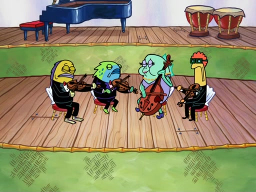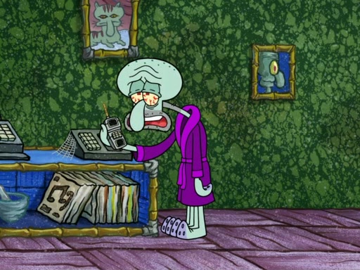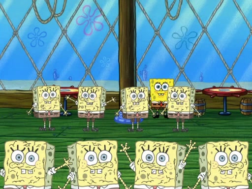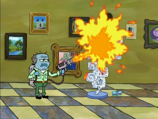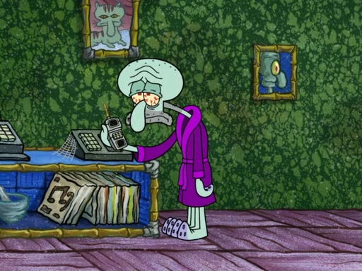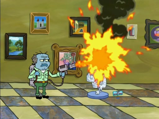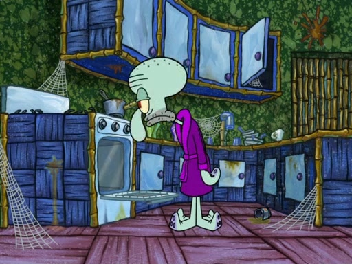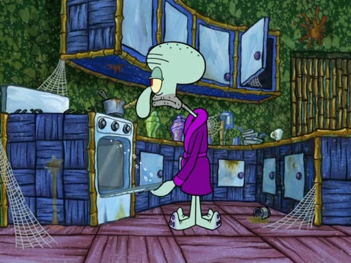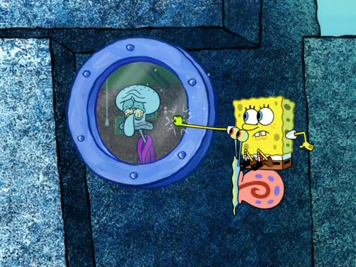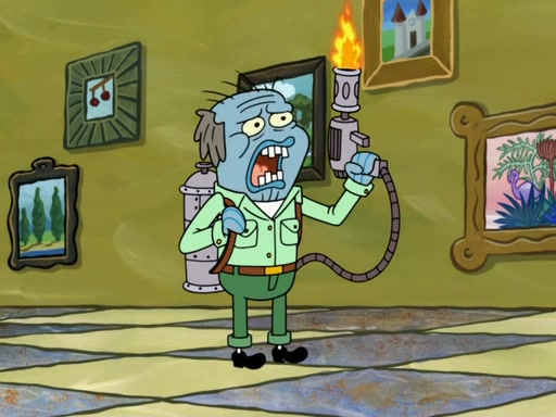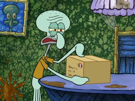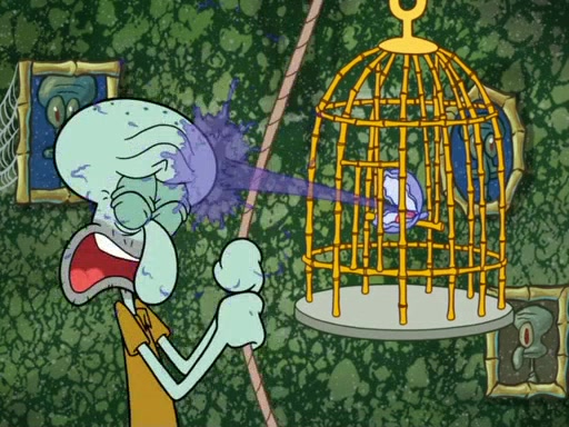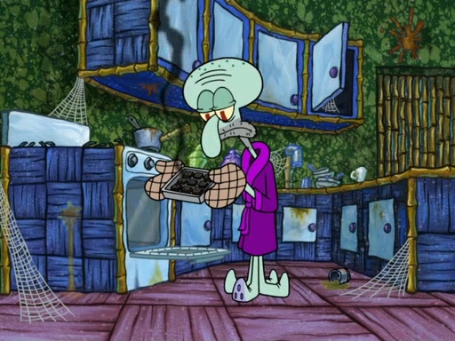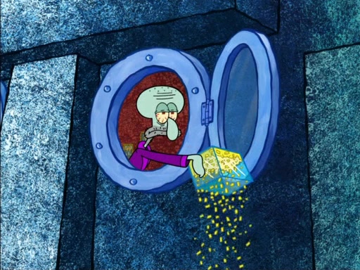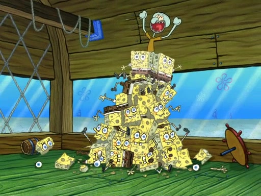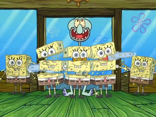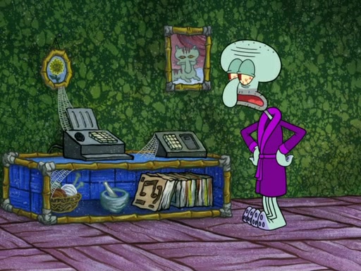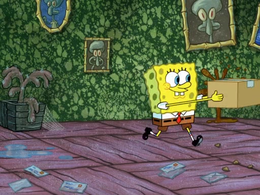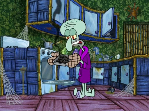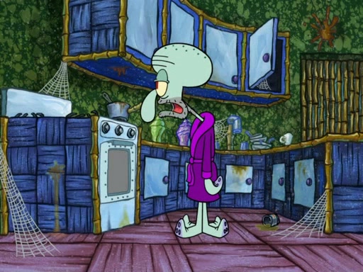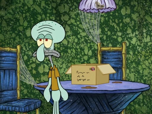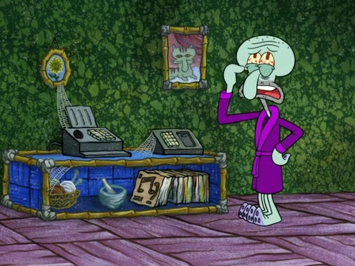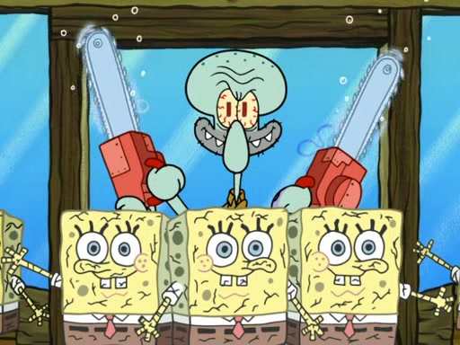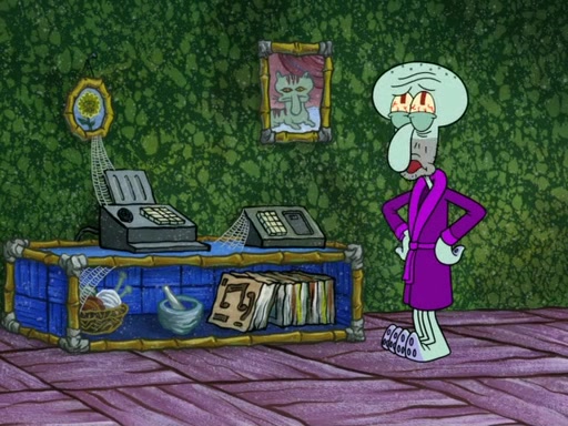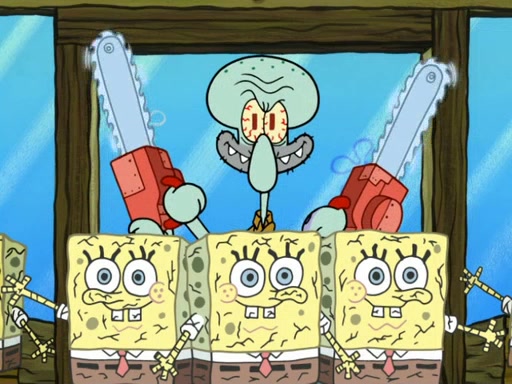 On a fine day at the Krusty Krab, Patrick is behind the restaurant climbing out of a dumpster eating a Krabby Patty. The camera then pans over to SpongeBob, showing him reading the "Krusty Krab Schedule" book, much to Squidward being annoyed. SpongeBob then claims that the book has a list of "his happiest memories." Squidward takes the book and "accidentally" drops it on the grill. However, SpongeBob has multiple copies of the book in a cabinet, which he proceeds to get one. SpongeBob then asks Squidward if he has a happiest memory, in which he replies, "No." Feeling concerned, SpongeBob tries to ask Squidward if he can help make a happiest memory for him, which he accepts. First, SpongeBob takes Squidward to a concert. That did not go well, however, since the violin player accidentally shot Squidward in the eye with the violin bow. Then, both of them head to the Bikini Bottom Museum. One of Squidward's masterpieces is in the museum, which is praised by critics. Squidward is happy until a famous art critic named Fiasco burns his artwork with a flamethrower. In addition, after that, SpongeBob takes Squidward on a hot air balloon ride. That doesn't go well, since Squidward is afraid of heights, so SpongeBob tries to get Squidward down by popping the balloon (because the balloon has no heater to make it deflate) and both of them land on a mountain which is actually Mount Bikini, ruining Harold's chance to be the first one on the mountain. Then, SpongeBob, Squidward, and Harold slide off the mountain due to an avalanche. When SpongeBob and Squidward slide back to their homes, Squidward insists that he will never have a happiest memory. Two weeks later, Squidward is left in his house doing nothing but being unhappy. SpongeBob then becomes even more concerned for Squidward and tries to get ahold of him, but fails. He then traps Squidward in a box, and takes him to the Krusty Krab, where he reveals that he created a party to cheer Squidward up. Unfortunately, SpongeBob failed to get anyone else to come, because some of them were busy or sick, so instead he made 100 paper-mâché life-sized models of himself. Squidward hates seeing more than one sculpture of SpongeBob in one place so he goes berserk, destroys all the paper-mâché sculptures, and claims this to be his "happiest memory."
