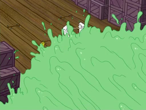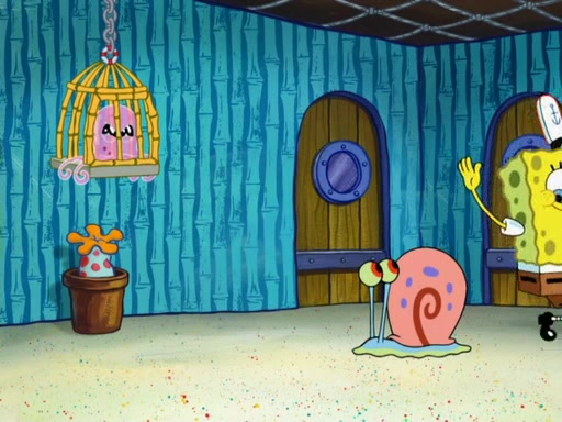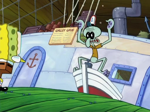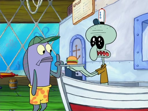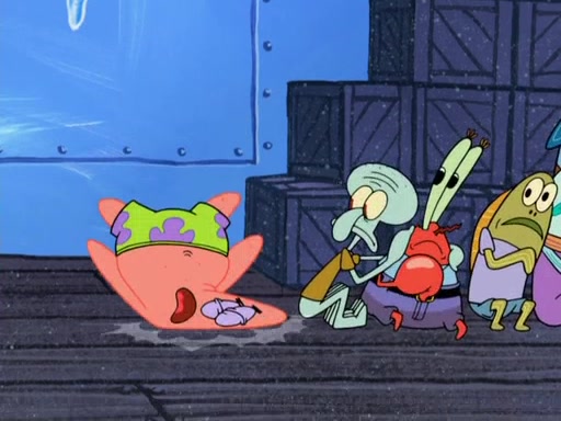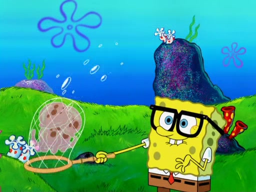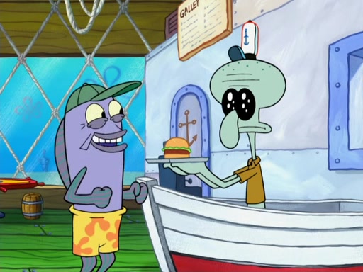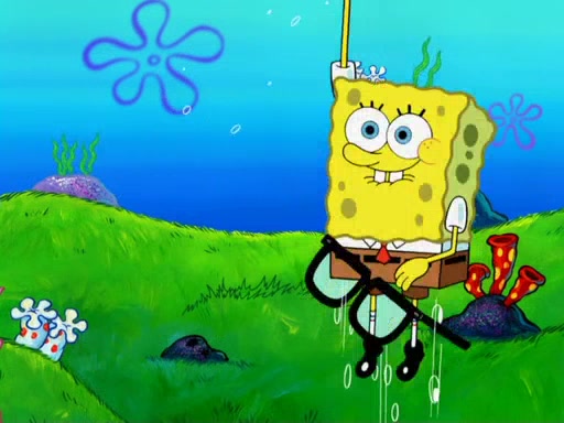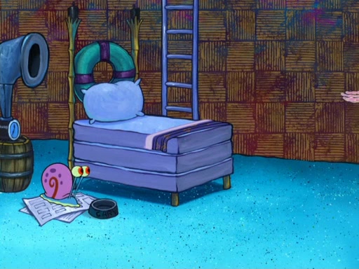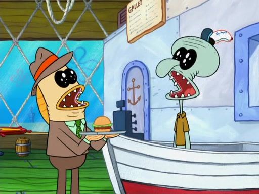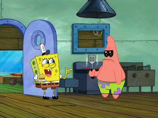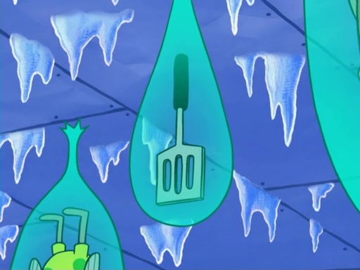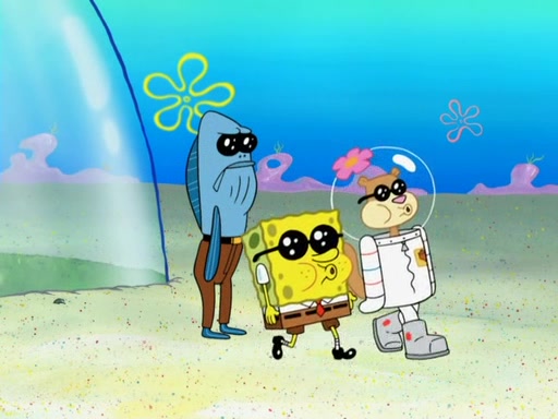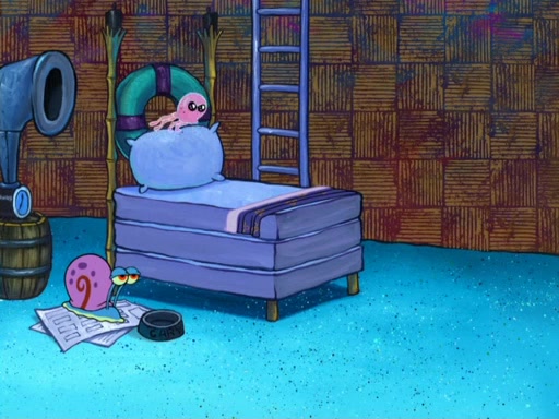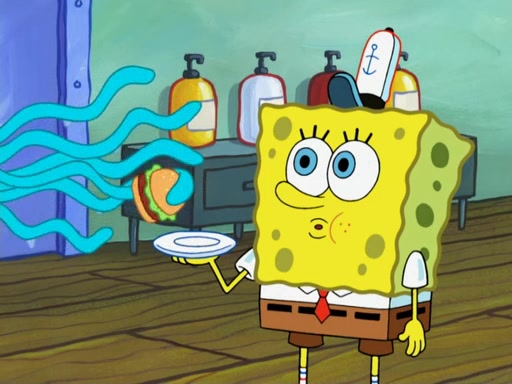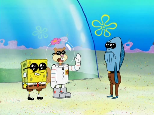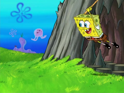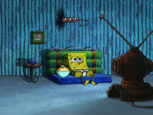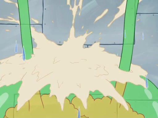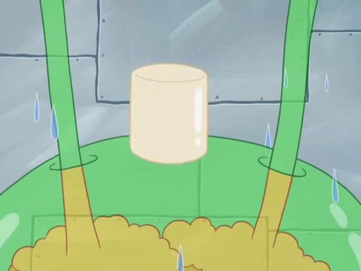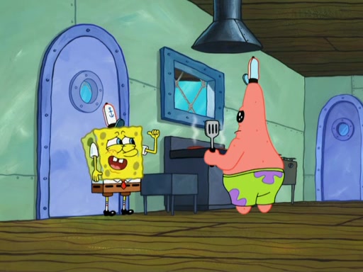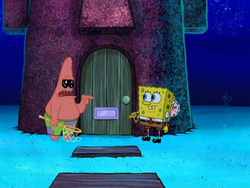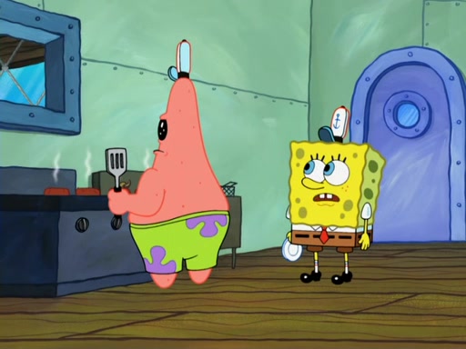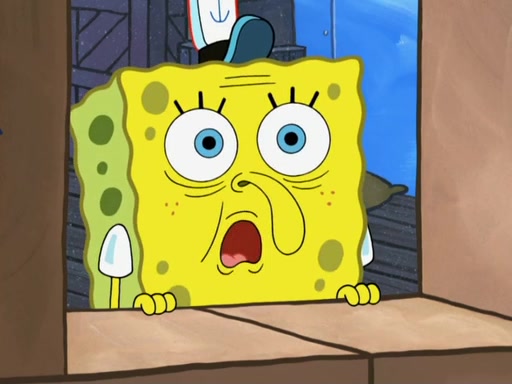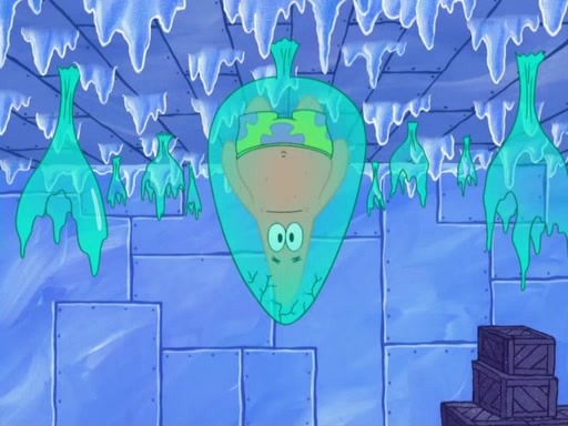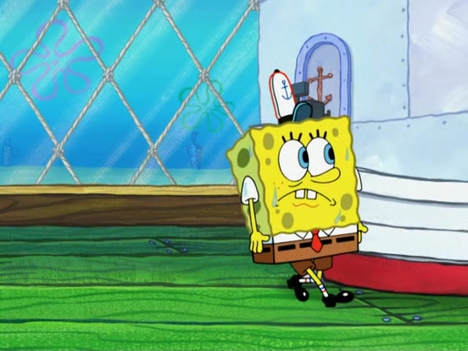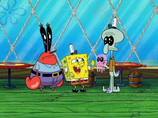 Later, SpongeBob and Jellion Patrick arrive at Squidward's house. Jellion Patrick stuffs his last jellion into Squidward's mail slot, then 1 second later, the jellion's tentacle spits out a tall light blue pile of goo from the window, which morphs into Jellion Squidward. Jellion Squidward and Jellion Patrick wish SpongeBob a good night. SpongeBob sleeps cozily in his bed, as Jellion #1 attempts to consume him, but SpongeBob awakes, with insomnia. As he watches a late movie, Jellion #1 tries again to consume him, but SpongeBob throws popcorn into Jellion #1's mouth. Jellion #1 starts choking on the popcorn, falling behind the couch.