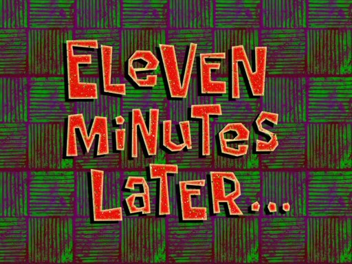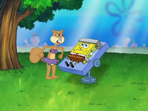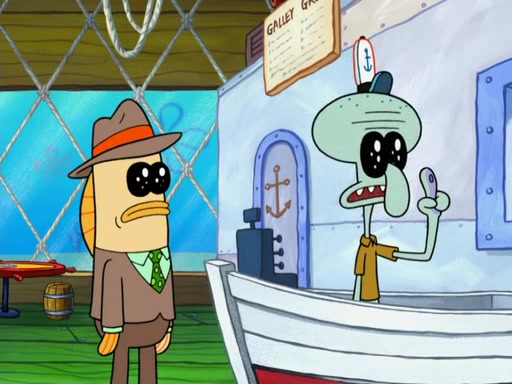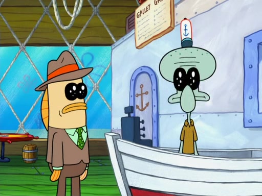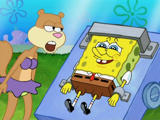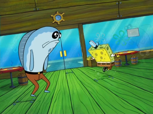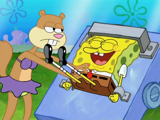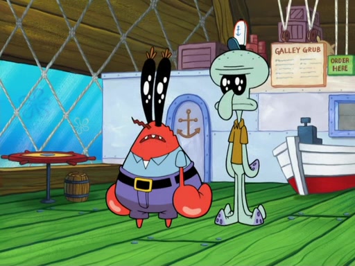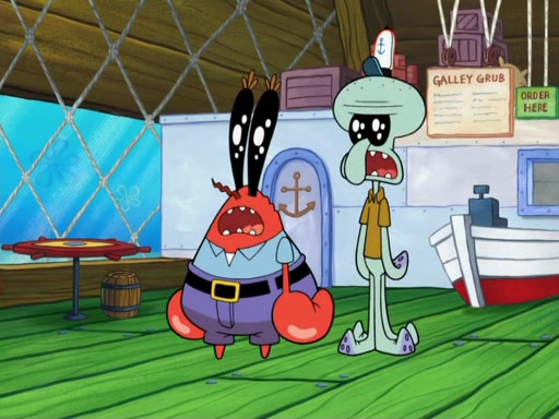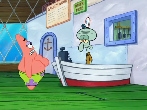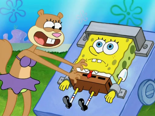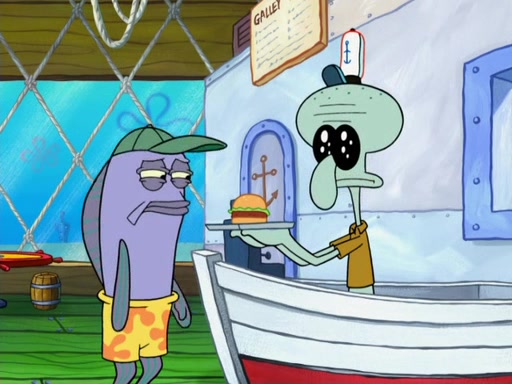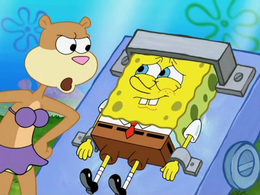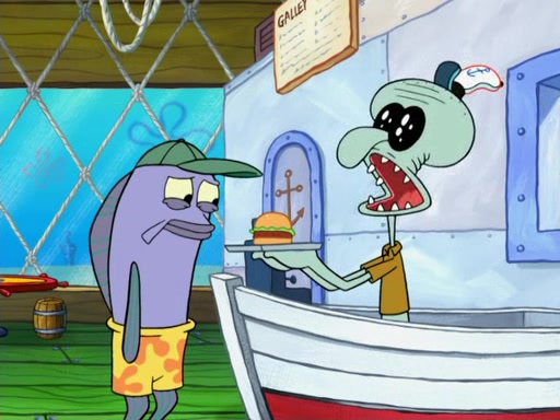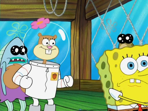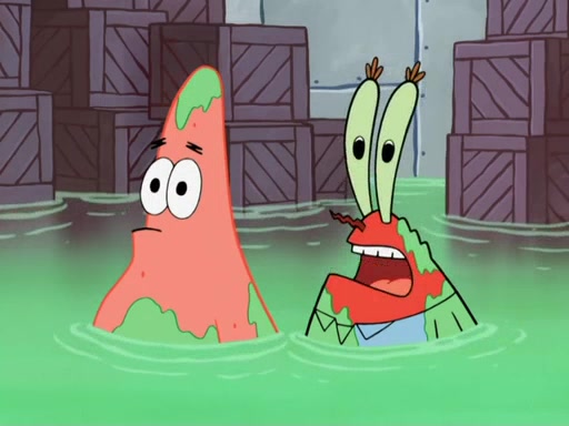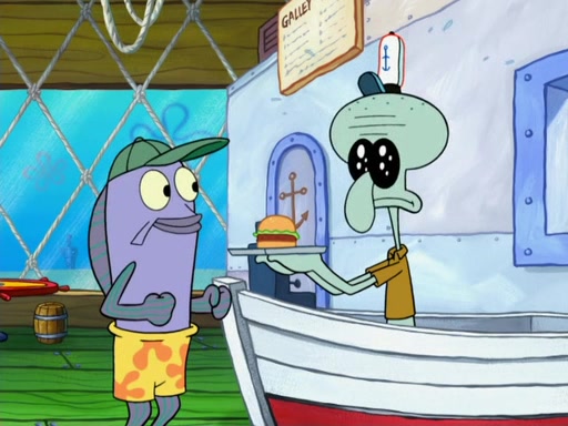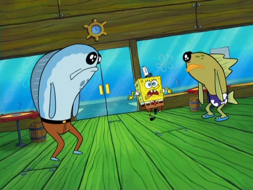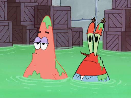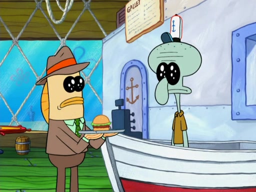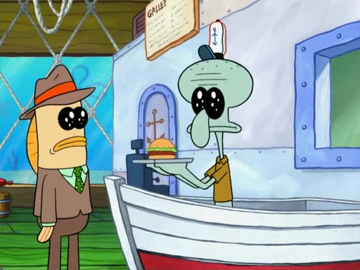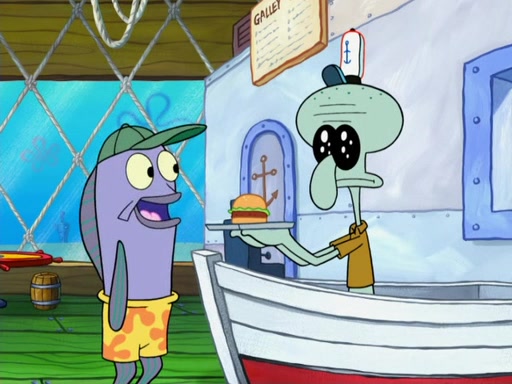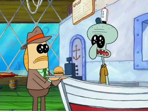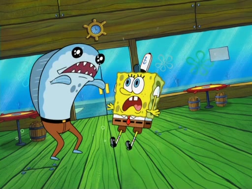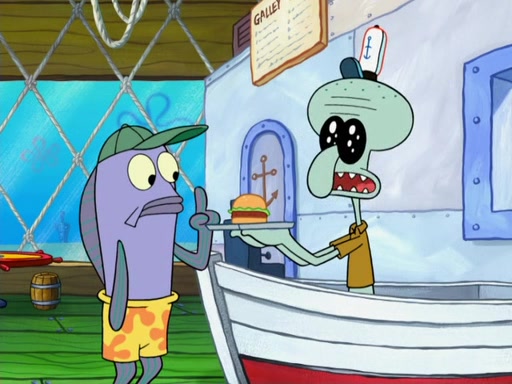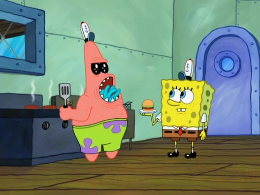 Later, SpongeBob and Jellion Patrick arrive at Squidward's house. Jellion Patrick stuffs his last jellion into Squidward's mail slot, then 1 second later, the jellion's tentacle spits out a tall light blue pile of goo from the window, which morphs into Jellion Squidward. Jellion Squidward and Jellion Patrick wish SpongeBob a good night. SpongeBob sleeps cozily in his bed, as Jellion #1 attempts to consume him, but SpongeBob awakes, with insomnia. As he watches a late movie, Jellion #1 tries again to consume him, but SpongeBob throws popcorn into Jellion #1's mouth. Jellion #1 starts choking on the popcorn, falling behind the couch.