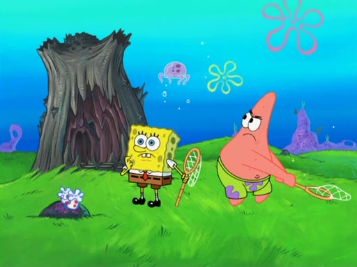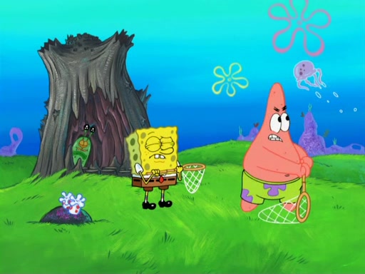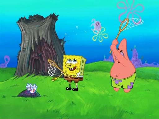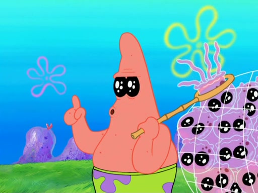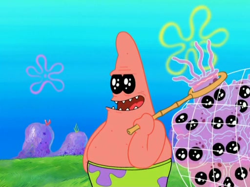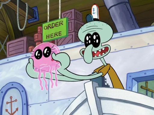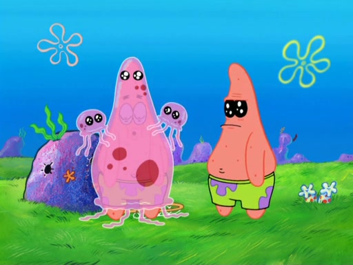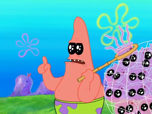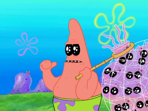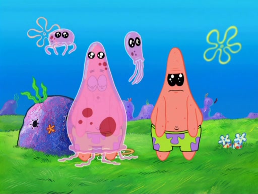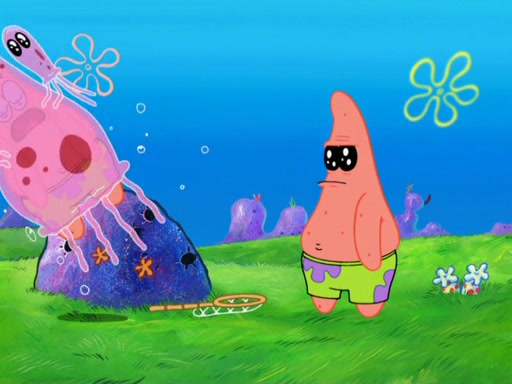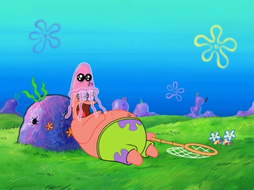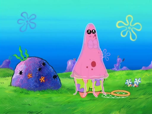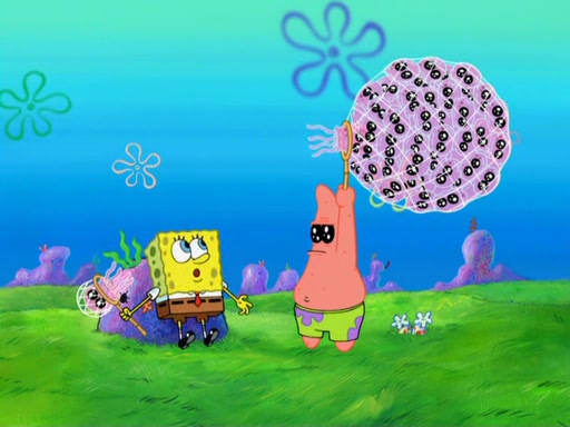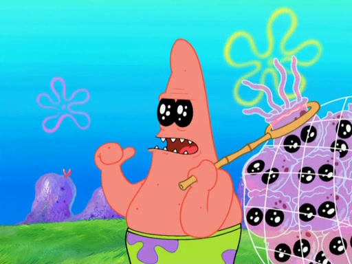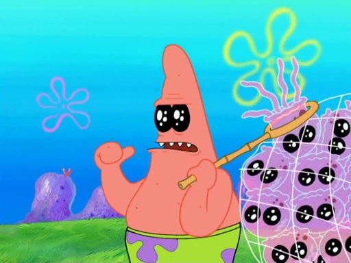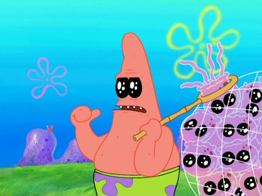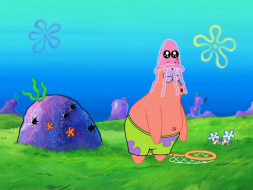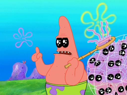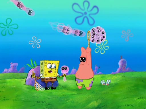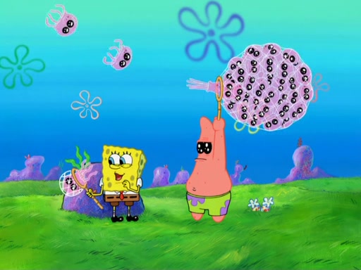It starts out as a happy day for jellyfishing. SpongeBob and Patrick are catching jellyfish when SpongeBob says that if they wouldn't sting, they would be perfect pets. A large alien jellyfish-like monster with large black eyes consumes a jellyfish, and then out of one of the tentacles spits a small pile of pink goo, which morphs into a jellion, a jellyfish with large black eyes. Jellion #1 is commanded to engulf someone as the Jellion King spits out more jellions. Patrick goes to take a nap, with Jellion #1 following him. As Patrick naps, Jellion #1 stretches out its body so that Patrick is inside of it, then one of its tentacles spits out a tall pile of pink goo, with morphs into Jellion Patrick, which is Patrick but with large black eyes, same as the Jellion. Patrick uses his blue mouth tentacles to pick up his net as SpongeBob catches Jellion #1. Jellions swarm into Jellion Patrick's net, and then Jellion Patrick gets an idea to give his jellions to everyone in town.