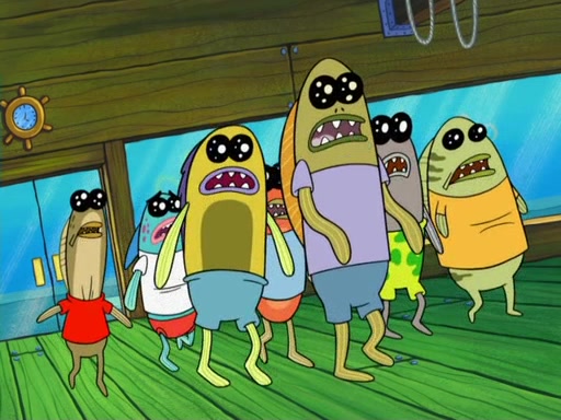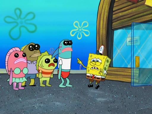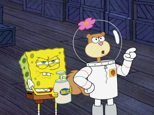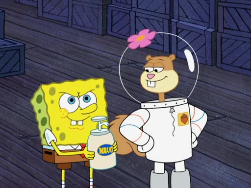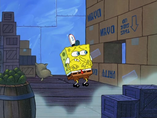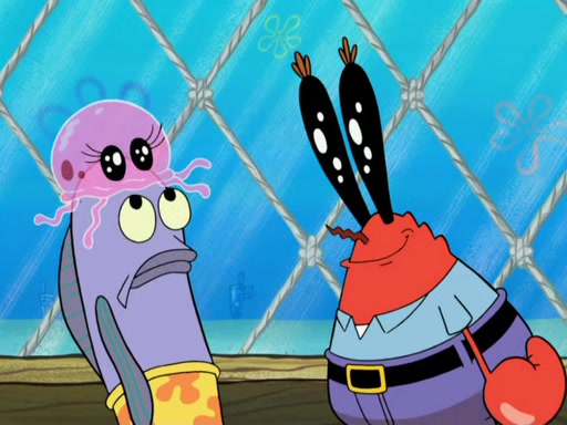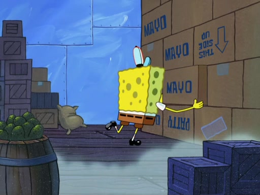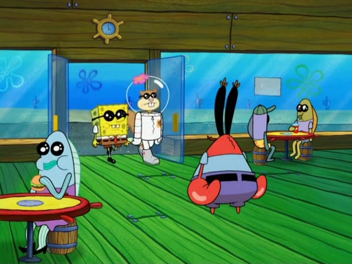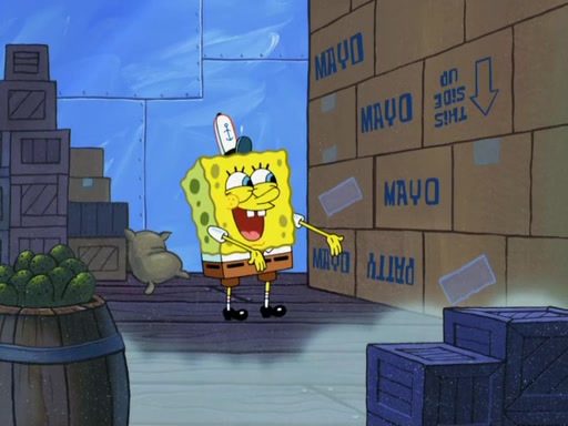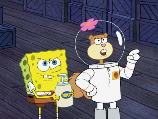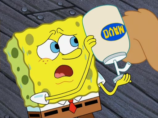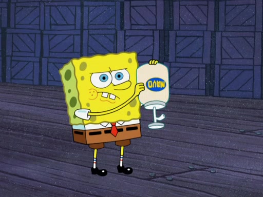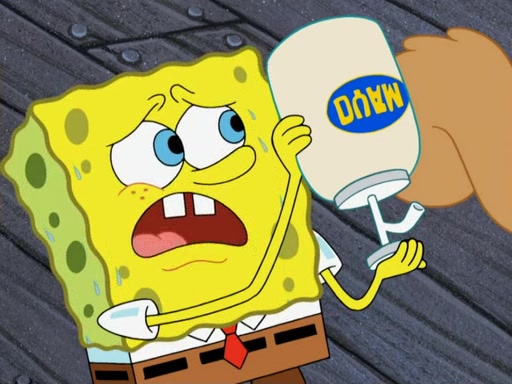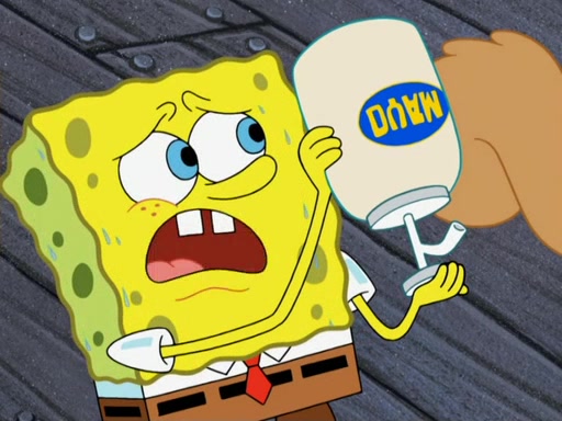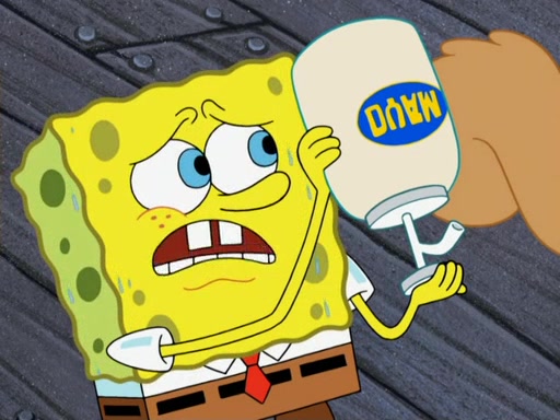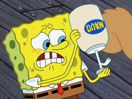 SpongeBob realized that something was very wrong. SpongeBob was ordered by Jellion Mr. Krabs to take a nap. SpongeBob flees from the Krusty Krab, with several Jellion Bikini Bottomites chasing him. SpongeBob is captured and kidnapped by Sandy. Sandy tickled him, and he giggled, showing he wasn't a jellion clone. They figured out that the weakness was mayo, since Jellions ordered food with no mayo. They then exited with sunglasses with lens that looked like jellion eyes. Unfortunately, when joking in front of Jellion Mr. Krabs, SpongeBob elbowed Sandy, knocking off her sunglasses, and Jellion Mr. Krabs shouts "IMPOSTER," which knocked off SpongeBob's glasses. SpongeBob quickly grabbed a mayo sprayer and destroyed the entire town of Jellion clones. When a clone was destroyed, the real person of the clone awakened, and the cocoon disintegrated.