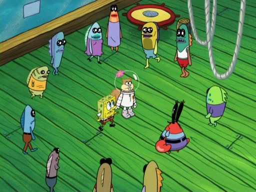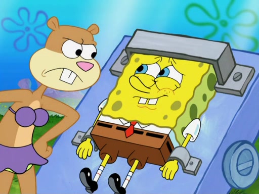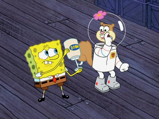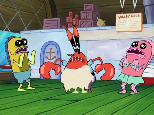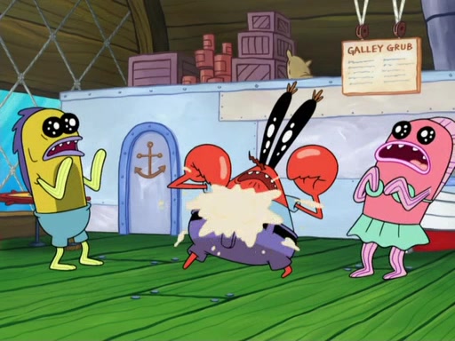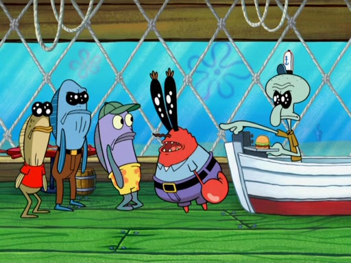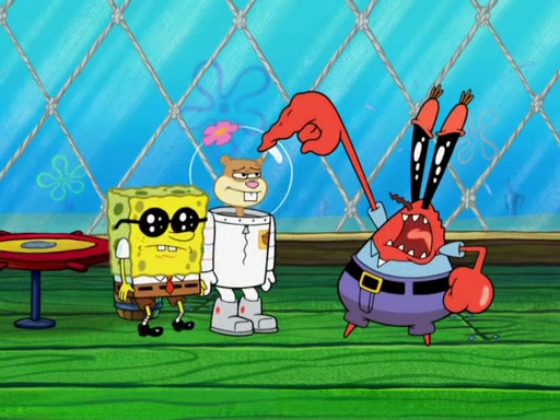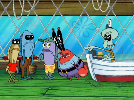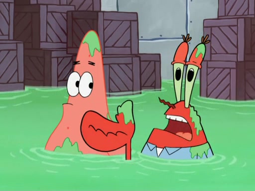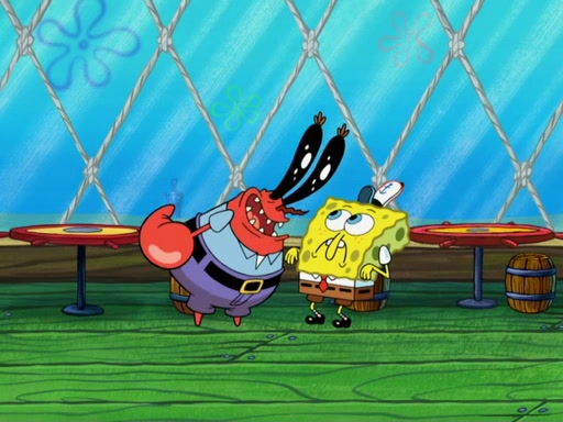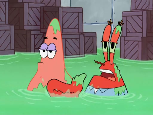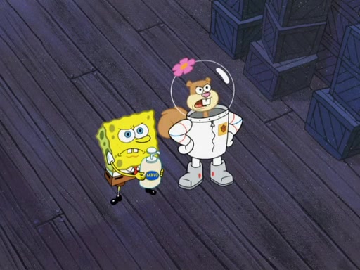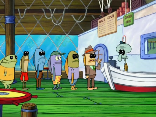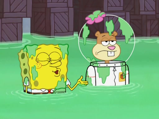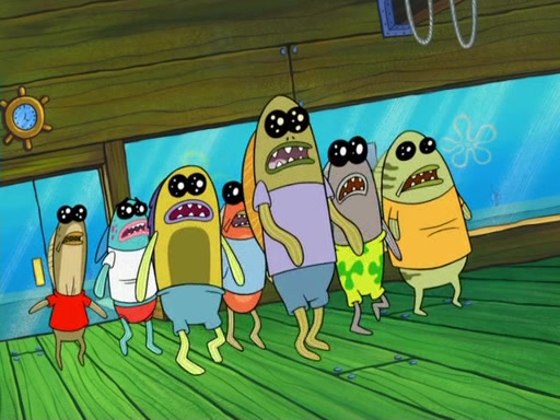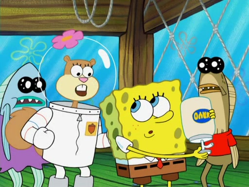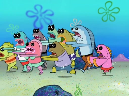 SpongeBob realized that something was very wrong. SpongeBob was ordered by Jellion Mr. Krabs to take a nap. SpongeBob flees from the Krusty Krab, with several Jellion Bikini Bottomites chasing him. SpongeBob is captured and kidnapped by Sandy. Sandy tickled him, and he giggled, showing he wasn't a jellion clone. They figured out that the weakness was mayo, since Jellions ordered food with no mayo. They then exited with sunglasses with lens that looked like jellion eyes. Unfortunately, when joking in front of Jellion Mr. Krabs, SpongeBob elbowed Sandy, knocking off her sunglasses, and Jellion Mr. Krabs shouts "IMPOSTER," which knocked off SpongeBob's glasses. SpongeBob quickly grabbed a mayo sprayer and destroyed the entire town of Jellion clones. When a clone was destroyed, the real person of the clone awakened, and the cocoon disintegrated.