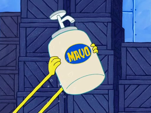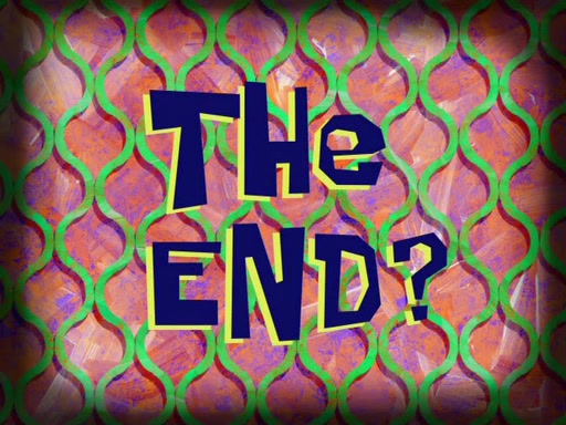 SpongeBob and Sandy find the hideout, containing every Bikini Bottomite cowering in fear. SpongeBob destroyed one side of the Jellion King's jellions, but then the mayo started to freeze. SpongeBob tossed the mayo from the jar, but it froze and landed in between the Jellion King's eye stems. Sandy turned up the heat, and the mayo melted, destroying the Jellion King. The remaining several Jellions, not hit by mayo, then pop like bubbles. SpongeBob explained everything, which took eleven minutes. Patrick tastes the jelly and compliments it as relish. Soon, the goo remaining from the clones and jellions was sold as Evil Clone Jelly Relish for $4 extra than regular Krabby Patties. Patrick then orders a Krabby Patty with Jelly Relish, and then says "Hold the mayo." SpongeBob hears this and looks suspiciously at Patrick, and then the words "The End?" appear on the screen, ending the episode.