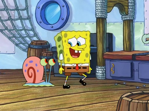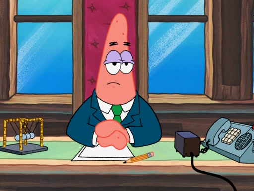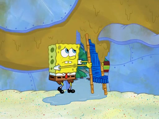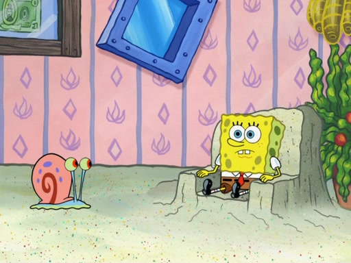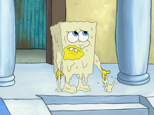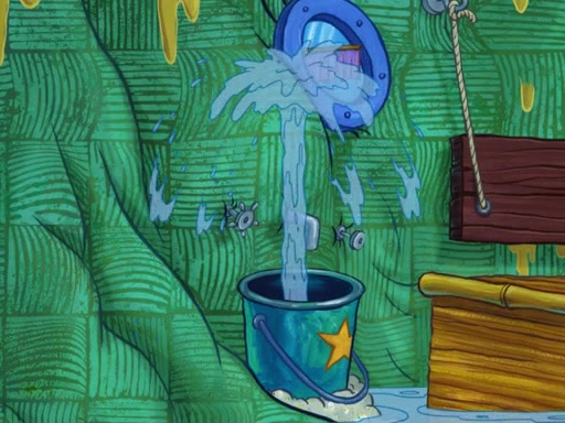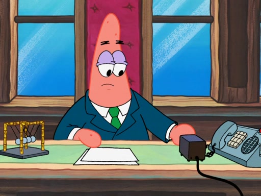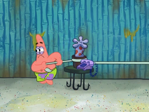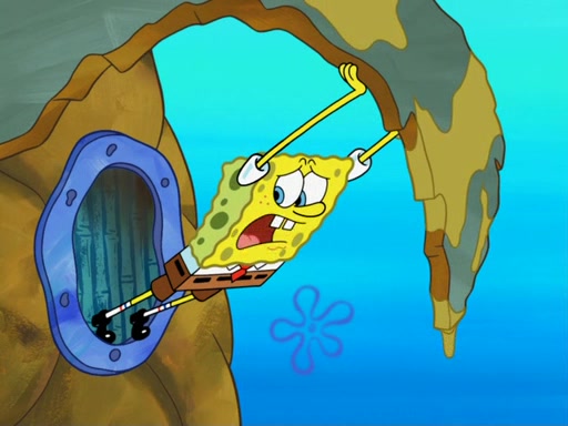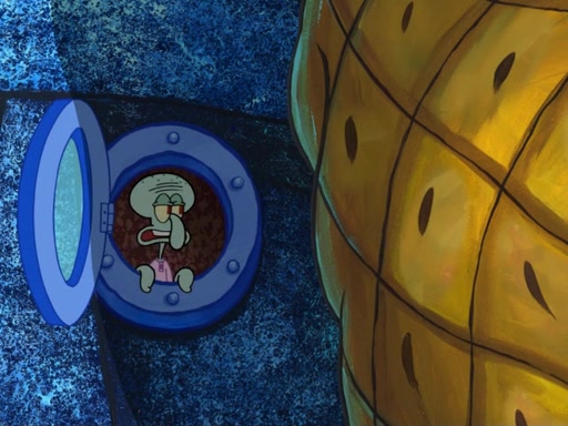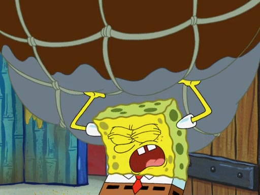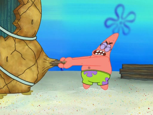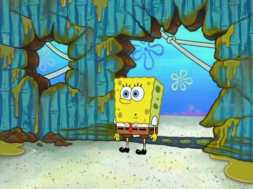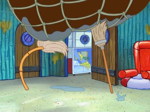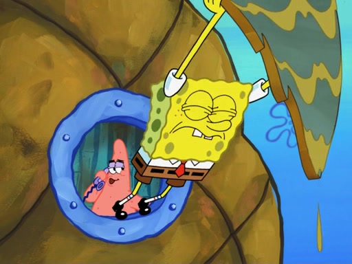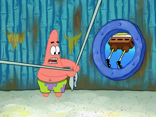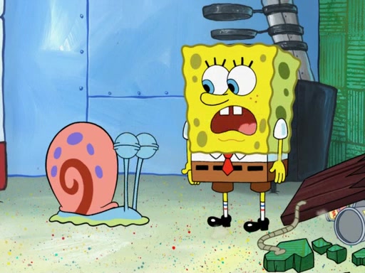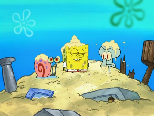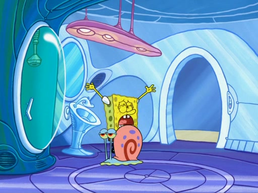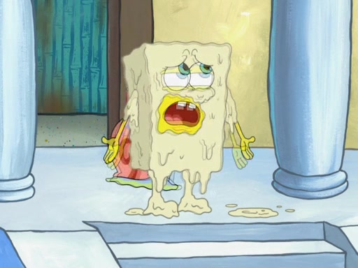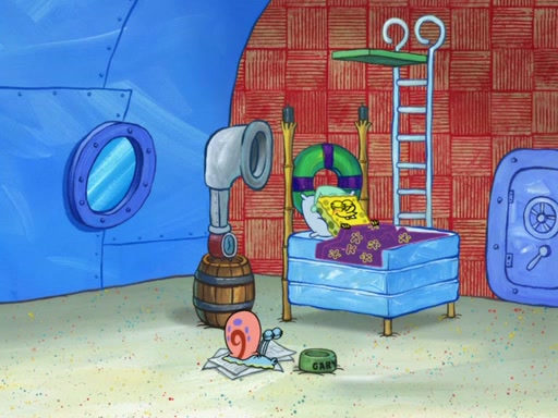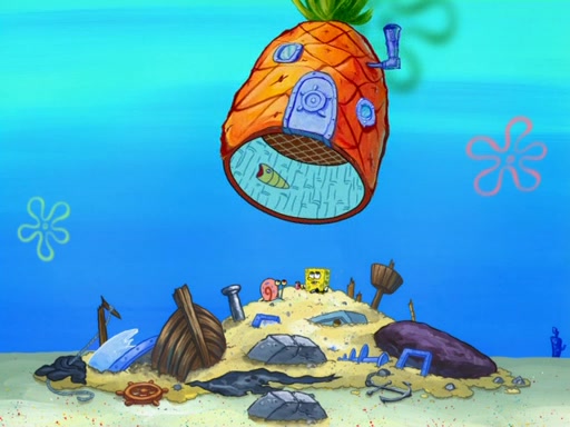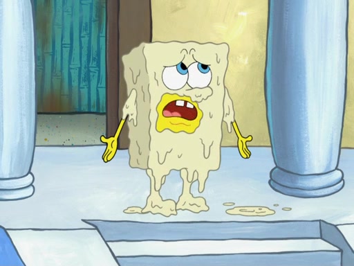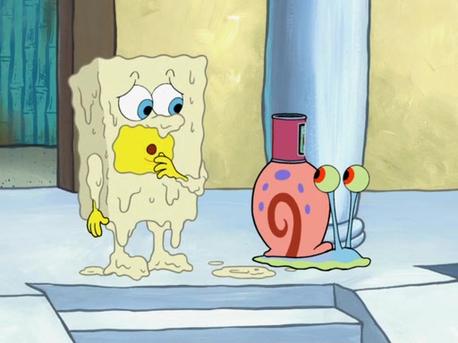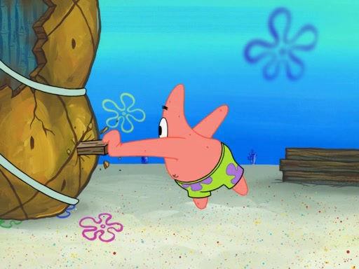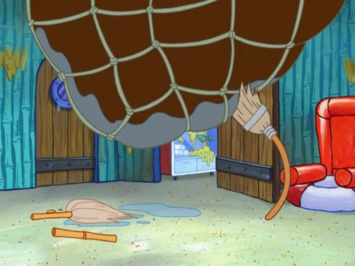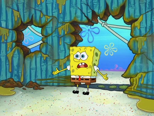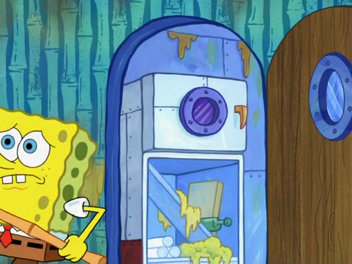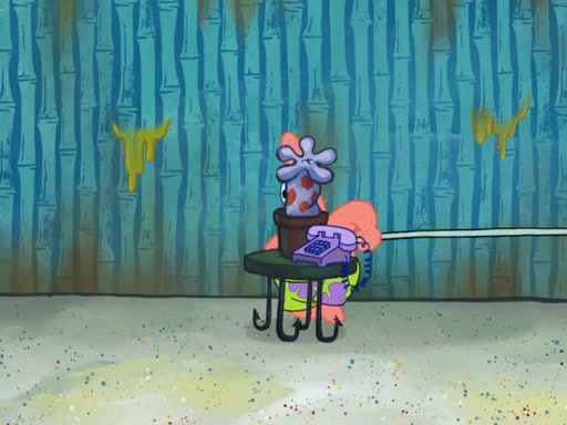 One morning, SpongeBob's pineapple home starts wilting. When SpongeBob wakes up, he's ready to give Gary breakfast, but when he sees his home's condition, he puts off feeding Gary until it's fixed. He boards up the sides, and is ready to feed Gary. However, the ceiling caves in, so he tries to keep it up. He stands under it and holds it up, calling for Patrick to help him. Patrick is dreaming that he is in an office, doing weird things on his desk. The phone rings and Sandy is on the other line and tells him it's from SpongeBob. When the message is put through, Patrick hears SpongeBob calling for help. Then, he wakes up and goes to the pineapple. Squidward comes over after hearing the ruckus and SpongeBob tells him he could use his help. Patrick grabs his arms and wraps him around the pineapple. Gary comes over with a can and meows, but SpongeBob doesn't listen to him.
