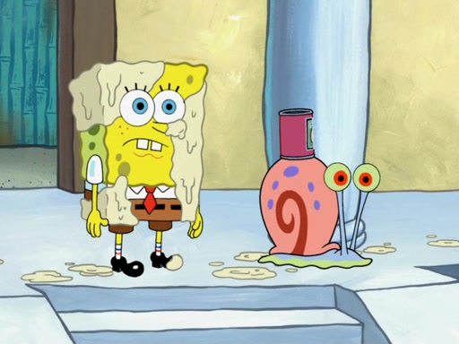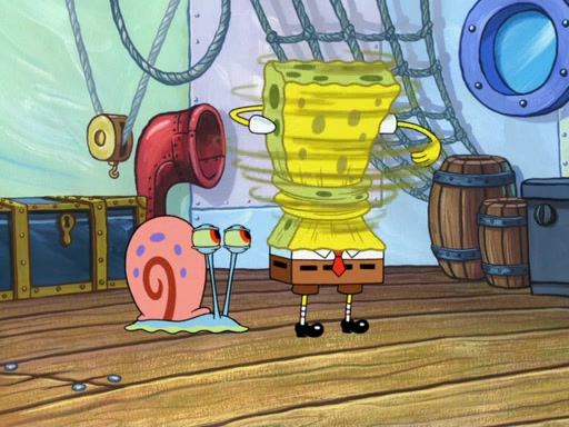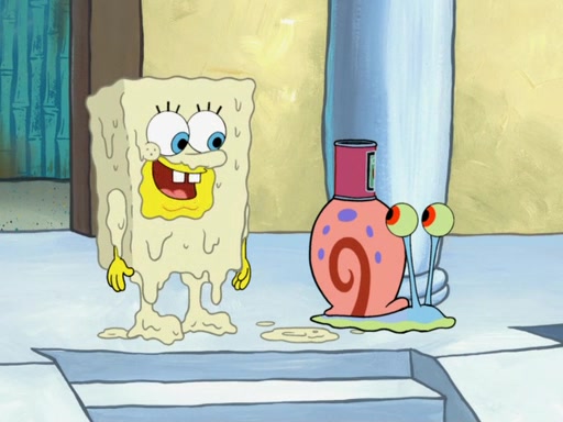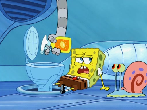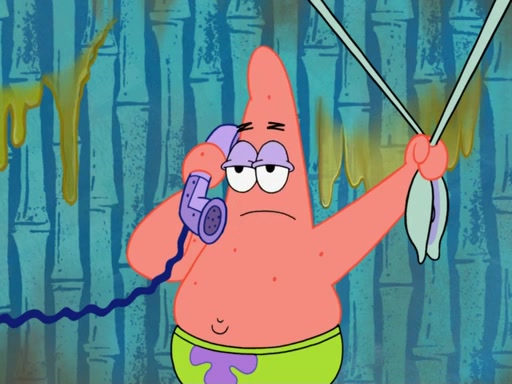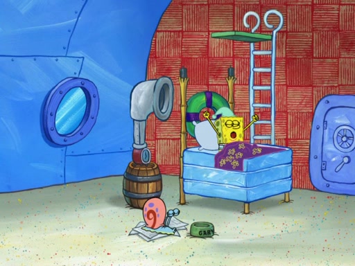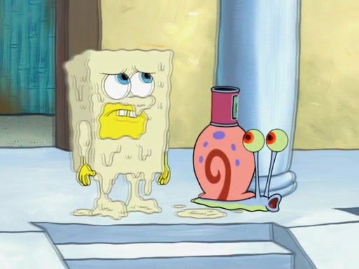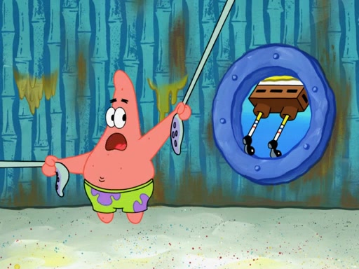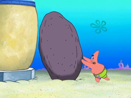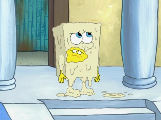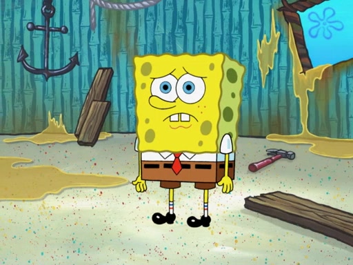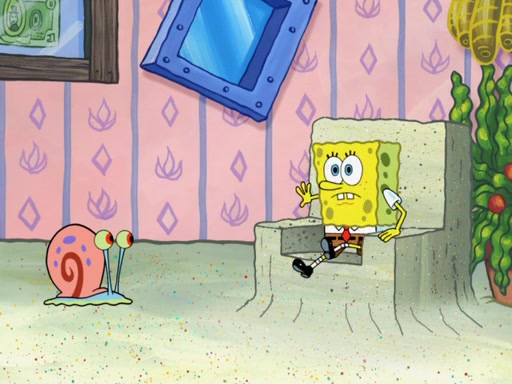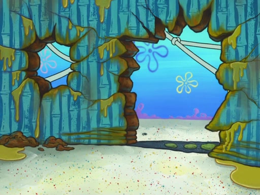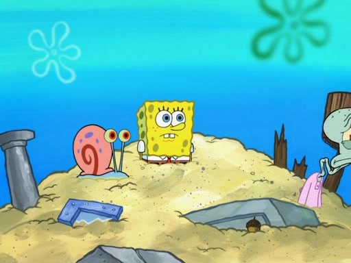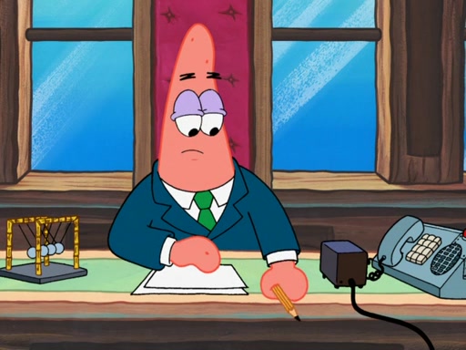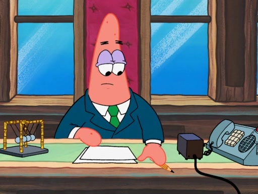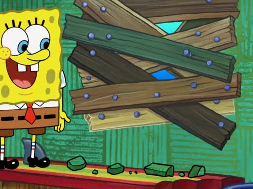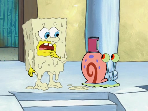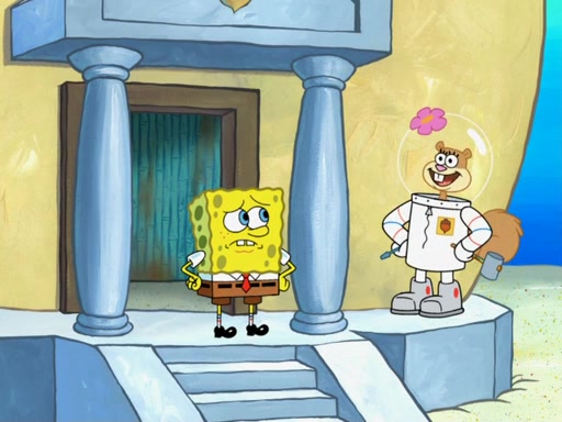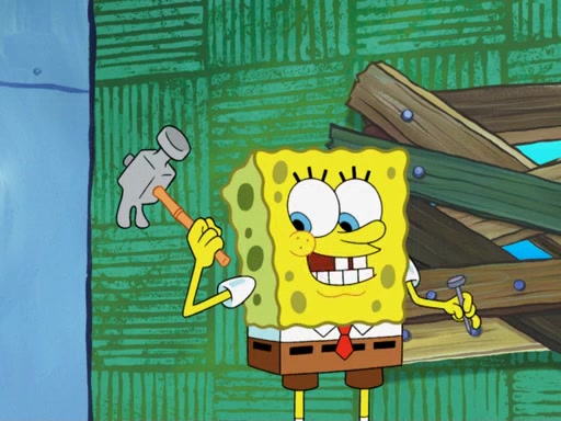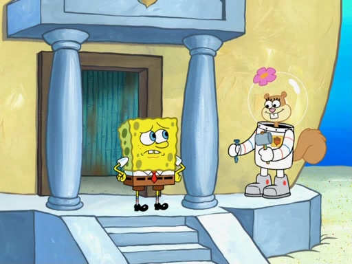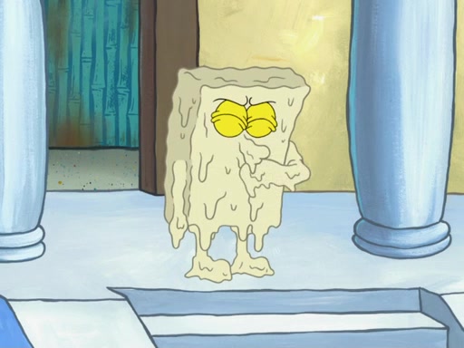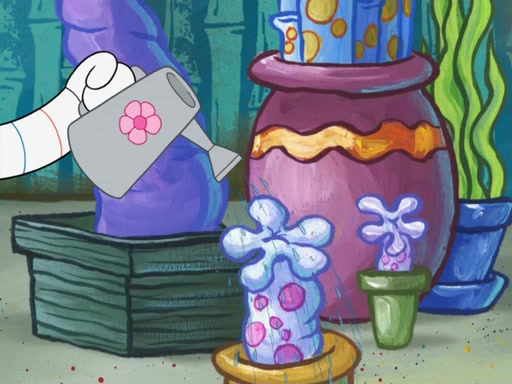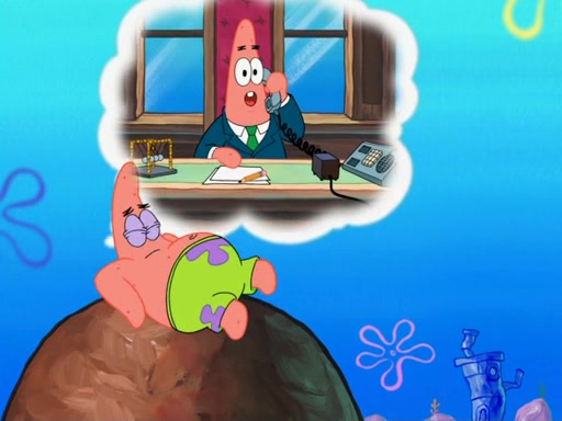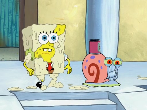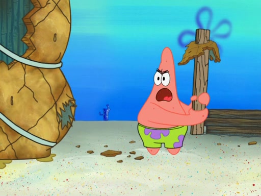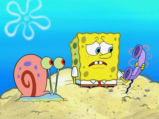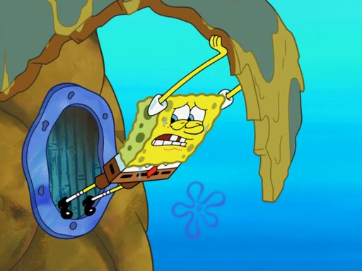 One morning, SpongeBob's pineapple home starts wilting. When SpongeBob wakes up, he's ready to give Gary breakfast, but when he sees his home's condition, he puts off feeding Gary until it's fixed. He boards up the sides, and is ready to feed Gary. However, the ceiling caves in, so he tries to keep it up. He stands under it and holds it up, calling for Patrick to help him. Patrick is dreaming that he is in an office, doing weird things on his desk. The phone rings and Sandy is on the other line and tells him it's from SpongeBob. When the message is put through, Patrick hears SpongeBob calling for help. Then, he wakes up and goes to the pineapple. Squidward comes over after hearing the ruckus and SpongeBob tells him he could use his help. Patrick grabs his arms and wraps him around the pineapple. Gary comes over with a can and meows, but SpongeBob doesn't listen to him.