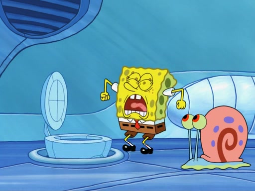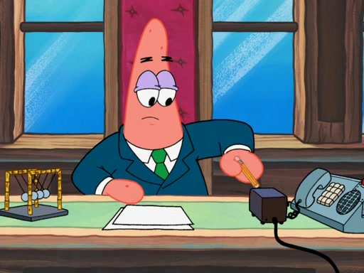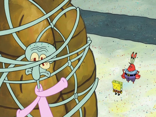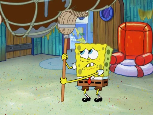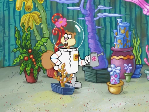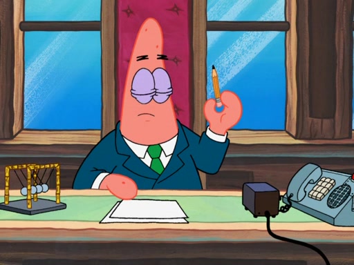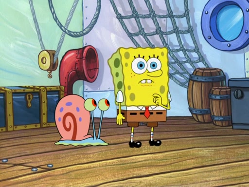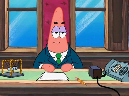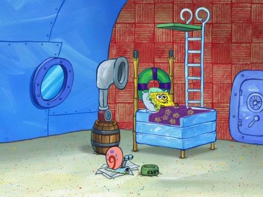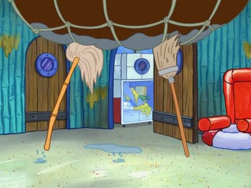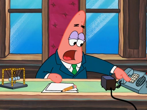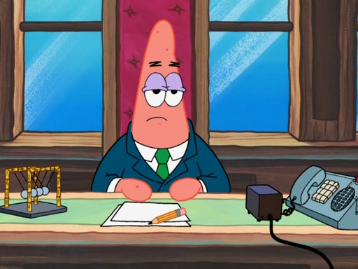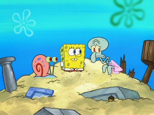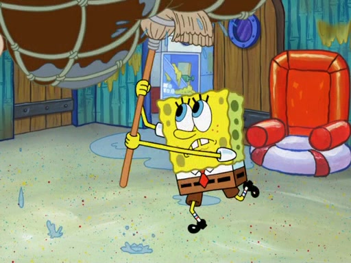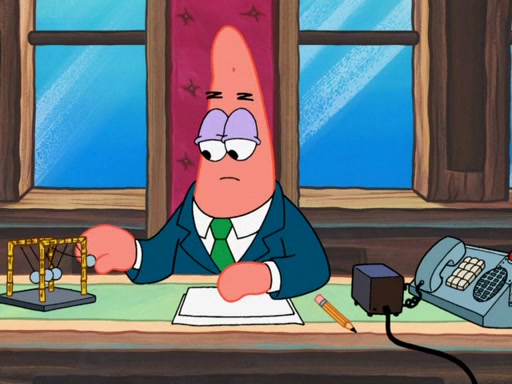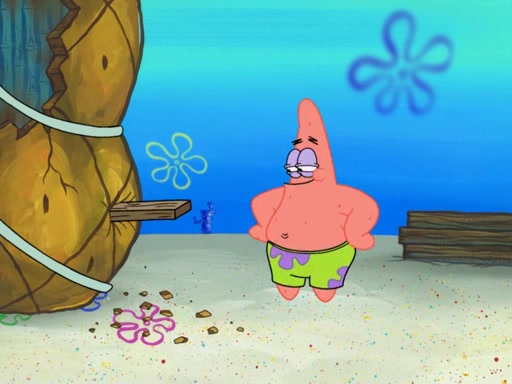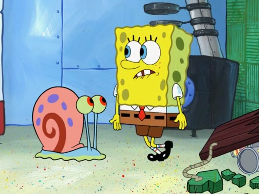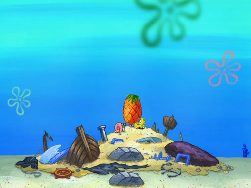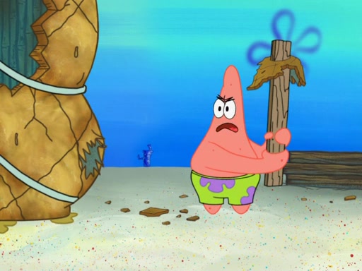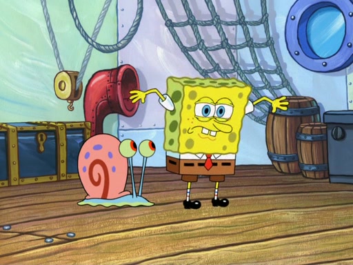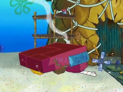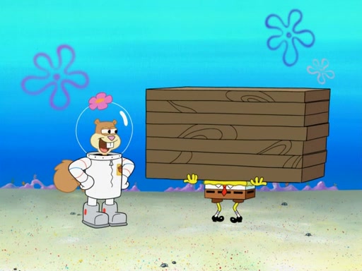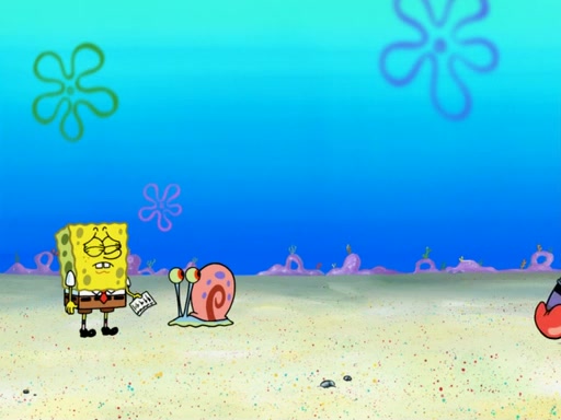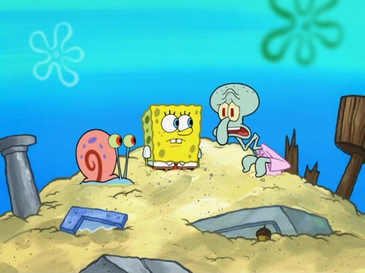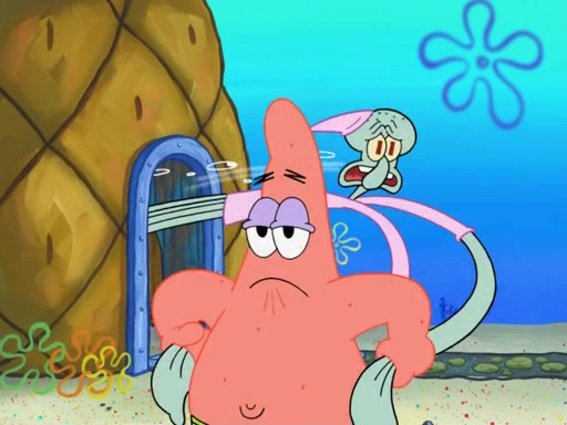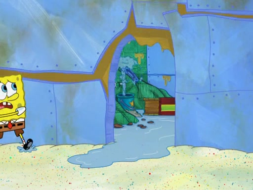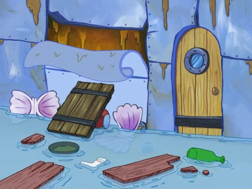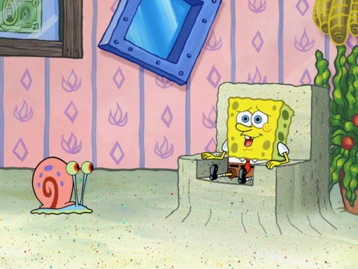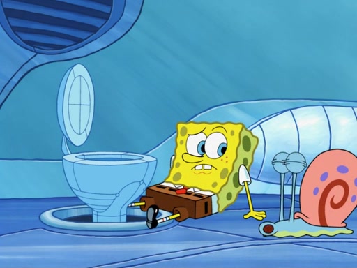 One morning, SpongeBob's pineapple home starts wilting. When SpongeBob wakes up, he's ready to give Gary breakfast, but when he sees his home's condition, he puts off feeding Gary until it's fixed. He boards up the sides, and is ready to feed Gary. However, the ceiling caves in, so he tries to keep it up. He stands under it and holds it up, calling for Patrick to help him. Patrick is dreaming that he is in an office, doing weird things on his desk. The phone rings and Sandy is on the other line and tells him it's from SpongeBob. When the message is put through, Patrick hears SpongeBob calling for help. Then, he wakes up and goes to the pineapple. Squidward comes over after hearing the ruckus and SpongeBob tells him he could use his help. Patrick grabs his arms and wraps him around the pineapple. Gary comes over with a can and meows, but SpongeBob doesn't listen to him.