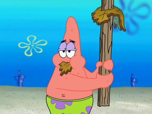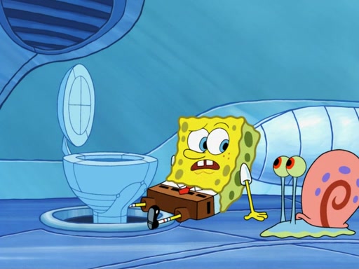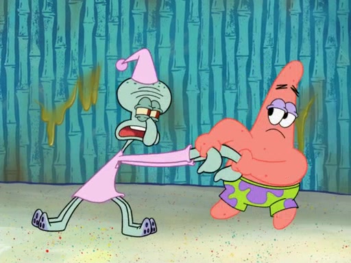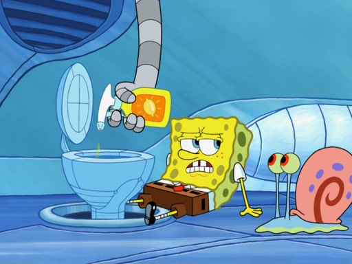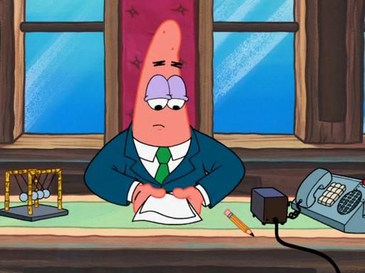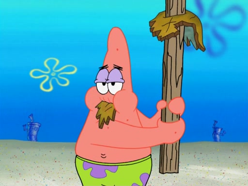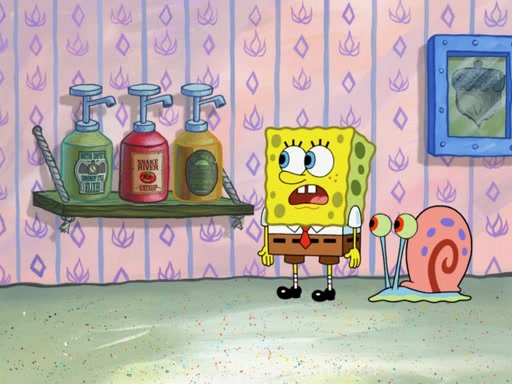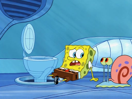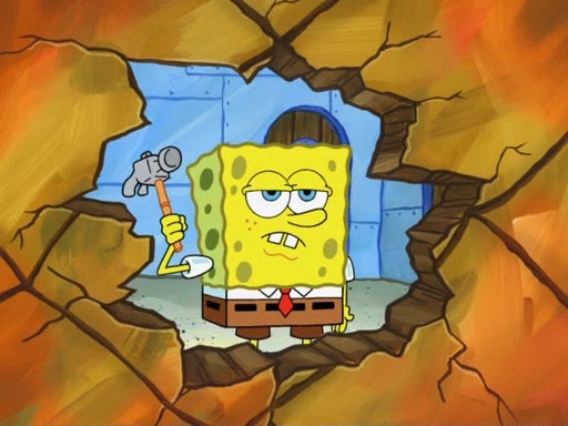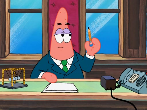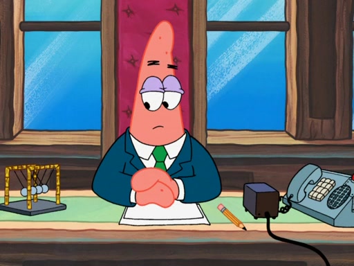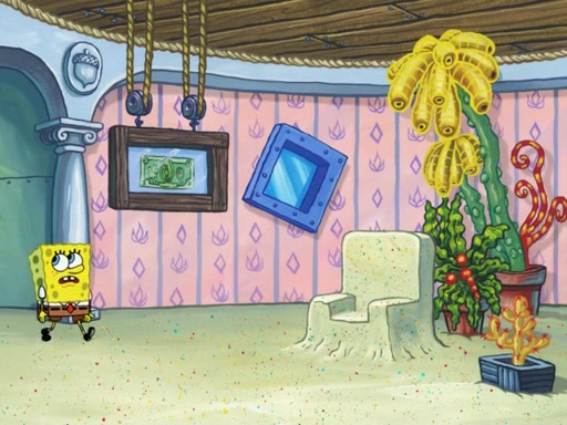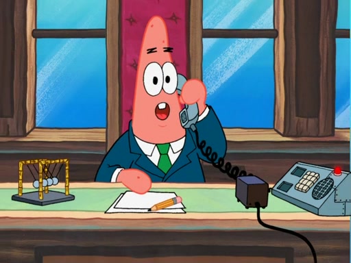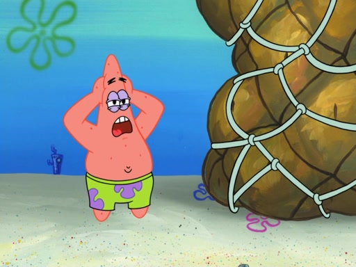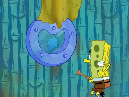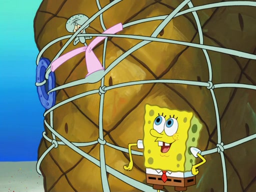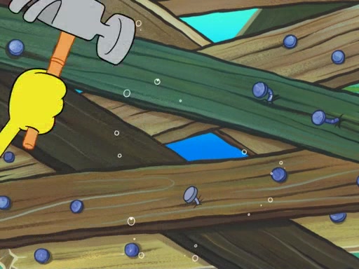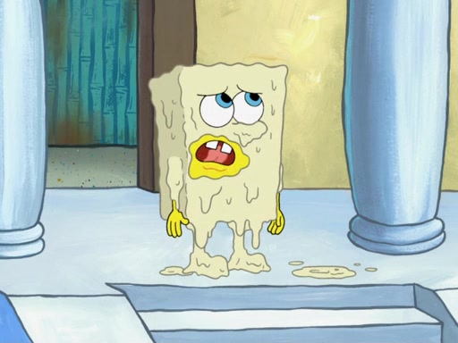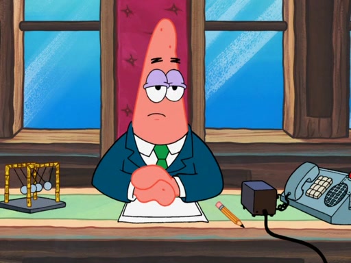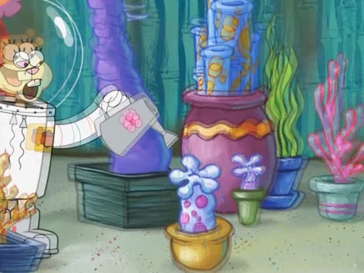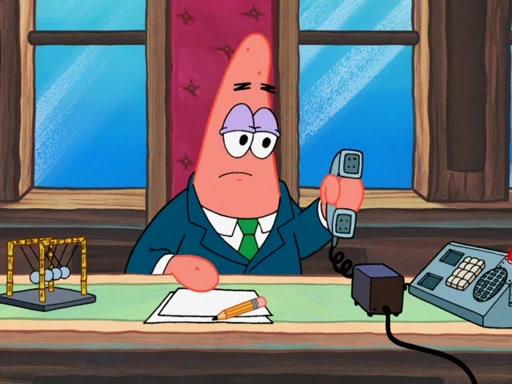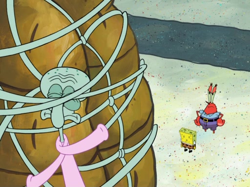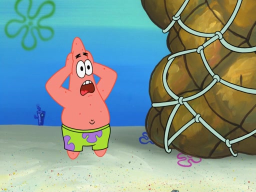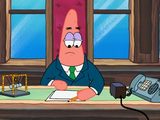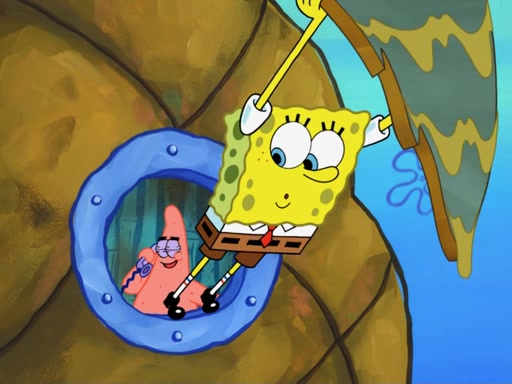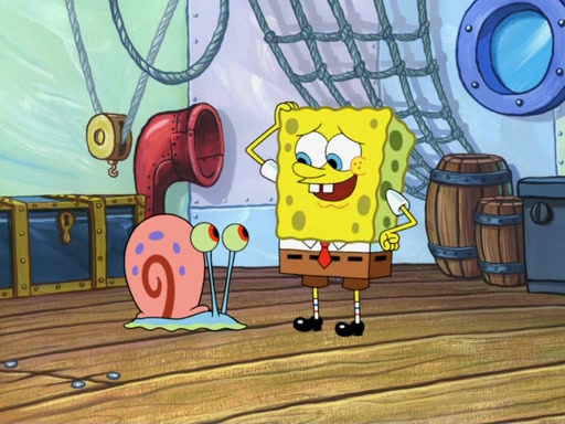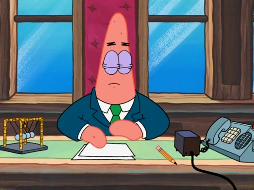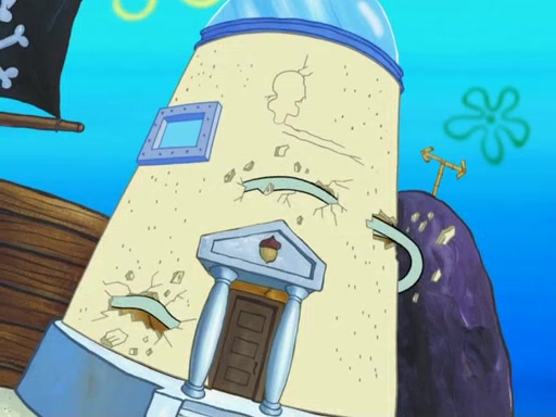 One morning, SpongeBob's pineapple home starts wilting. When SpongeBob wakes up, he's ready to give Gary breakfast, but when he sees his home's condition, he puts off feeding Gary until it's fixed. He boards up the sides, and is ready to feed Gary. However, the ceiling caves in, so he tries to keep it up. He stands under it and holds it up, calling for Patrick to help him. Patrick is dreaming that he is in an office, doing weird things on his desk. The phone rings and Sandy is on the other line and tells him it's from SpongeBob. When the message is put through, Patrick hears SpongeBob calling for help. Then, he wakes up and goes to the pineapple. Squidward comes over after hearing the ruckus and SpongeBob tells him he could use his help. Patrick grabs his arms and wraps him around the pineapple. Gary comes over with a can and meows, but SpongeBob doesn't listen to him.