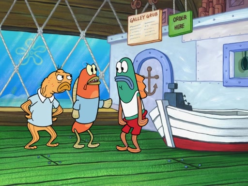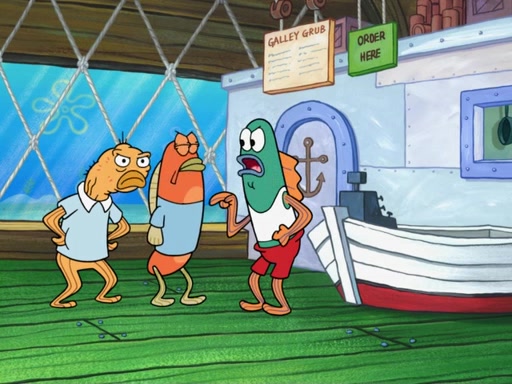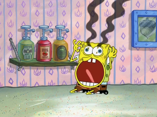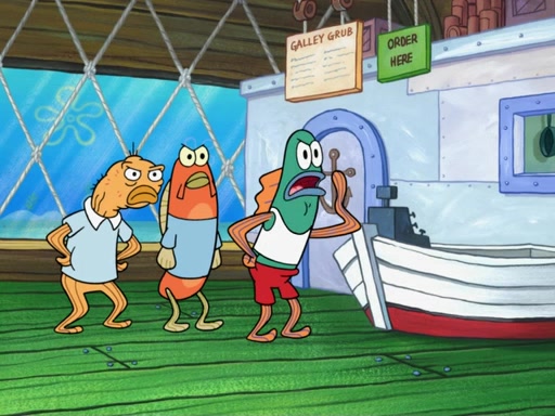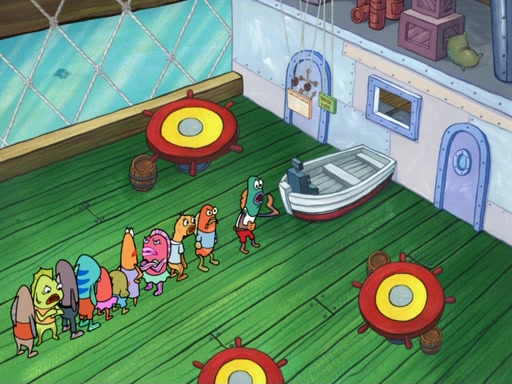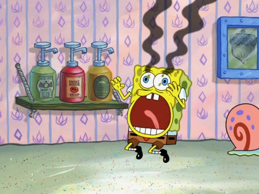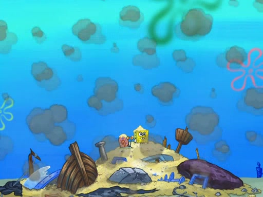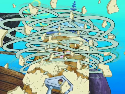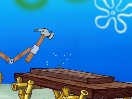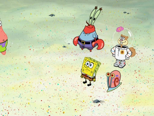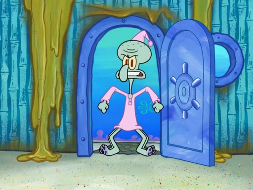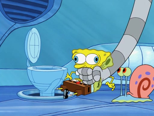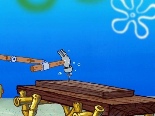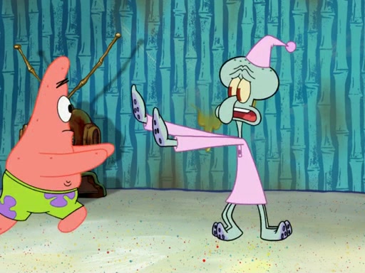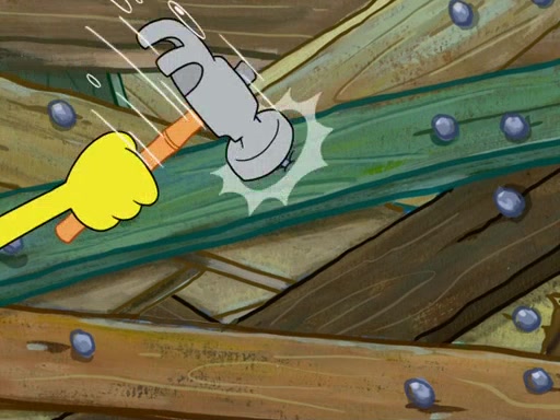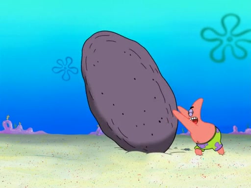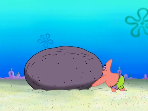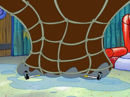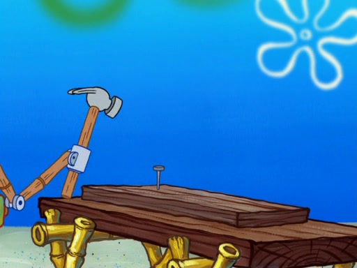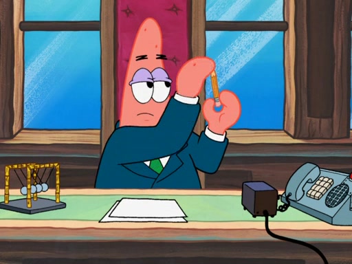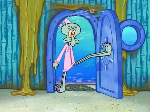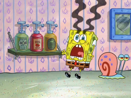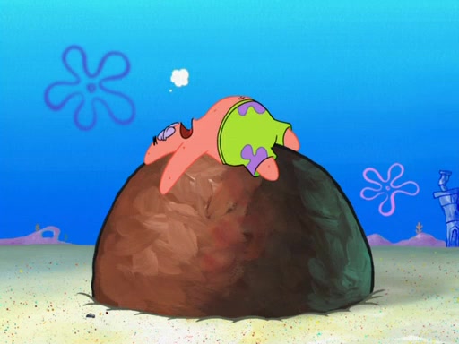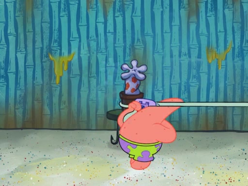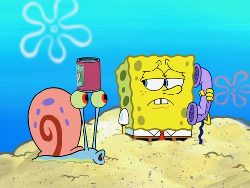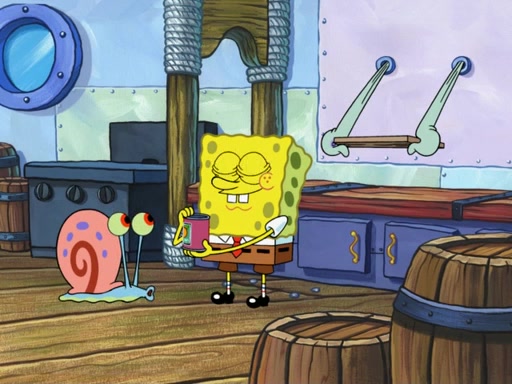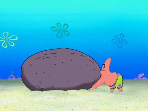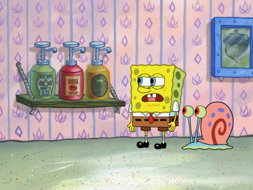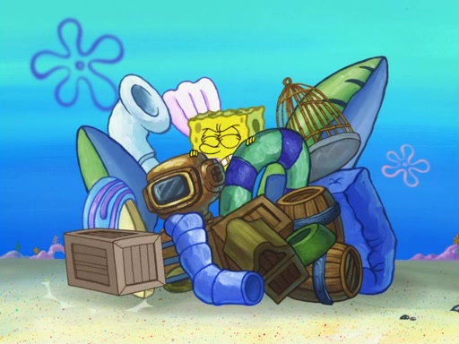One morning, SpongeBob's pineapple home starts wilting. When SpongeBob wakes up, he's ready to give Gary breakfast, but when he sees his home's condition, he puts off feeding Gary until it's fixed. He boards up the sides, and is ready to feed Gary. However, the ceiling caves in, so he tries to keep it up. He stands under it and holds it up, calling for Patrick to help him. Patrick is dreaming that he is in an office, doing weird things on his desk. The phone rings and Sandy is on the other line and tells him it's from SpongeBob. When the message is put through, Patrick hears SpongeBob calling for help. Then, he wakes up and goes to the pineapple. Squidward comes over after hearing the ruckus and SpongeBob tells him he could use his help. Patrick grabs his arms and wraps him around the pineapple. Gary comes over with a can and meows, but SpongeBob doesn't listen to him.