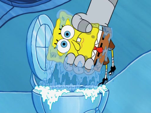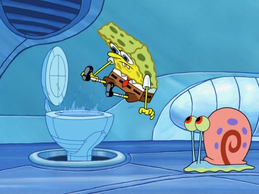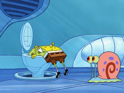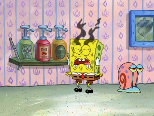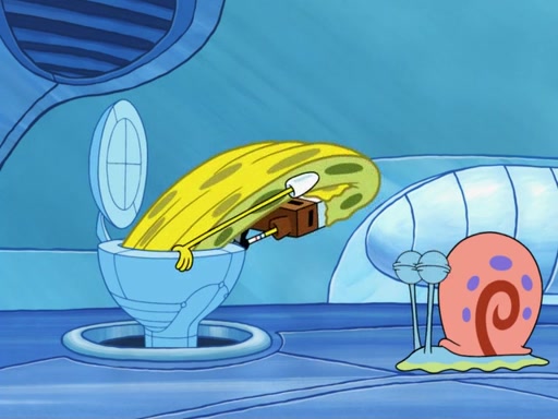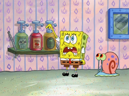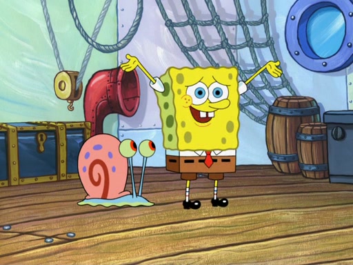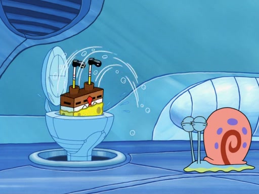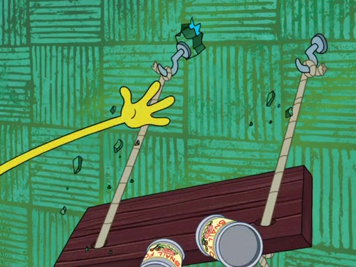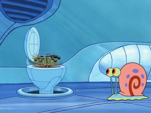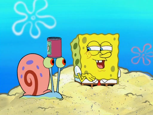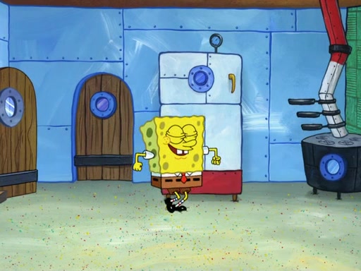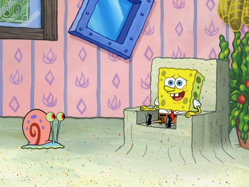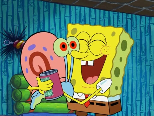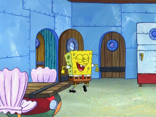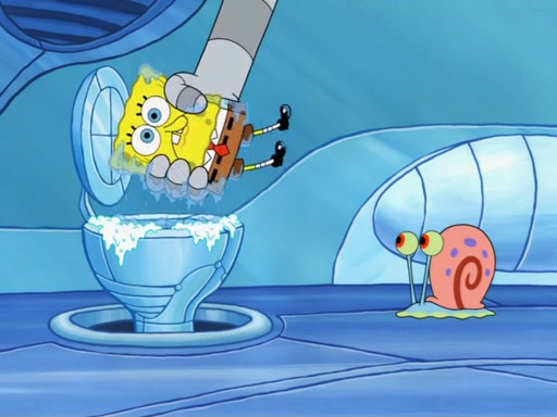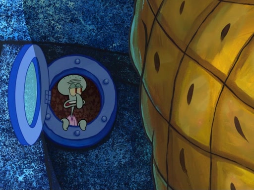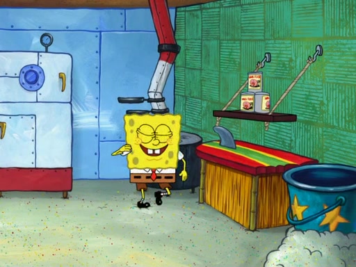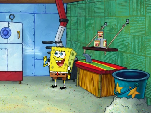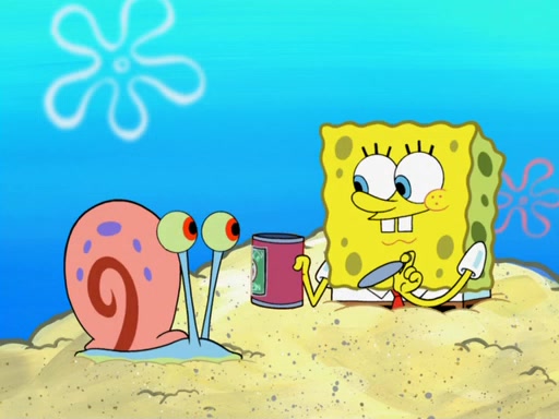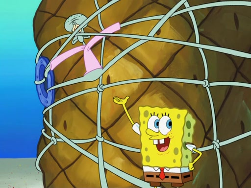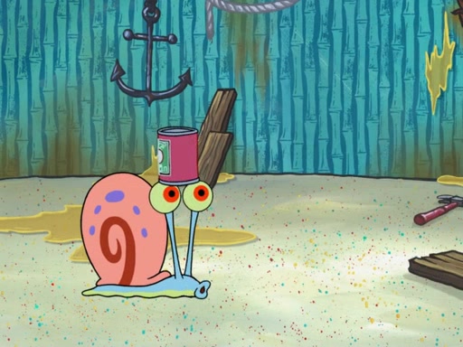 When the rebuilding is complete, SpongeBob is not happy with the changes. He explores his new home and sees Gary is still hungry, so he takes a can from a shelf (being held by Squidward's hands). However, the weight of the can was the only thing keeping Squidward's hands in place, and the home collapses. Climbing out of the rubble, Squidward angrily chastises SpongeBob, but it's cut short by severe pain in his neck, so he goes home. SpongeBob, dejected, calls to have his home condemned. Gary presents SpongeBob with a can, and SpongeBob opens it. Out pops a pineapple, which lands on the rubble and is fully furnished inside. All this time, Gary was trying to show SpongeBob the can, which contained a fully furnished pineapple. SpongeBob opens the can, his house pops out, SpongeBob reads what the can says, "Newly Furnished Pineapple in a Can." SpongeBob then hugs Gary, saying "You're the best!," then laughs happily.