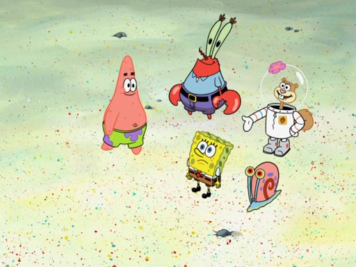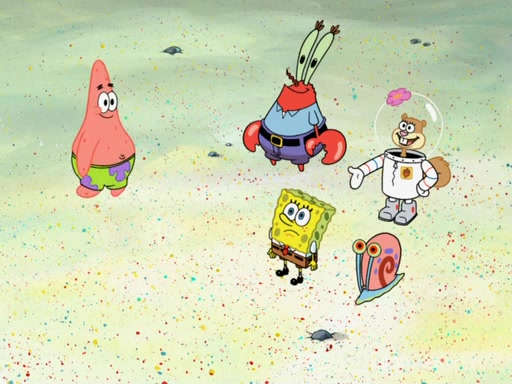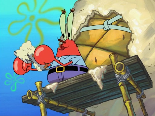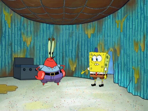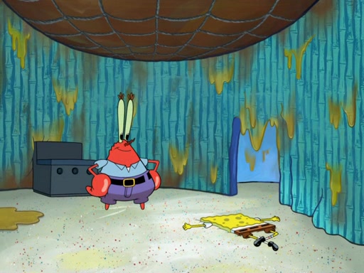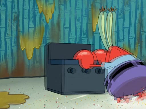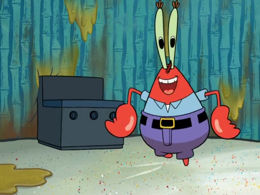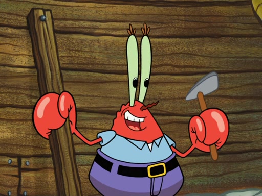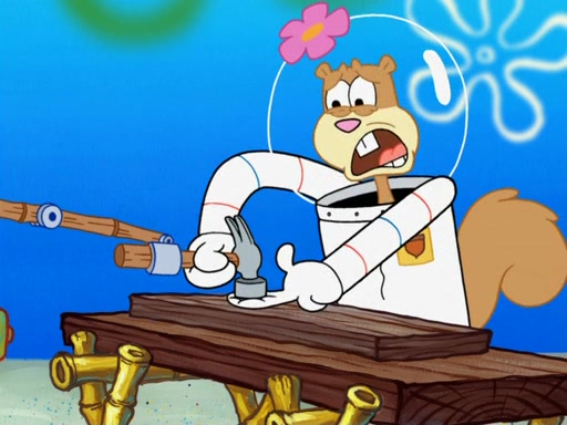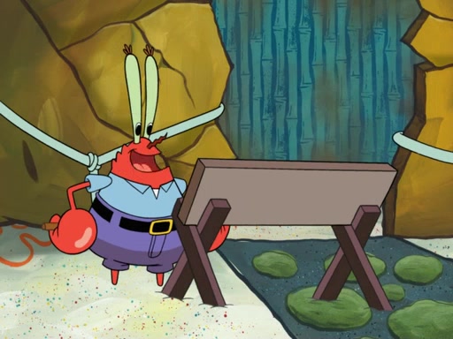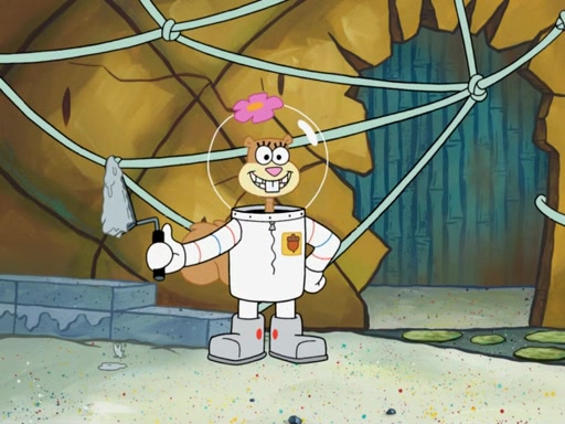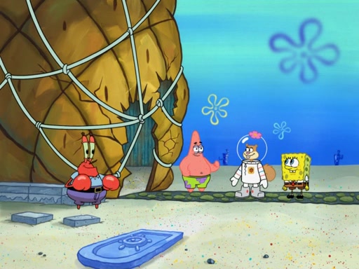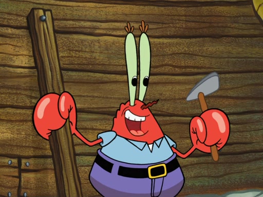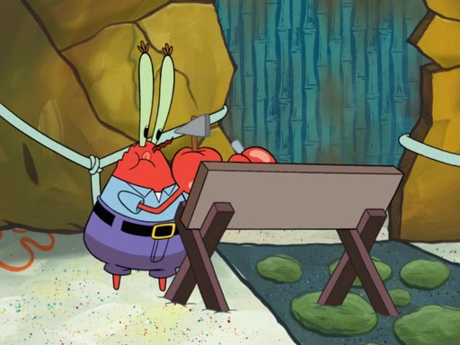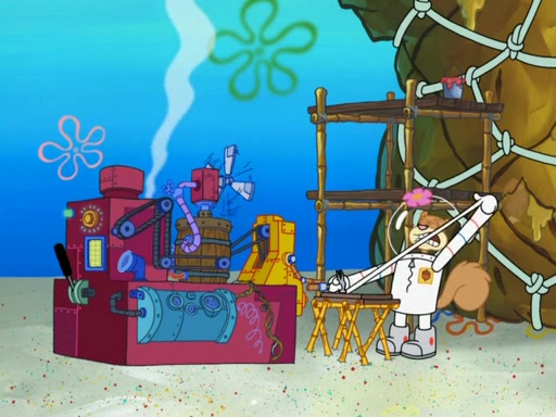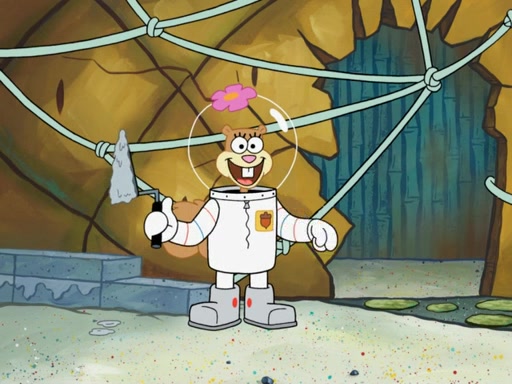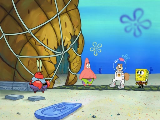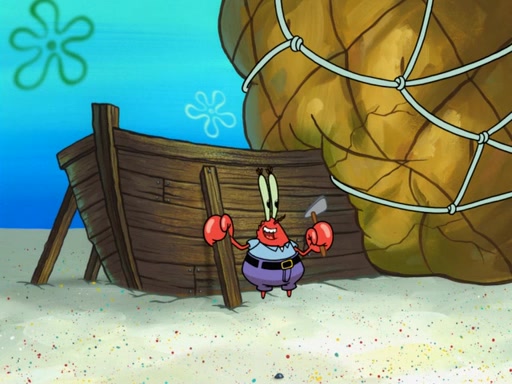 SpongeBob's arms are full, so he asks Patrick to call Sandy. However, Patrick is too stupid to understand how badly he needs her help, and instead has small talk with her. When she hears part of the wall falling, she realizes that something is not right, so she goes to the pineapple. Mr. Krabs also comes over, asking what's going on, since SpongeBob is two hours late for work. They agree to help him, but Mr. Krabs will do it for one week of SpongeBob's wages per hour. They remodel the home as Gary continues to walk around with a can. Mr. Krabs remodels the home his way, as Sandy also remodels the home her way, both ignoring SpongeBob's protests. SpongeBob asks Gary, who is holding a can, if he ever feels like he's being ignored, and Gary assents.