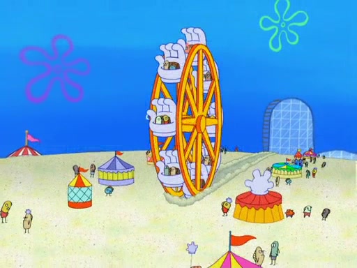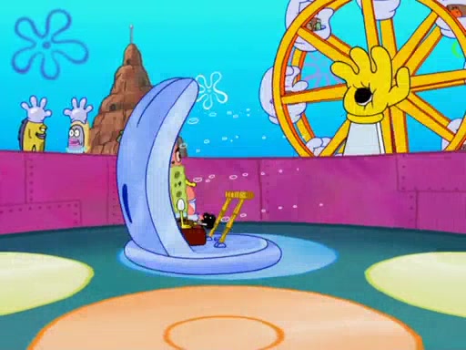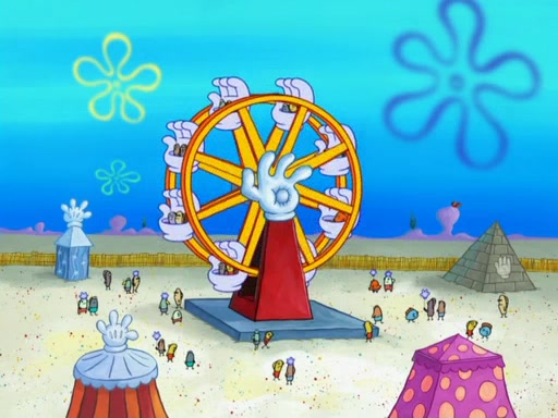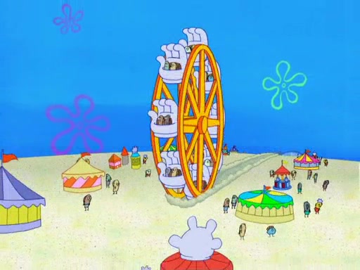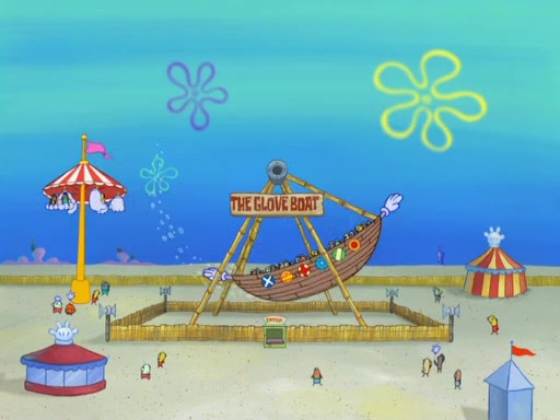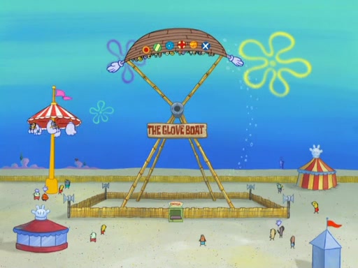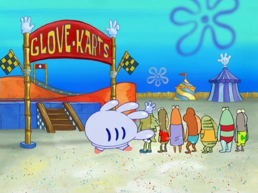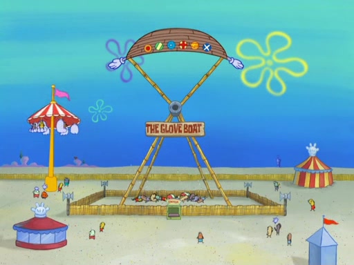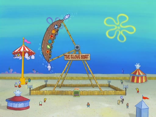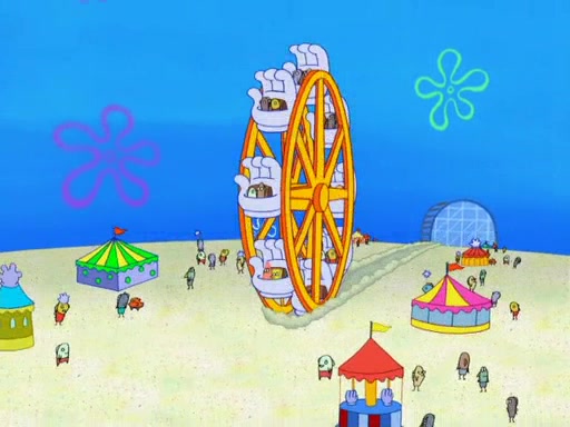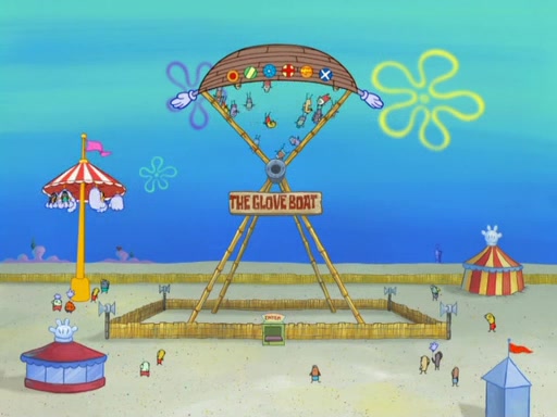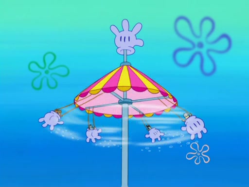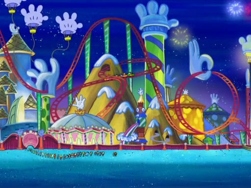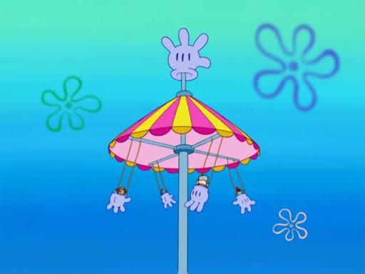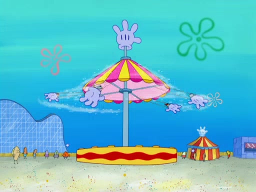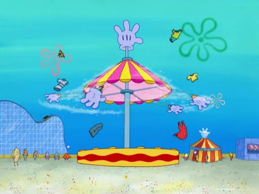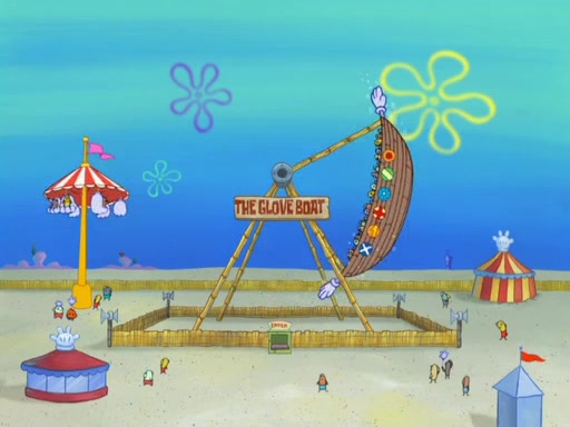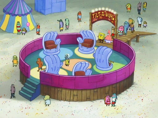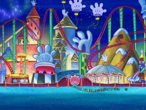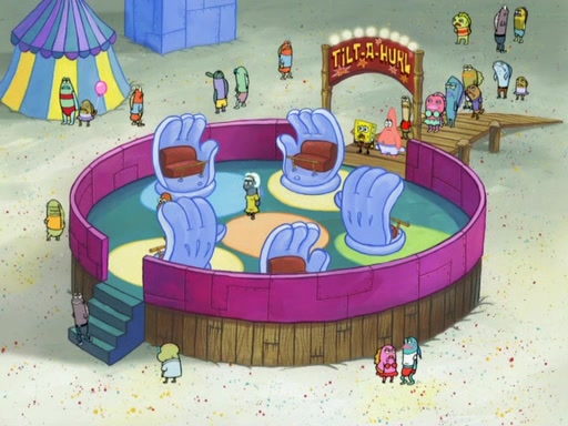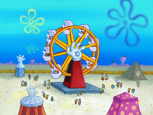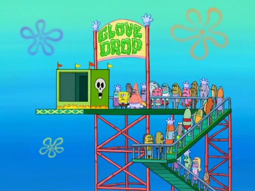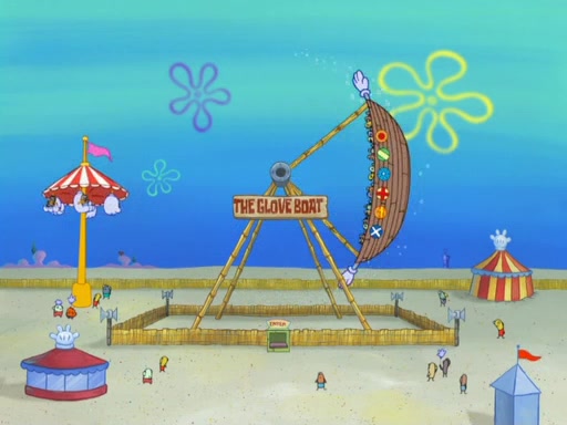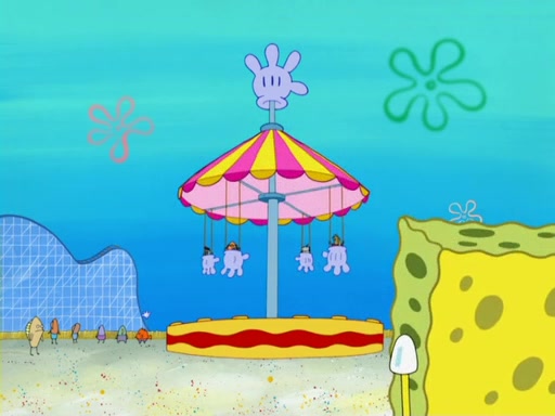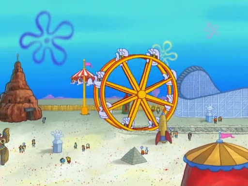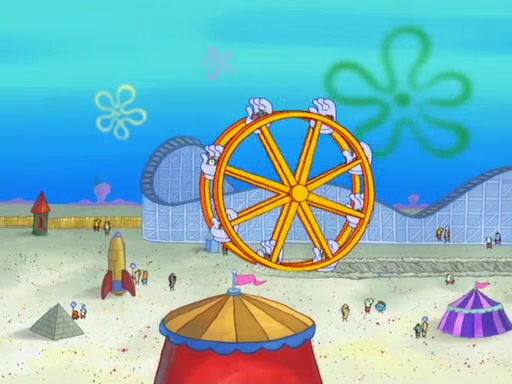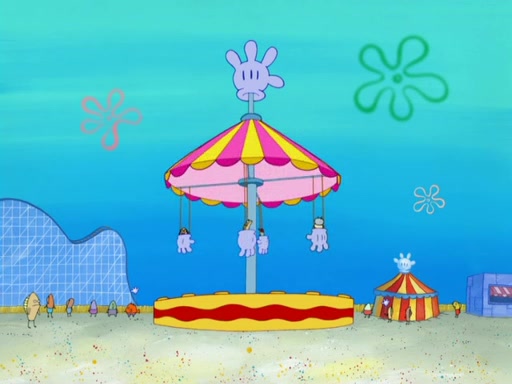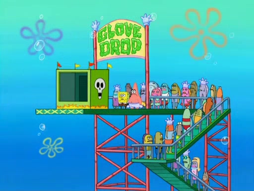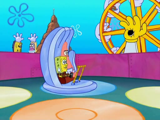 Arriving at Glove World, they meet the ticketman, who tells them again that Glove World is closing down for good. SpongeBob and Patrick promptly scream again, and enter the amusement park. They decide to ride the amusement rides one more time to remember the park by. They first enter the tea cups, which promptly damage them. They also enter other rides such as the Glove Drop, and Pirate Ship which all injure the riders. Once going on the Ferris Wheel, the ride derails and rides like a wheel. SpongeBob & Patrick mostly ignore it.