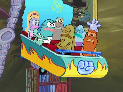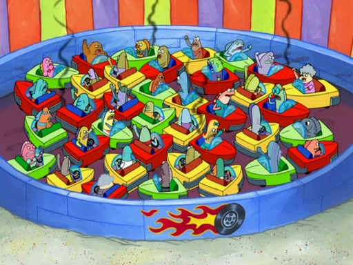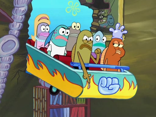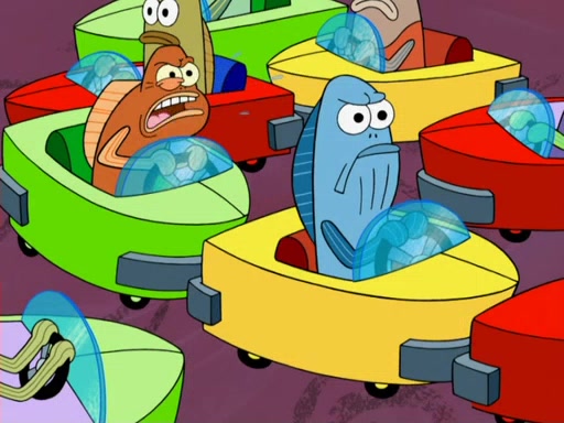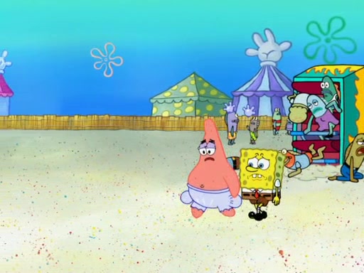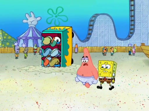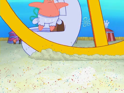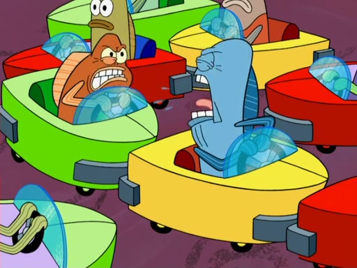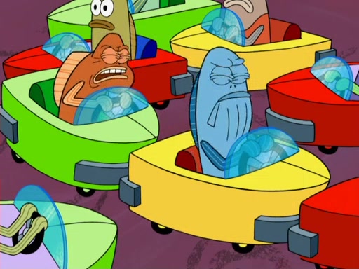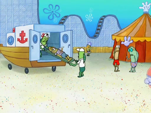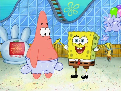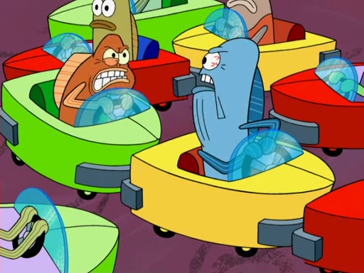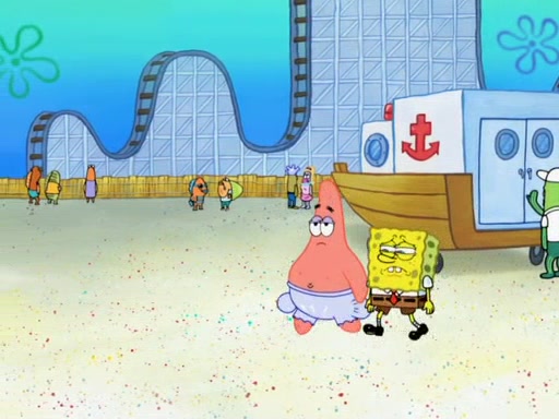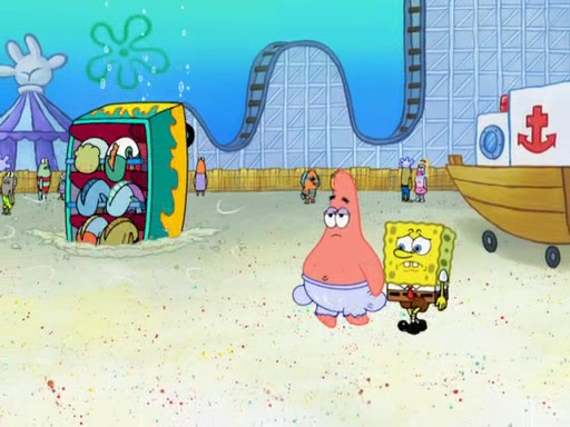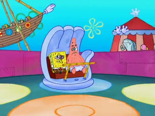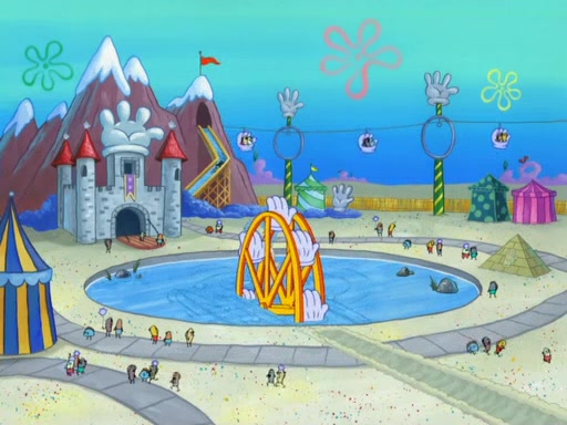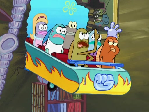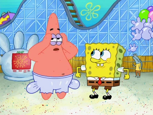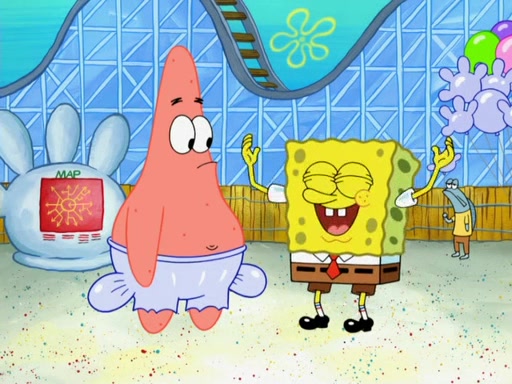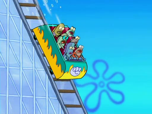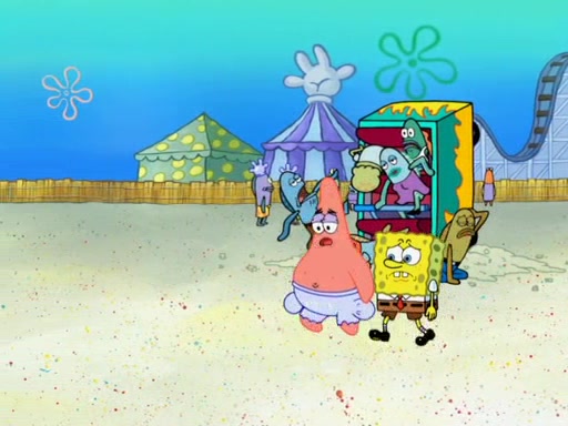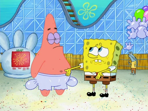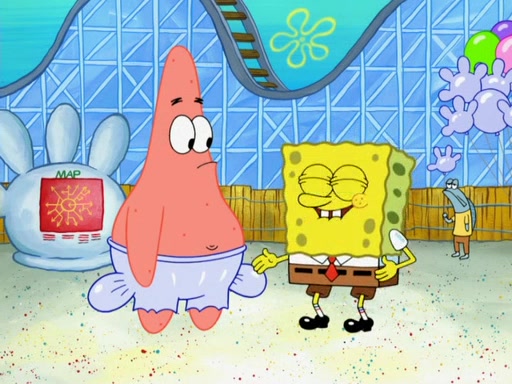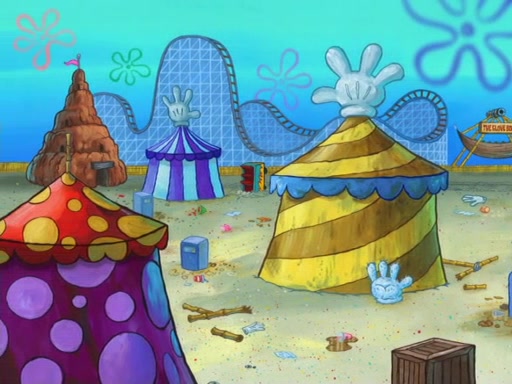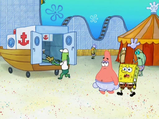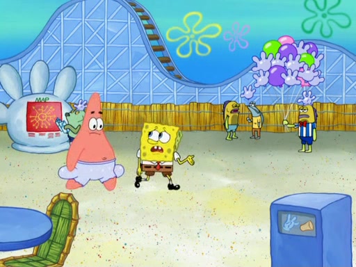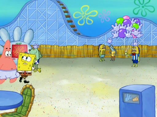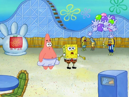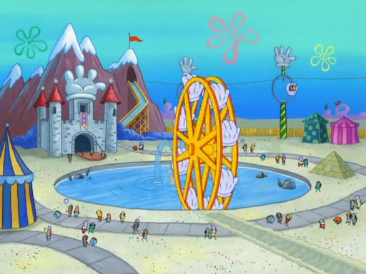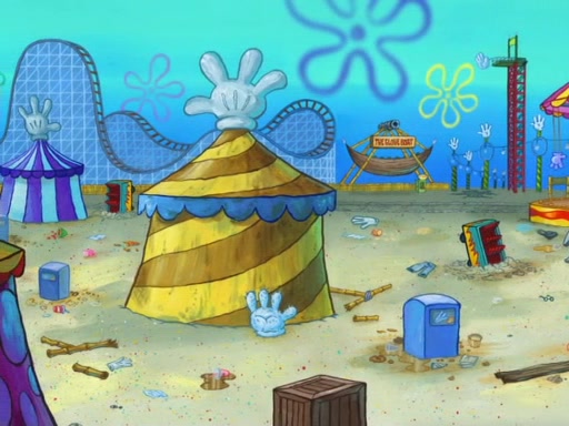 Arriving at Glove World, they meet the ticketman, who tells them again that Glove World is closing down for good. SpongeBob and Patrick promptly scream again, and enter the amusement park. They decide to ride the amusement rides one more time to remember the park by. They first enter the tea cups, which promptly damage them. They also enter other rides such as the Glove Drop, and Pirate Ship which all injure the riders. Once going on the Ferris Wheel, the ride derails and rides like a wheel. SpongeBob & Patrick mostly ignore it.