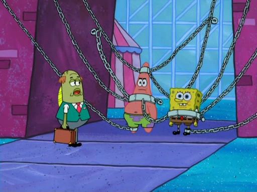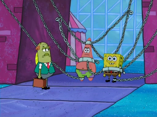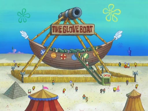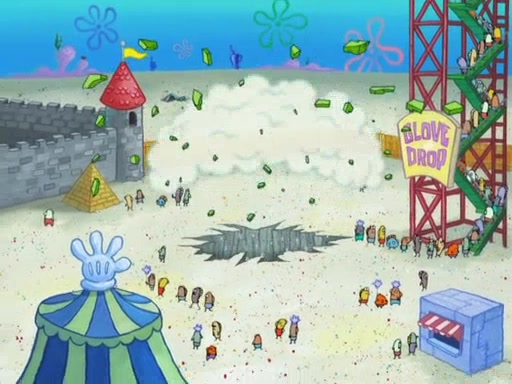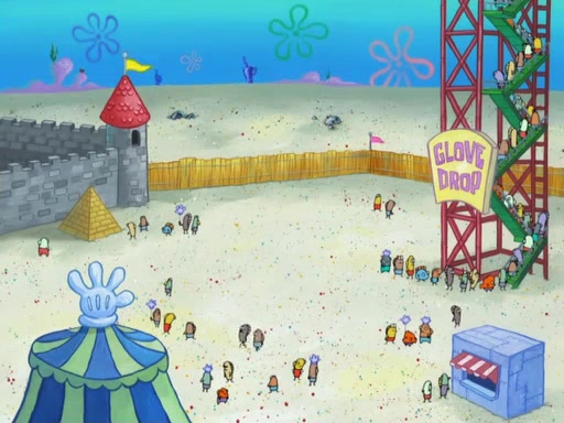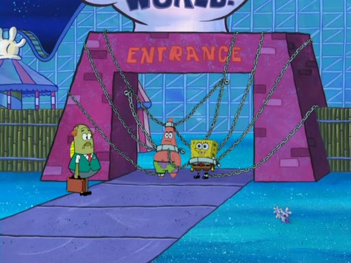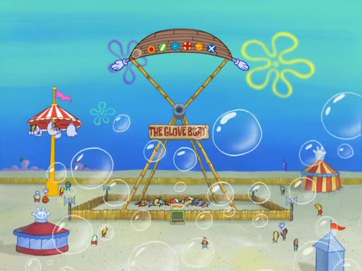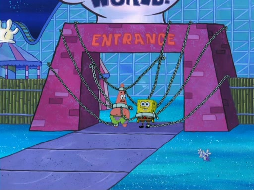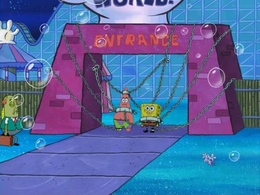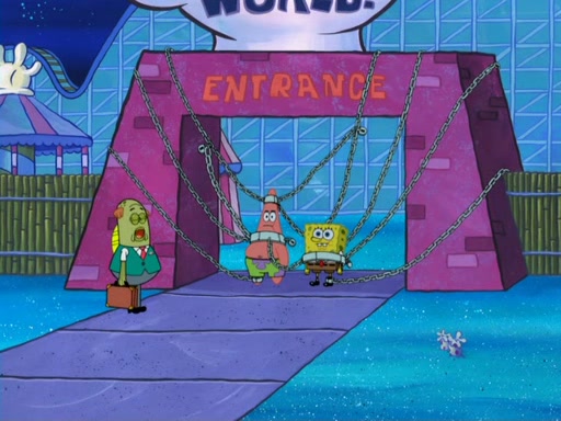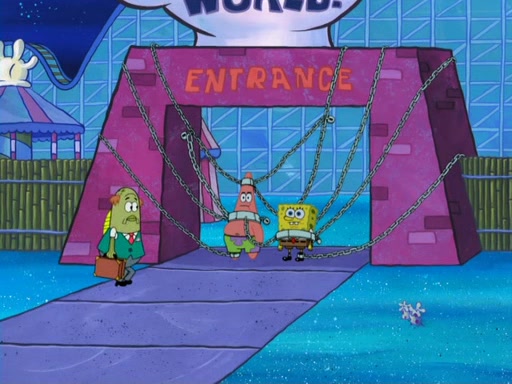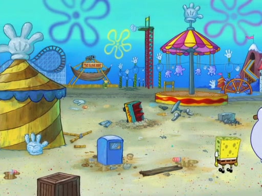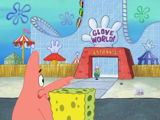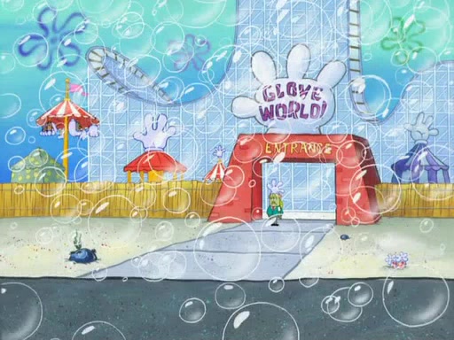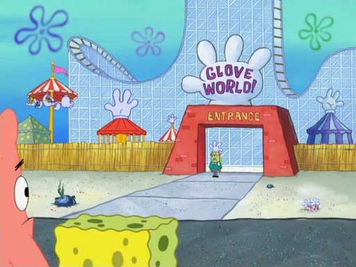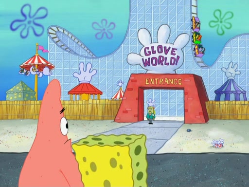 During the time, Glove World is destroyed. SpongeBob and Patrick are saddened and decide to defend it by chaining themselves to the entrance. However, they then find out from the Glove World Owner that it's closing down to open Glove Universe. SpongeBob and Patrick attempt to go, but they can't because of the chains. SpongeBob asks where the key is and Patrick says he has thrown the key for the chains into Glove Lake, and SpongeBob gets a blank expression, ending the episode.