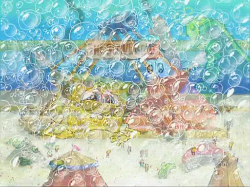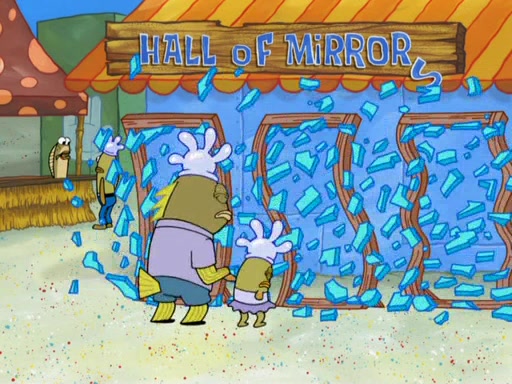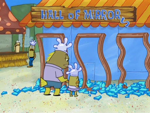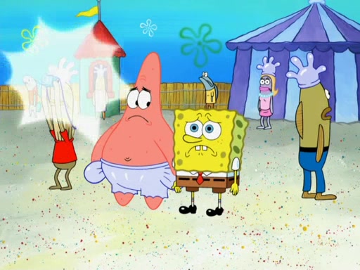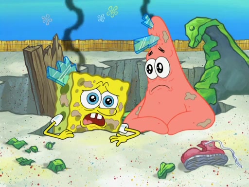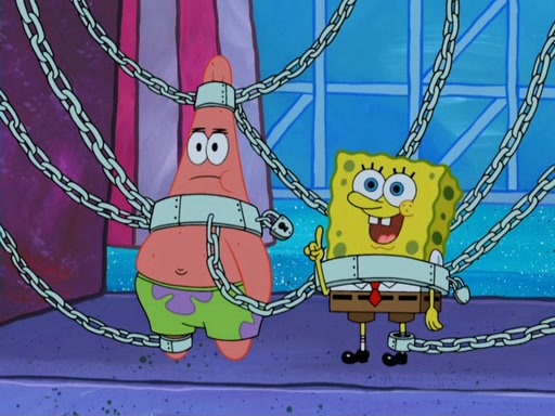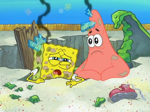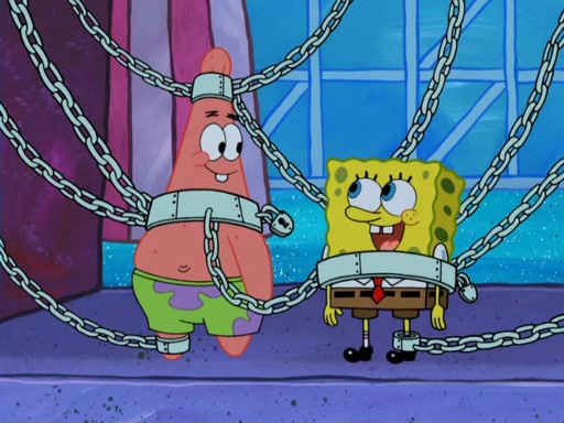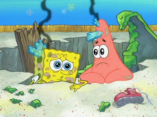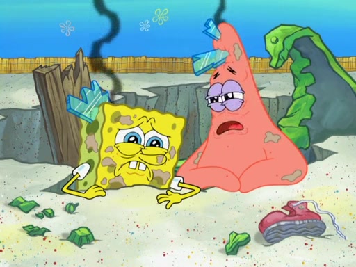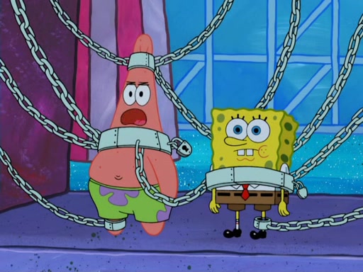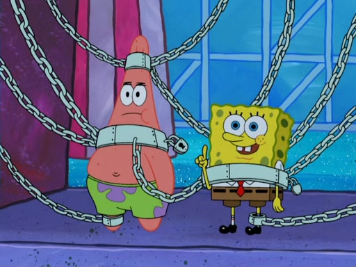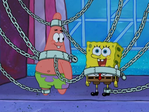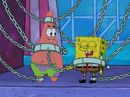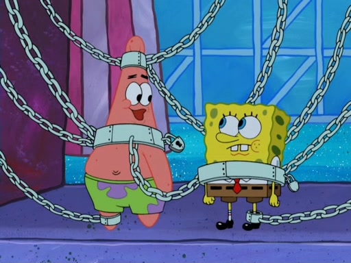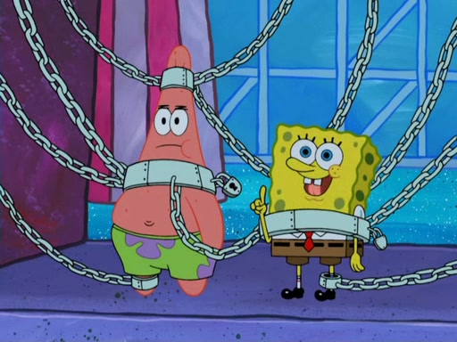 During the time, Glove World is destroyed. SpongeBob and Patrick are saddened and decide to defend it by chaining themselves to the entrance. However, they then find out from the Glove World Owner that it's closing down to open Glove Universe. SpongeBob and Patrick attempt to go, but they can't because of the chains. SpongeBob asks where the key is and Patrick says he has thrown the key for the chains into Glove Lake, and SpongeBob gets a blank expression, ending the episode.