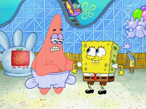 After realizing the danger of Glove World's rides, SpongeBob and Patrick attempt to rebuild the rides. Their first attempt is the Hall Of Mirrors, which fails. Meanwhile, after the current mascot of Glove World quits, Patrick tries the job, but also fails. SpongeBob tries to work on the chairlift, but ends up having the ride go too fast. They also attempt to stop a roller coaster's riders from falling into the sand, but they end up doing it anyway.