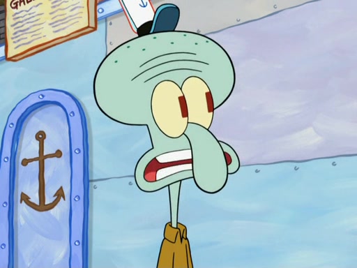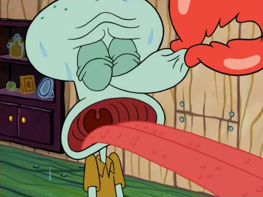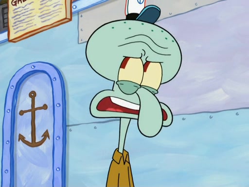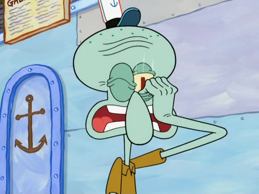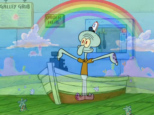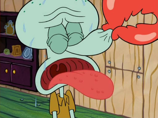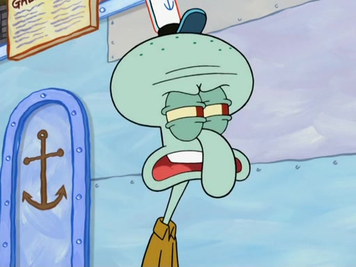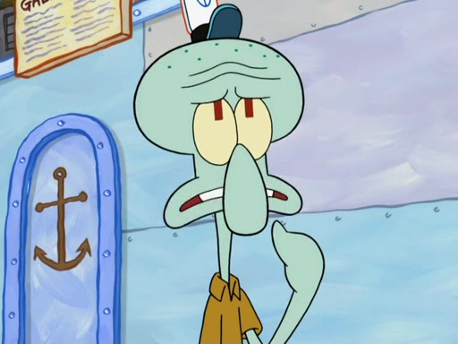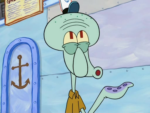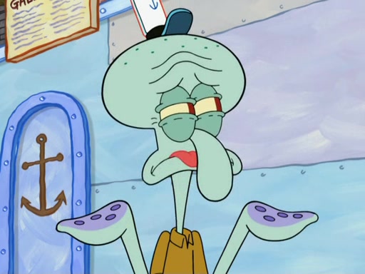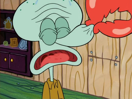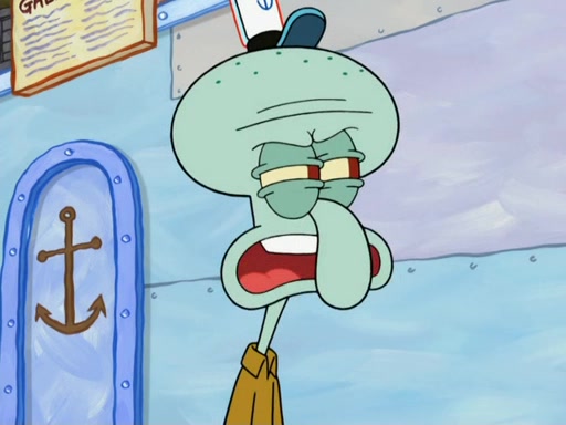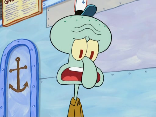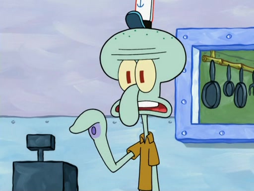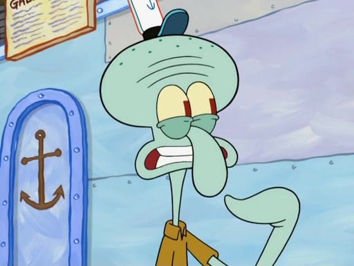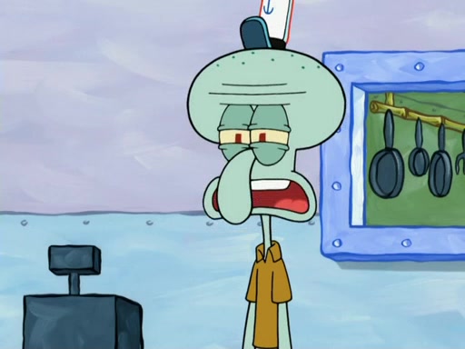 Squidward fantasizes about being outside on a nice day, but in reality, he's stuck working at the Krusty Krab. While talking to SpongeBob, he then gets the idea to fake a sickness to get away from him. He tells SpongeBob that he has a scratchy throat, a dry mouth, and an itchy eye. He dubs it as "Squid's Disease," and SpongeBob worries that he will catch it. He suggests that Squidward goes home to get better. Squidward goes to Mr. Krabs to tell him he's sick, so Mr. Krabs checks him out. He concludes that Squidward is fine and healthy, and then tells him to get back to work.