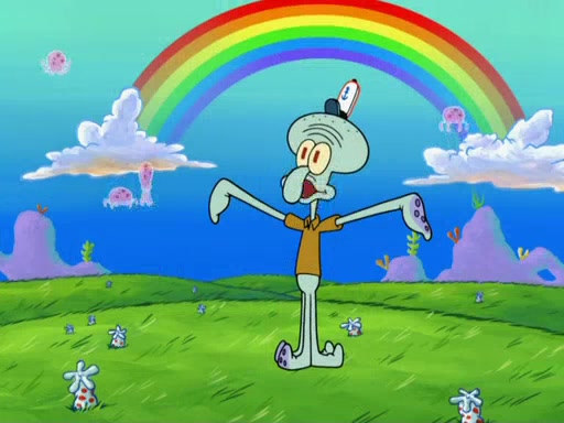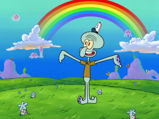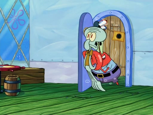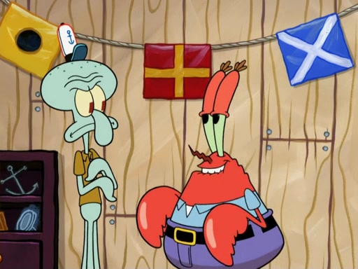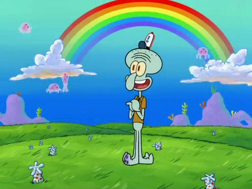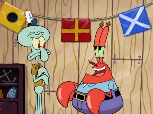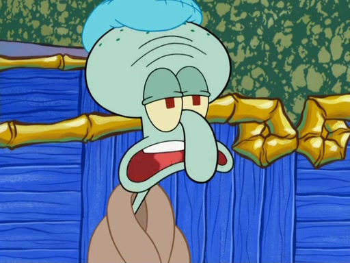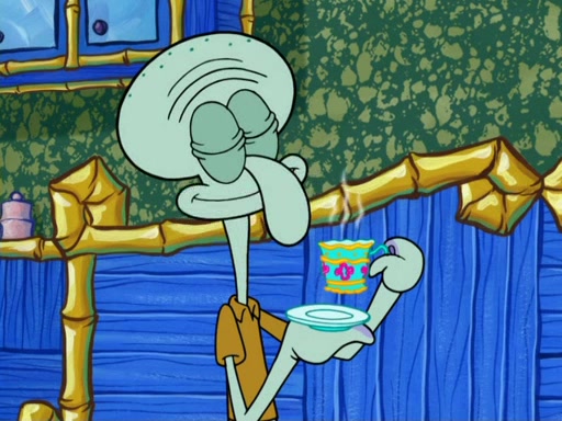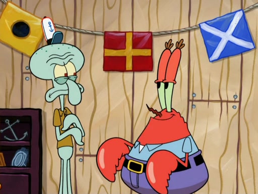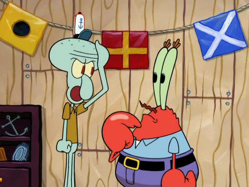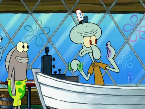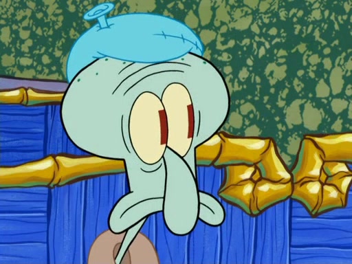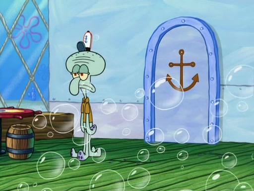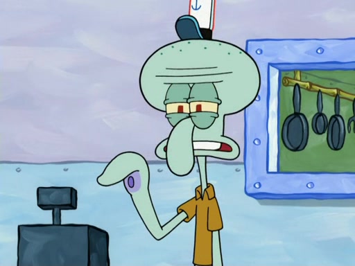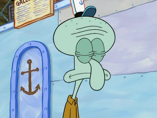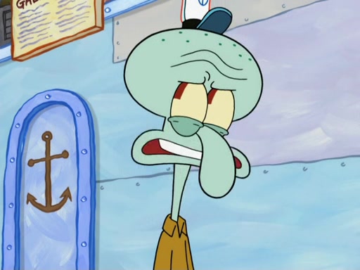 Squidward fantasizes about being outside on a nice day, but in reality, he's stuck working at the Krusty Krab. While talking to SpongeBob, he then gets the idea to fake a sickness to get away from him. He tells SpongeBob that he has a scratchy throat, a dry mouth, and an itchy eye. He dubs it as "Squid's Disease," and SpongeBob worries that he will catch it. He suggests that Squidward goes home to get better. Squidward goes to Mr. Krabs to tell him he's sick, so Mr. Krabs checks him out. He concludes that Squidward is fine and healthy, and then tells him to get back to work.