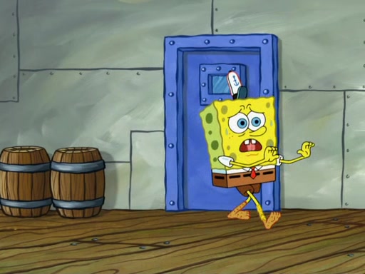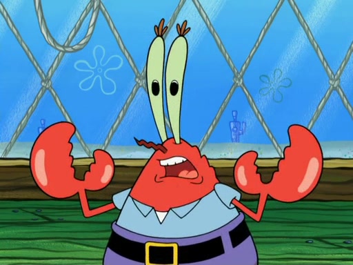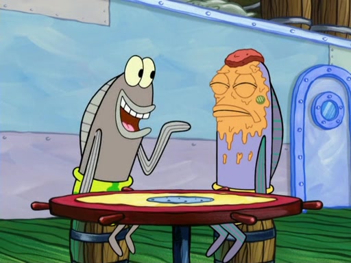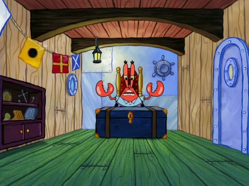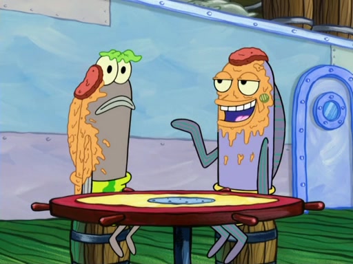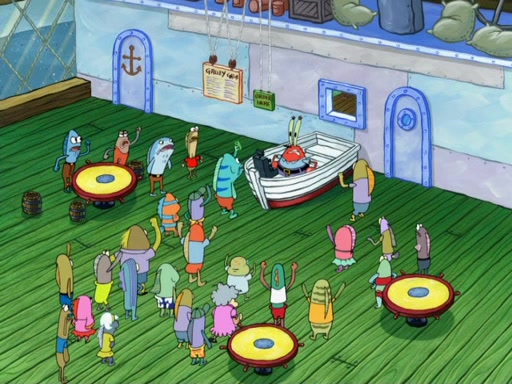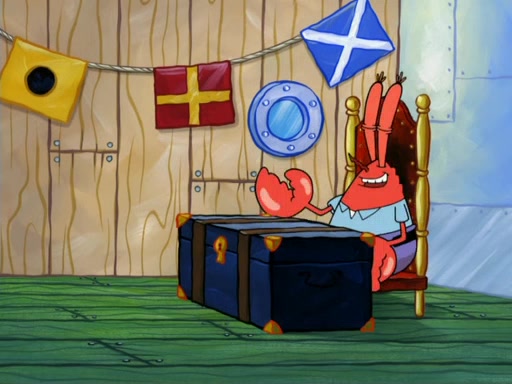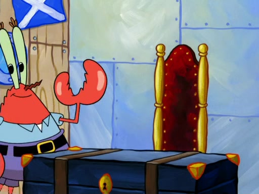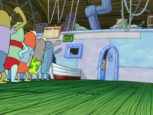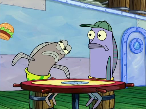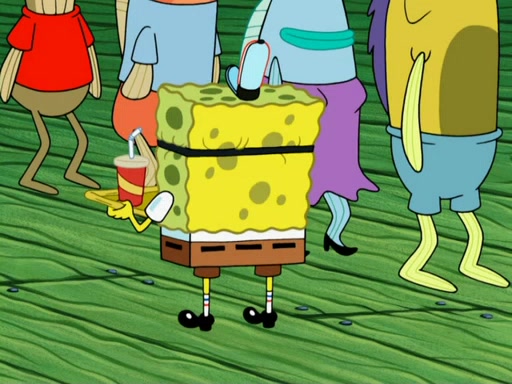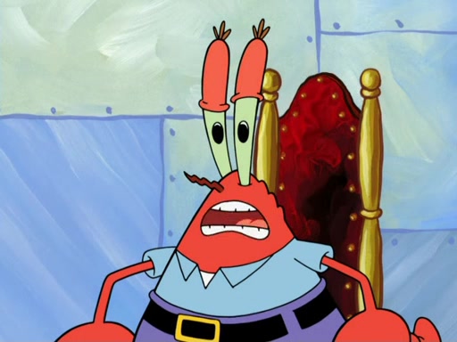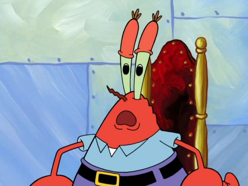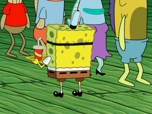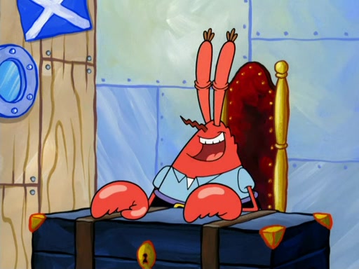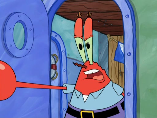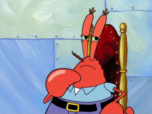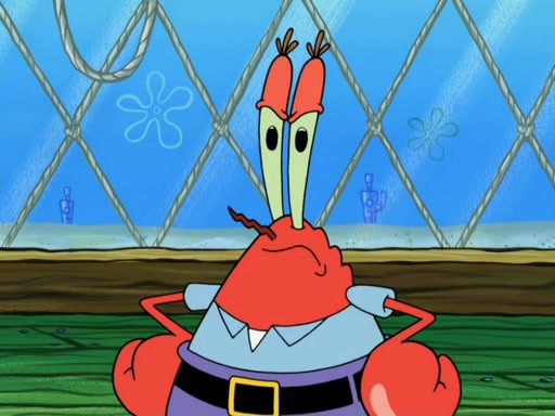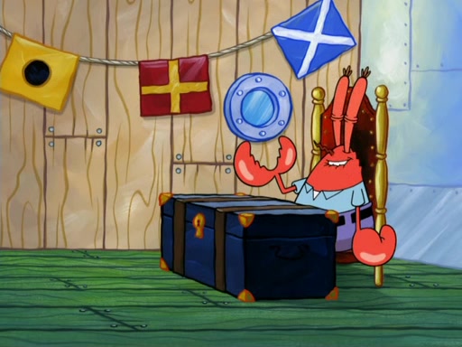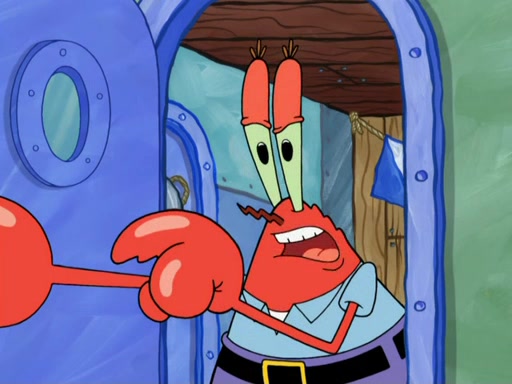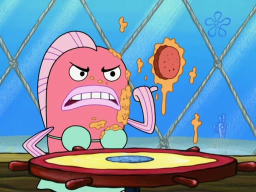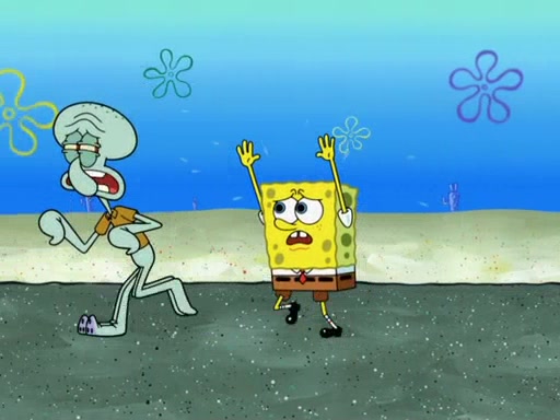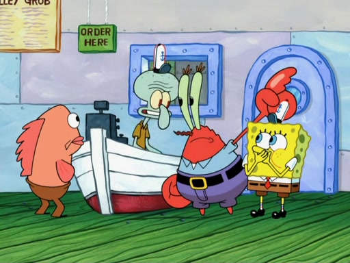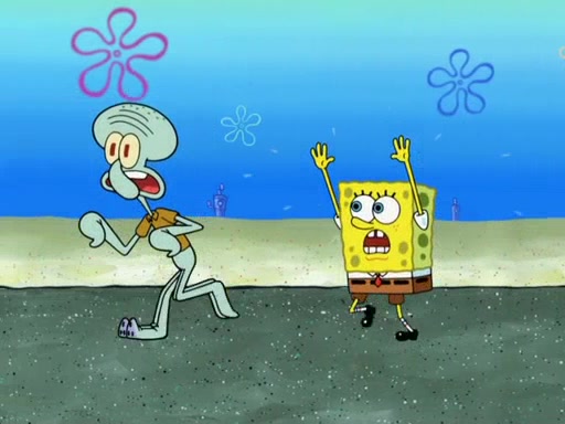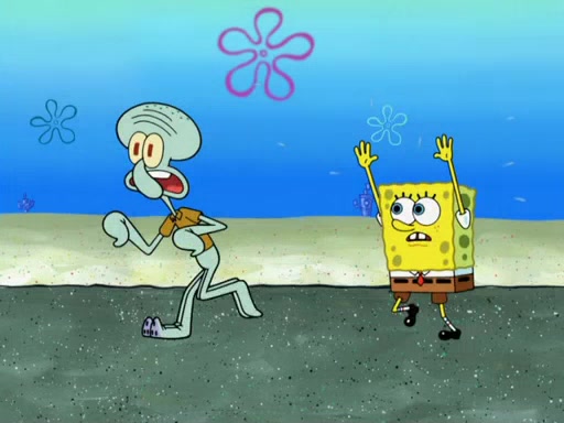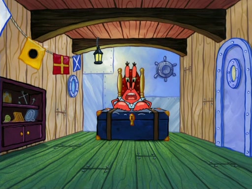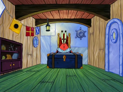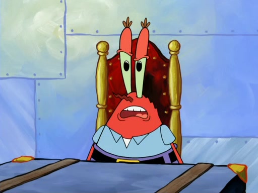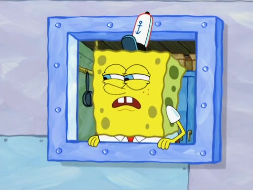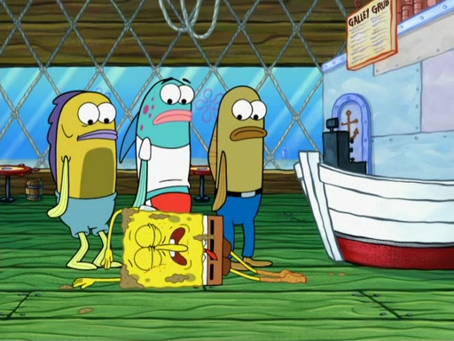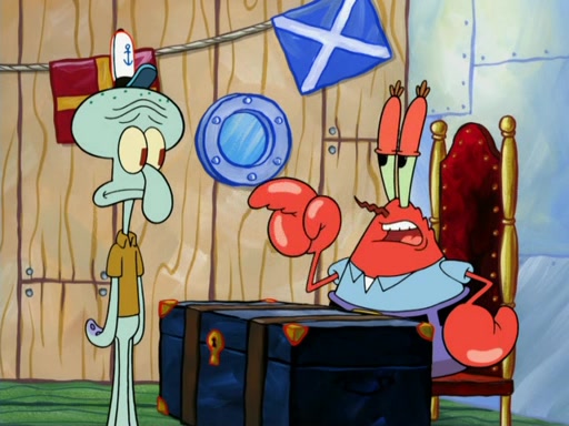 Squidward lies on a beach chair, enjoying his break when a garbage-covered SpongeBob comes along. Squidward is annoyed, and then goes into his house to at least enjoy himself inside. But SpongeBob goes in with him, and presents a video tape with a romantic comedy on it. Squidward immediately gets angry at SpongeBob. At the Krusty Krab, Mr. Krabs is having a hard time fulfilling orders and angers customers by throwing food at them and all over the place. Back at Squidward's home, the movie is over. But when SpongeBob says there are 99 more sequels to watch, Squidward can't take it anymore and runs out, screaming. SpongeBob follows him to the Krusty Krab, where Mr. Krabs lies on the ground, covered with Krabby Patty pieces, woozily telling SpongeBob that he could take care of everything. Noticing Mr. Krabs isn't feeling good, SpongeBob presents him with the video tape of the romantic comedy. And the episode ends with Mr. Krabs telling him to get away and runs away from him.