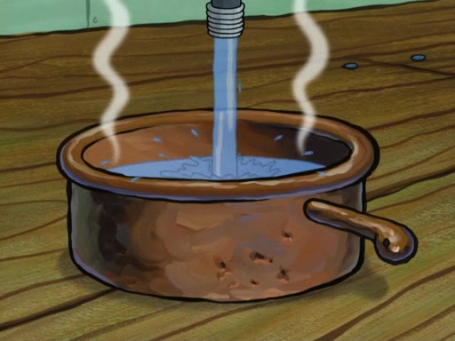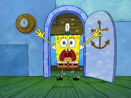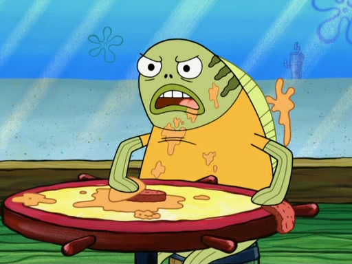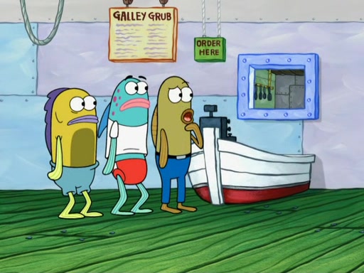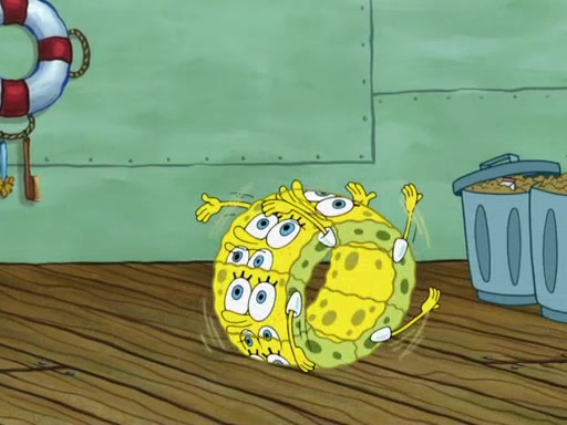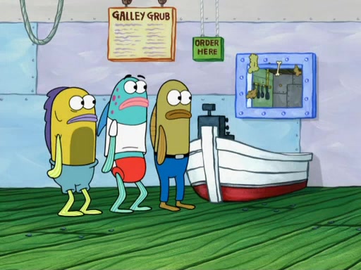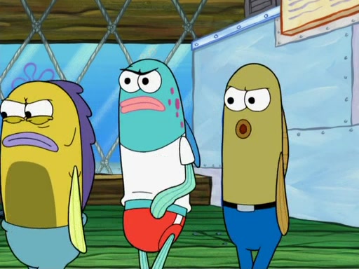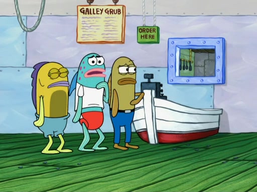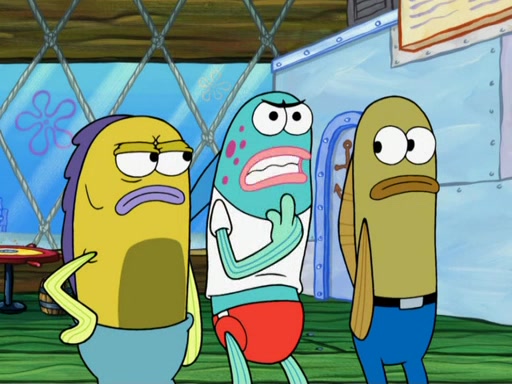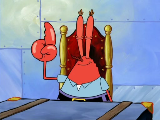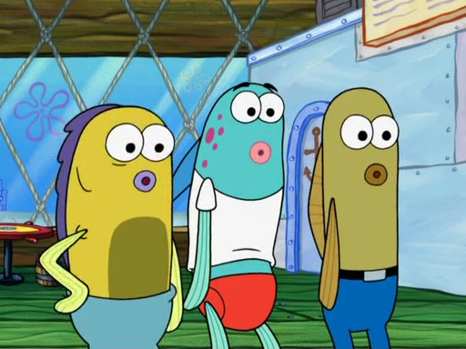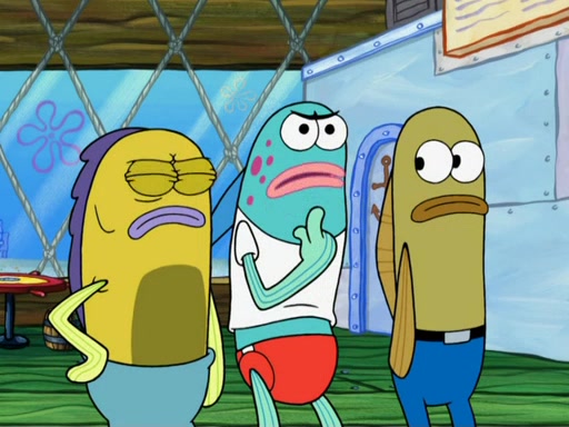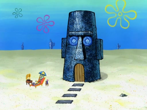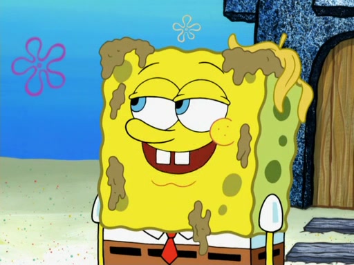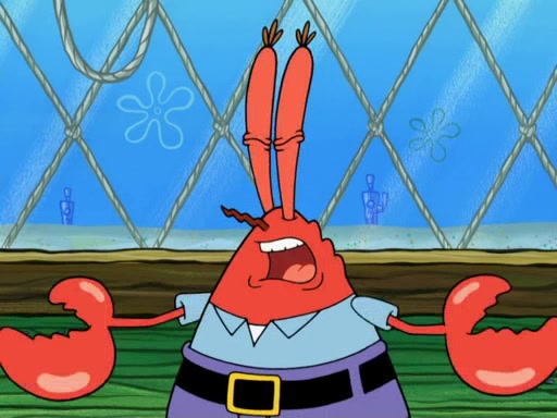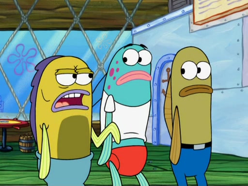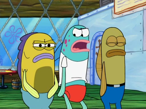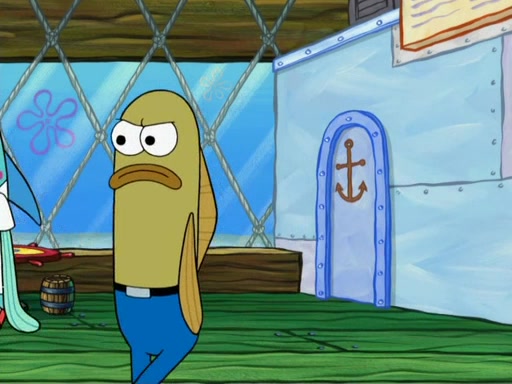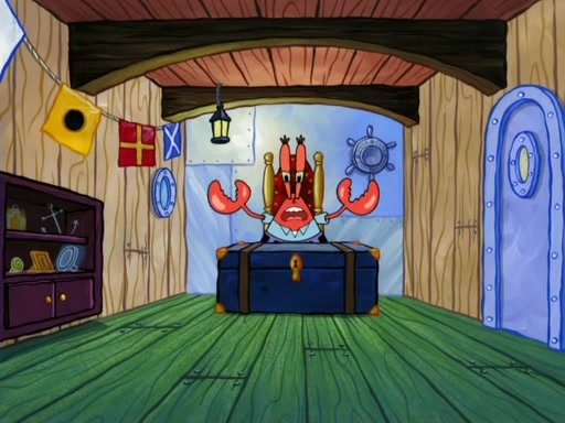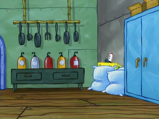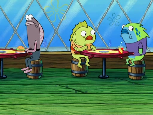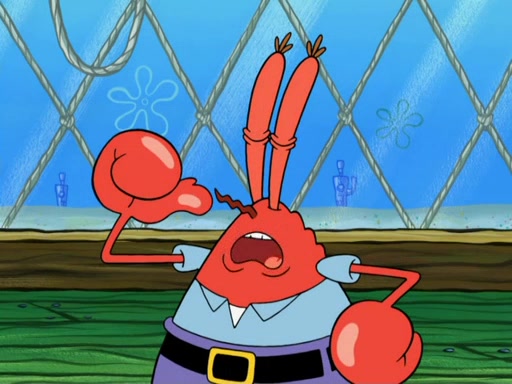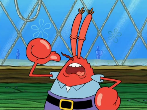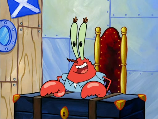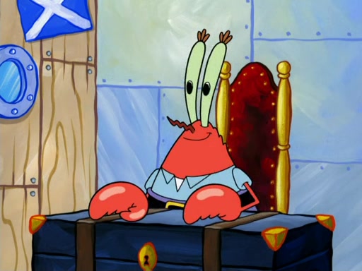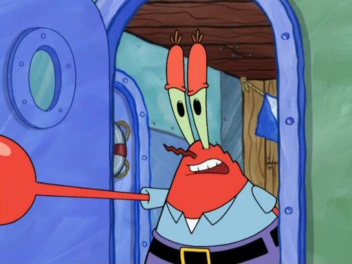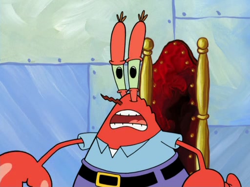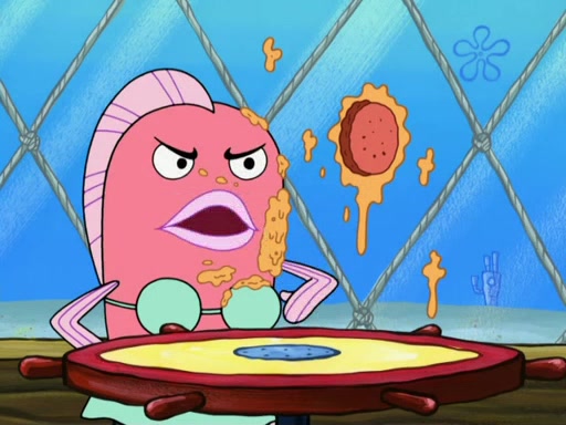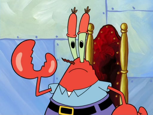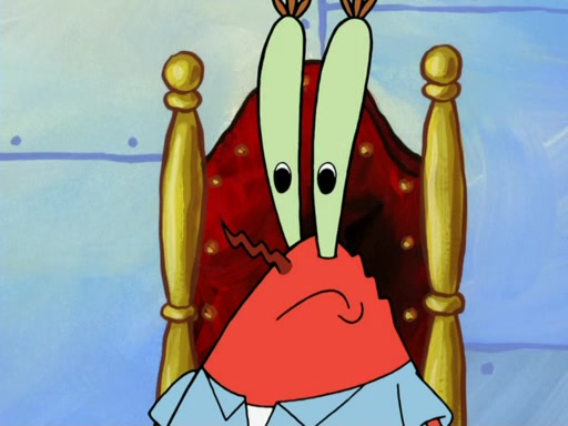 Squidward lies on a beach chair, enjoying his break when a garbage-covered SpongeBob comes along. Squidward is annoyed, and then goes into his house to at least enjoy himself inside. But SpongeBob goes in with him, and presents a video tape with a romantic comedy on it. Squidward immediately gets angry at SpongeBob. At the Krusty Krab, Mr. Krabs is having a hard time fulfilling orders and angers customers by throwing food at them and all over the place. Back at Squidward's home, the movie is over. But when SpongeBob says there are 99 more sequels to watch, Squidward can't take it anymore and runs out, screaming. SpongeBob follows him to the Krusty Krab, where Mr. Krabs lies on the ground, covered with Krabby Patty pieces, woozily telling SpongeBob that he could take care of everything. Noticing Mr. Krabs isn't feeling good, SpongeBob presents him with the video tape of the romantic comedy. And the episode ends with Mr. Krabs telling him to get away and runs away from him.